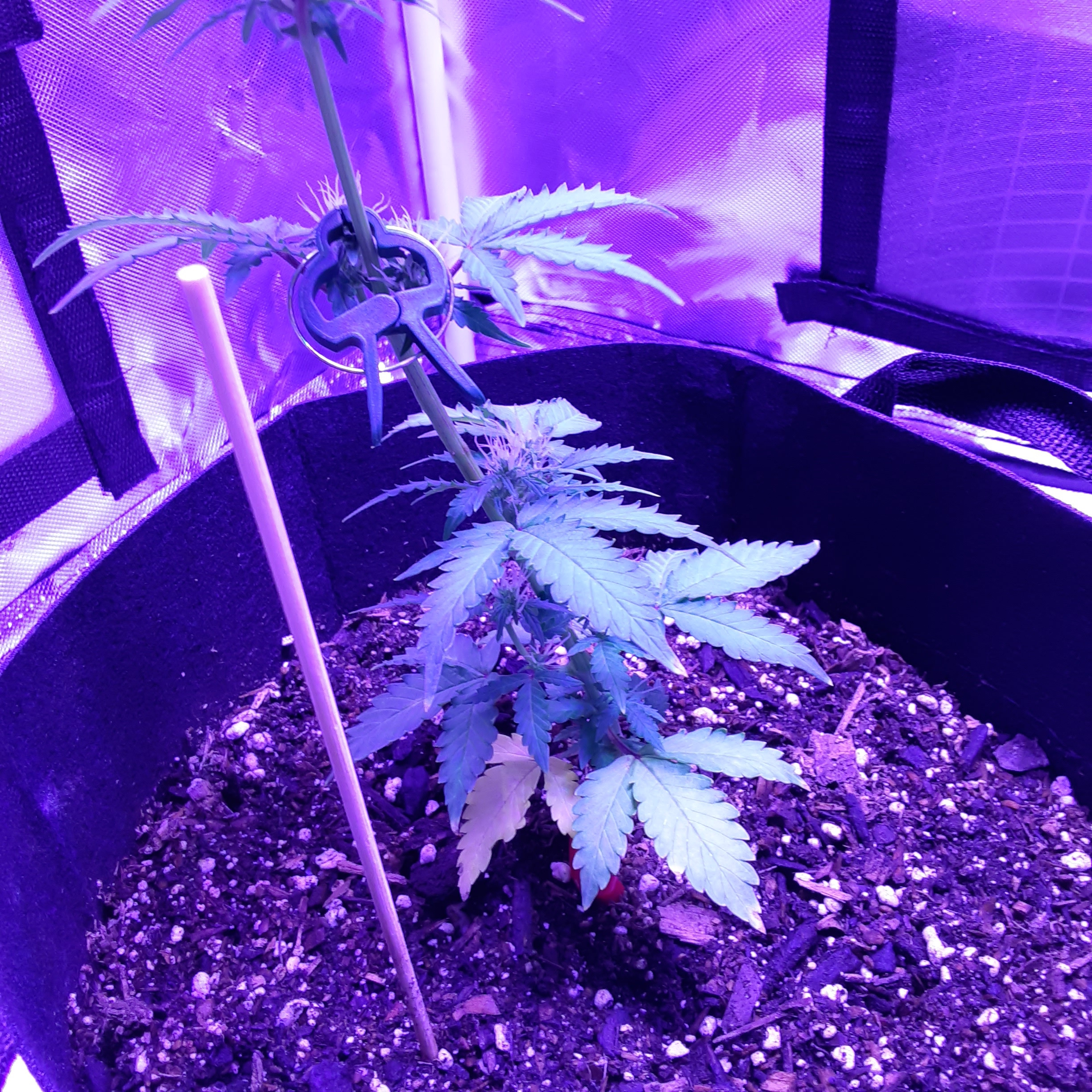 Week 6 on my gorilla glue autoflower no nutrients on this one 200 watt full spectrum 3x3 tent foxfarm soil in cloth pots. Some leaves starting to turn on bottom is this normal on autoflower this is my first time doing autoflower.