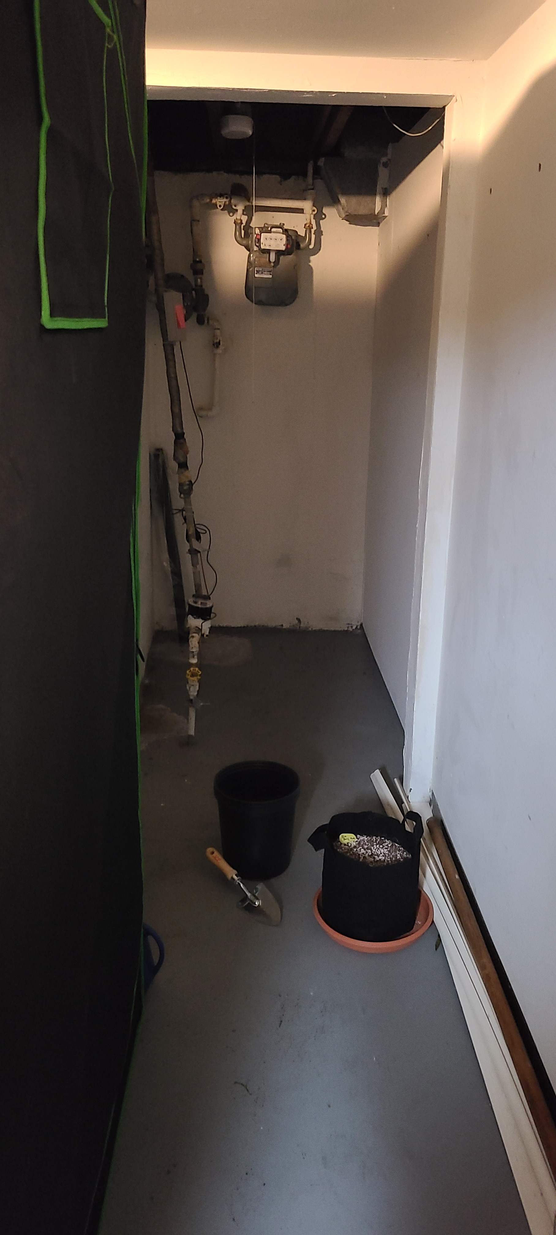 I could *maybe* put the humidifier in a different part of the room, but its not well-sealed so IDK if the humidity would stay in the room or not. I only have 2 plants when my tent can do like 6-8, so I may have enough room during veg for it, Im unsure. I didnt eve use a humidifier for my first grow and it turned out a-okay. There is only one plug, the door to the room is like a shutter so anything can escape, and its located under the stairs for my front door way so there is a small draft due to it not being built correctly. Pictures below-
