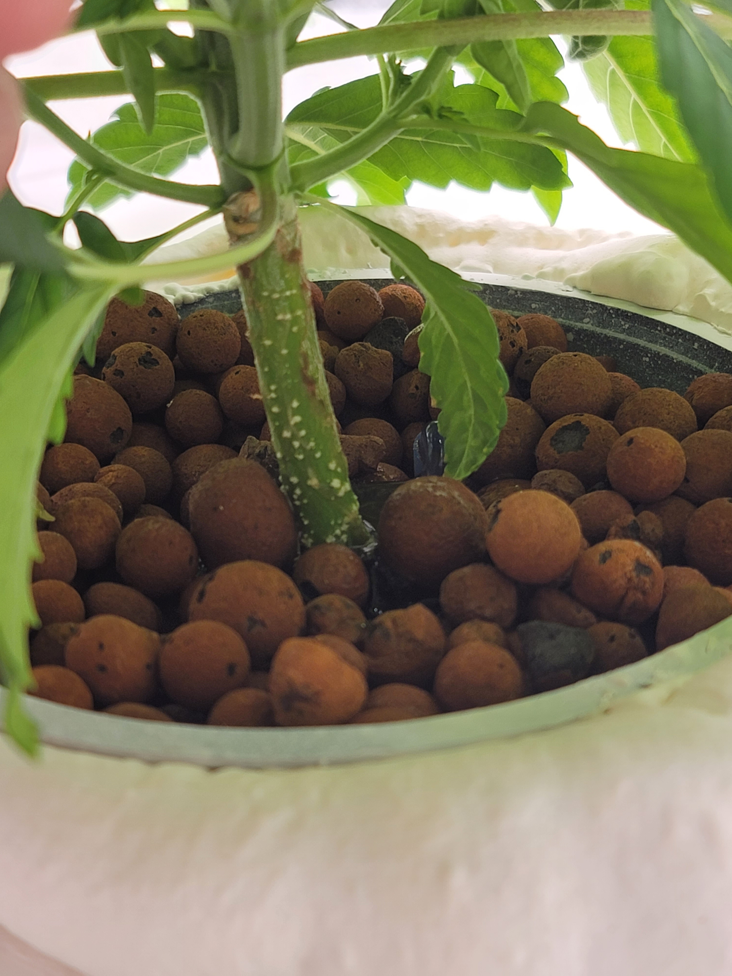 Anyone know what this is? I started growing hydro a few weeks ago and today is day 27 in my 17 gallon tote, They are being grown under a 200 watt spider farmer LED. Enclosed in a 3x3x5 tent. Temps are fairly stable between 68-80 degrees and the growth has been outstanding for 3 weeks. I noticed this white growth around the stems and wondered if this is something I should be worried about. This is my 3rd grow, my 1st and 2nd were in coco so I am fairly new to the game. I am growing white widow and grand daddy purple.