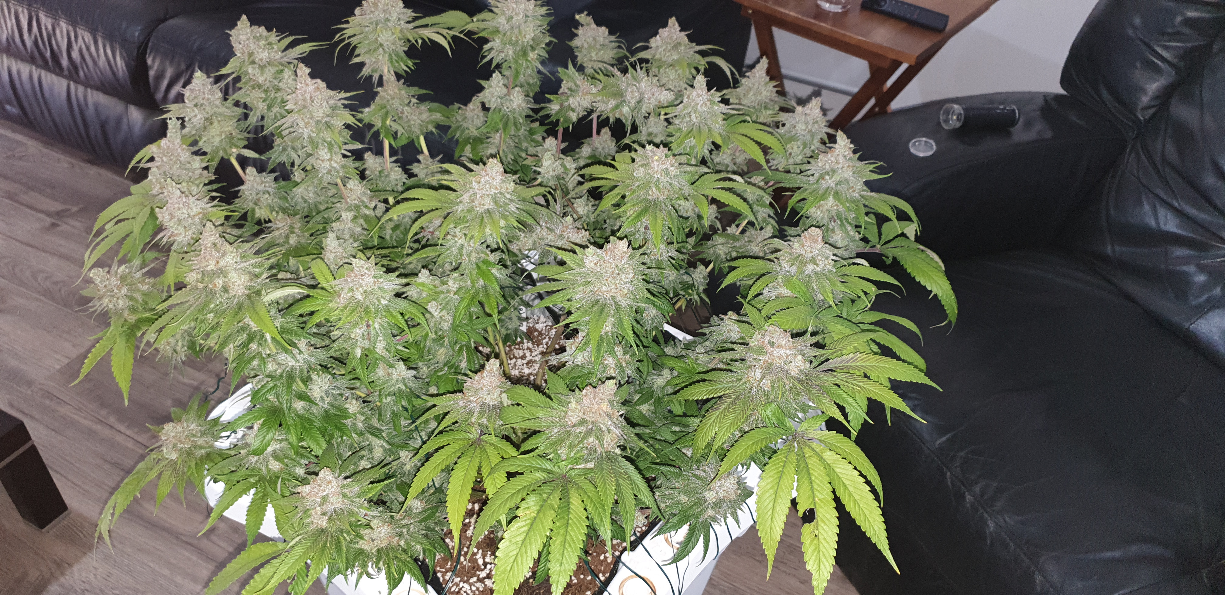 Just a quick update on what's been going on in my grow tent. I have taken out one of my plants, white widow, due to seeds/nanna's and the plant seemed to stop growing all together except for producing nanna's. I have been ill and had to stay in hospital for a few days for a procedure, I just didn't have the time to try and control the nanna's etc. It is disappointing but the right decision IMO. There is a fair bit of seed but will still get some quality daytime bud out of her, she does smell very nice.