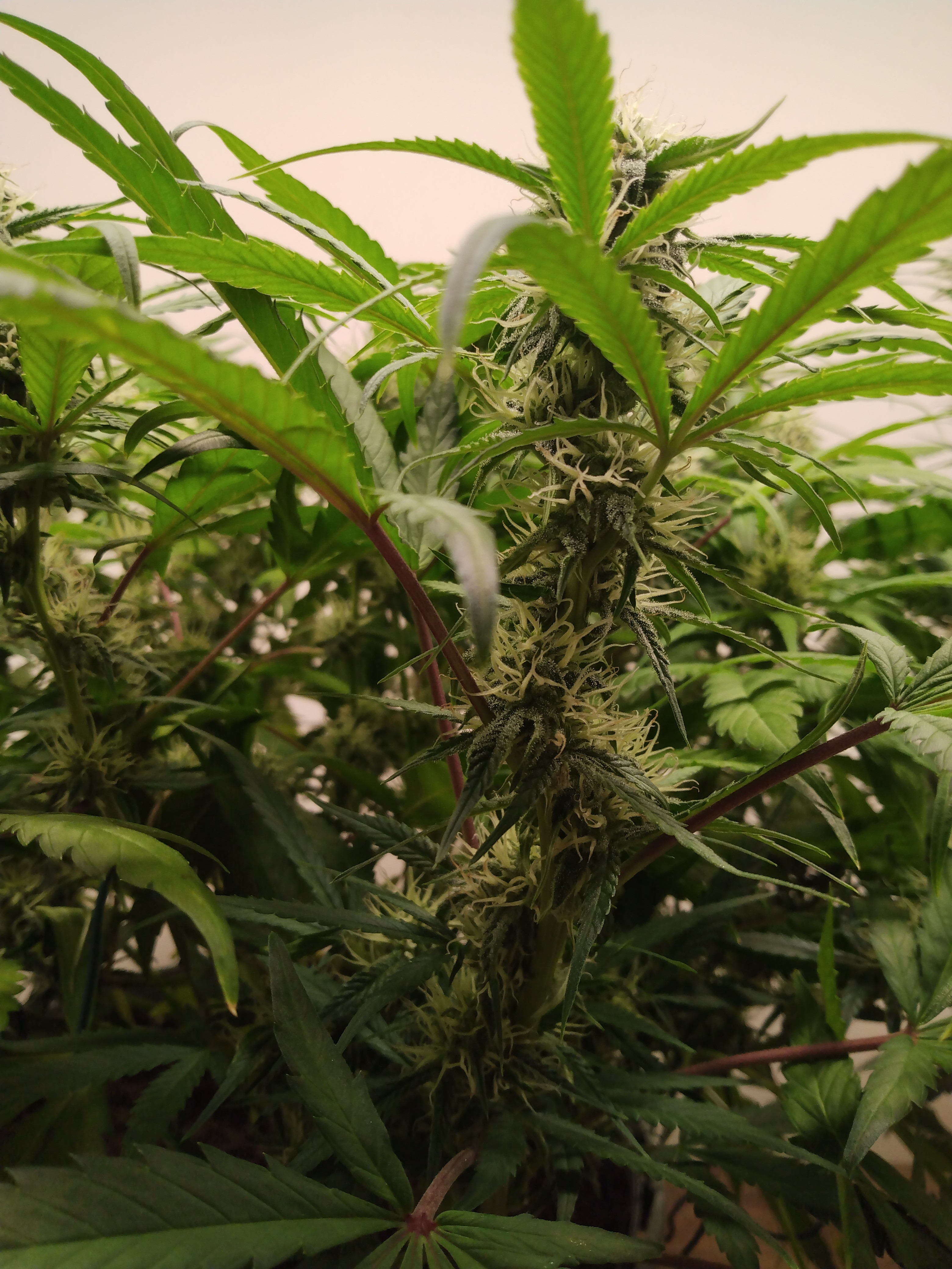Well hello there fellow seasoned vets. I'm going to draw on this 650 years of knowledge here and see what y'all think if this. Sour stomper is stacking up like crazy. Great vigor on this strain .but what do y'all think of this reddish veining I'm getting in a few of the newer leaves. Name that deficiency.keeping it green with the soil thing