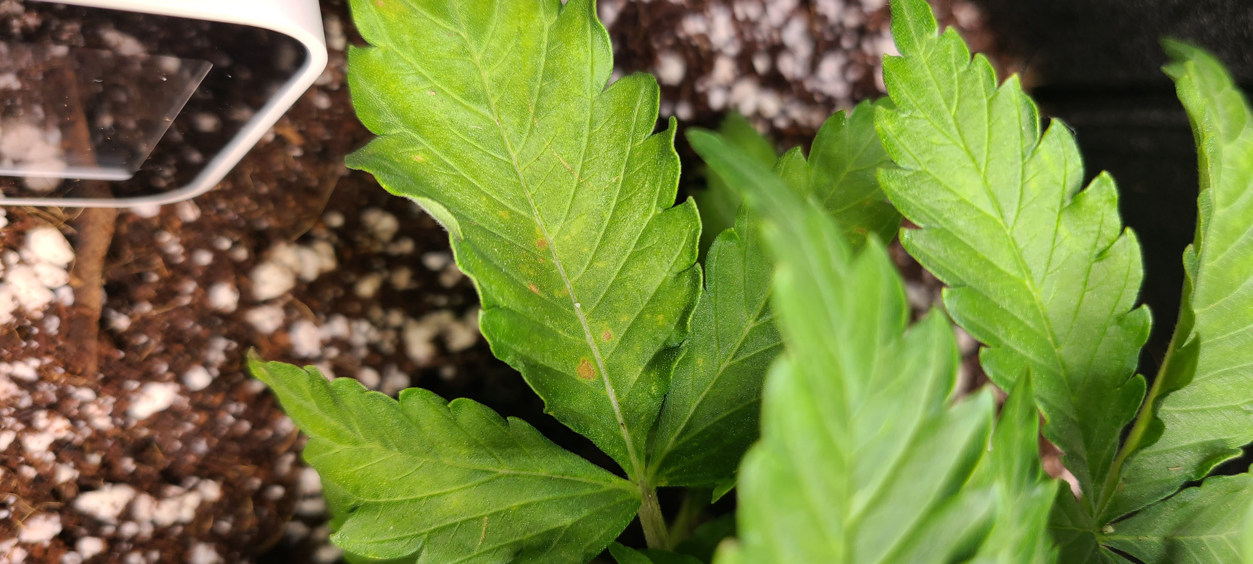 #2 has been topped! I was counting #1 nodes and saw some brown spots. It looks like calcium deficiency to me, can anyone else confirm? I'm giving nutes following Nebulas directions for Autos I'm Coco. #2 doesn't have these spots and I do everything the same for both. Maybe since they are touching the soil?