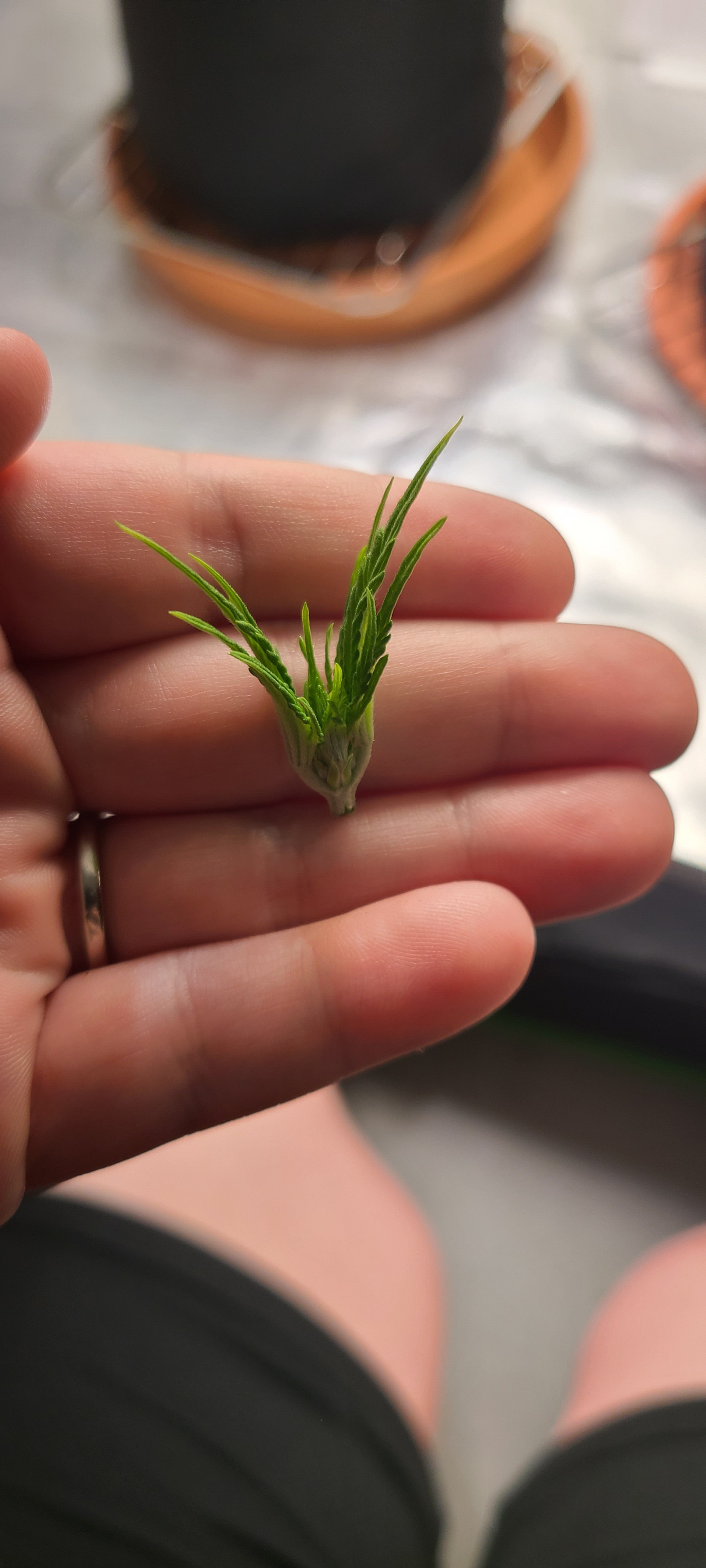 (I'm just trying to pull my little budlets outward so they can see the light, should've let the cat 'train' all three.)