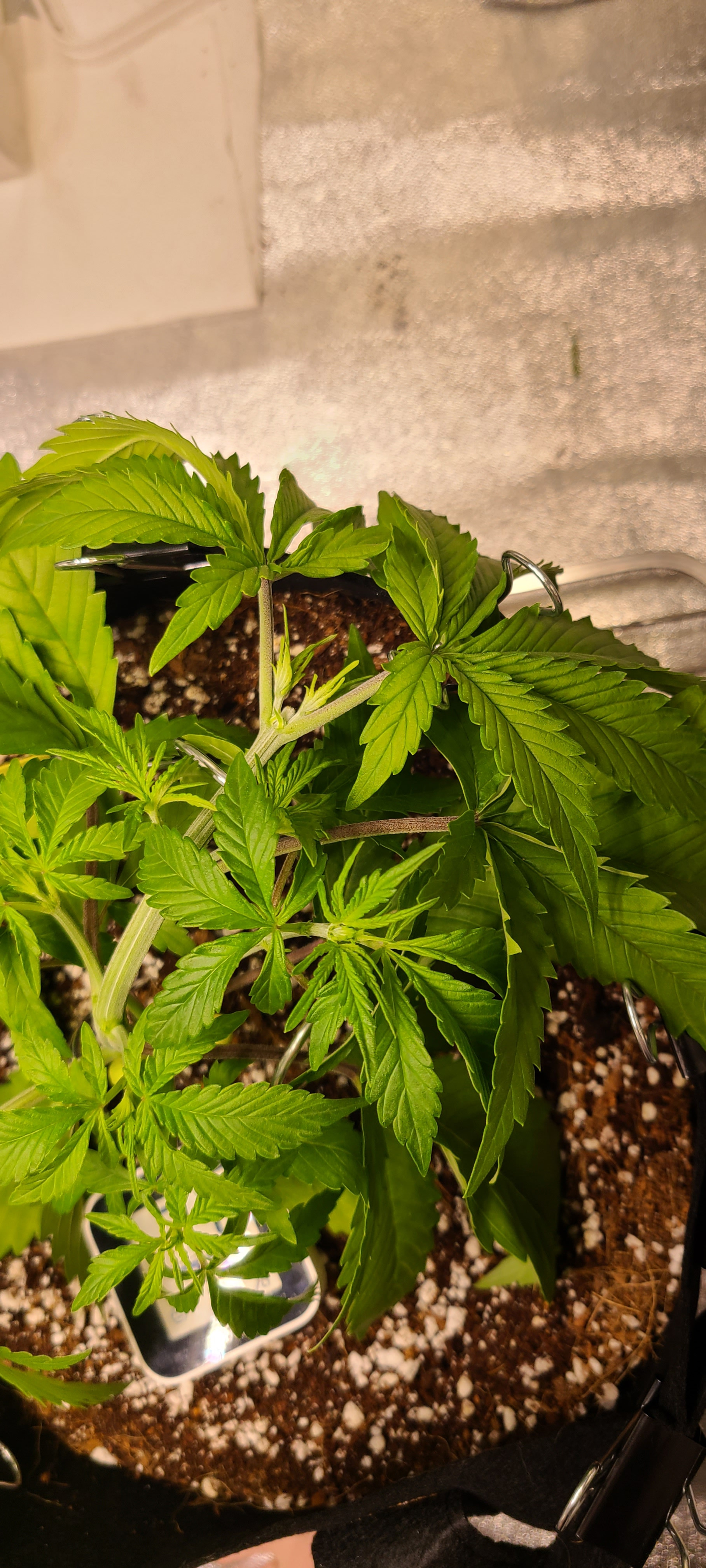 Scissors or thumb nail? Good job. I only used some Recharge with cal-mag the other night and my runt NL has leaves like yours, lower older leaves. I have current pics but I spent over 5 hours on the phone with Amazon last night, started at 7 pm, ended around 12:30. Murphy's Law strikes again so I haven't loaded the pics to my laptop yet.