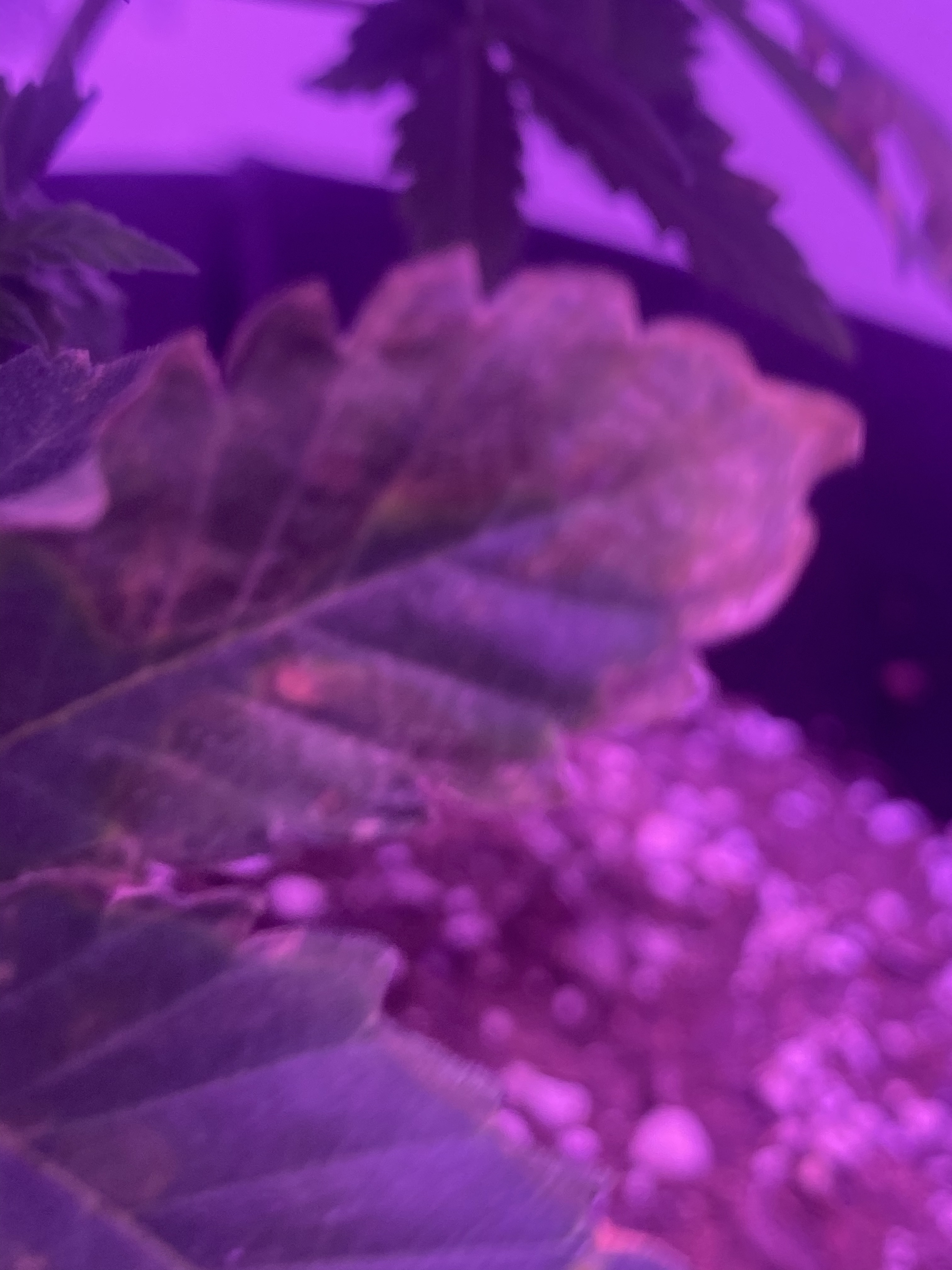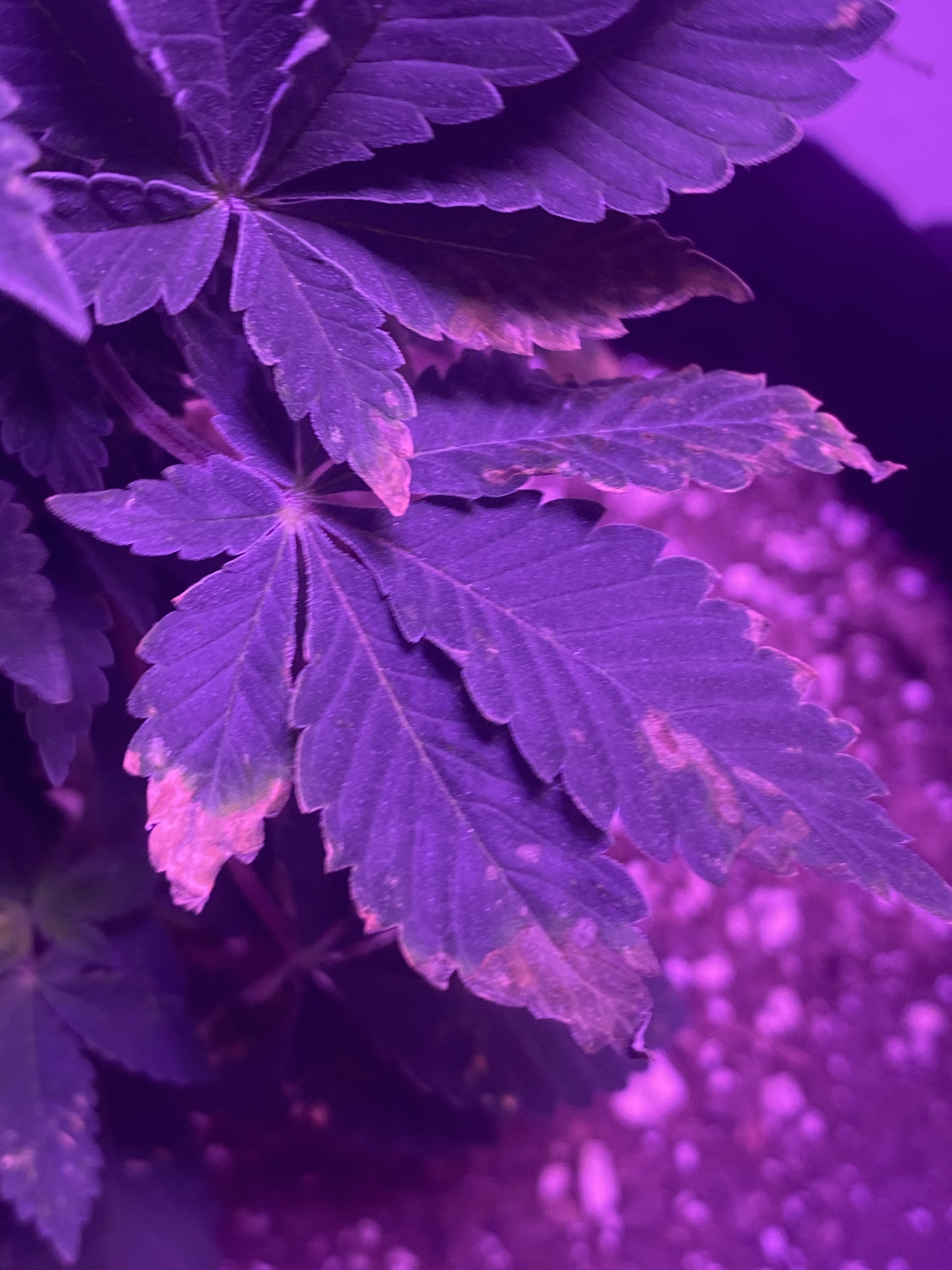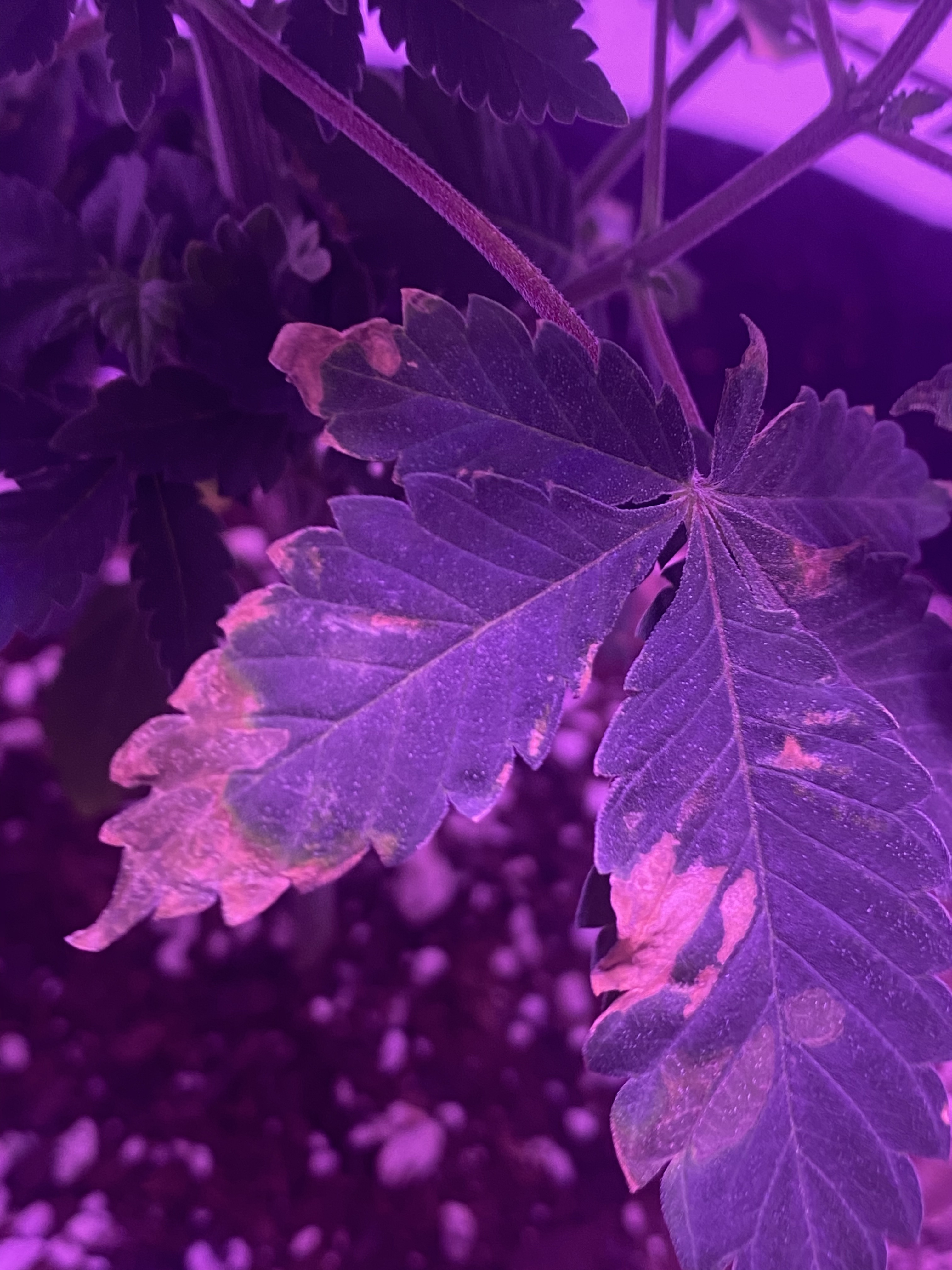 Did you spill any water on your leaves. It looks kind of like that when it is left there when the lights are on.