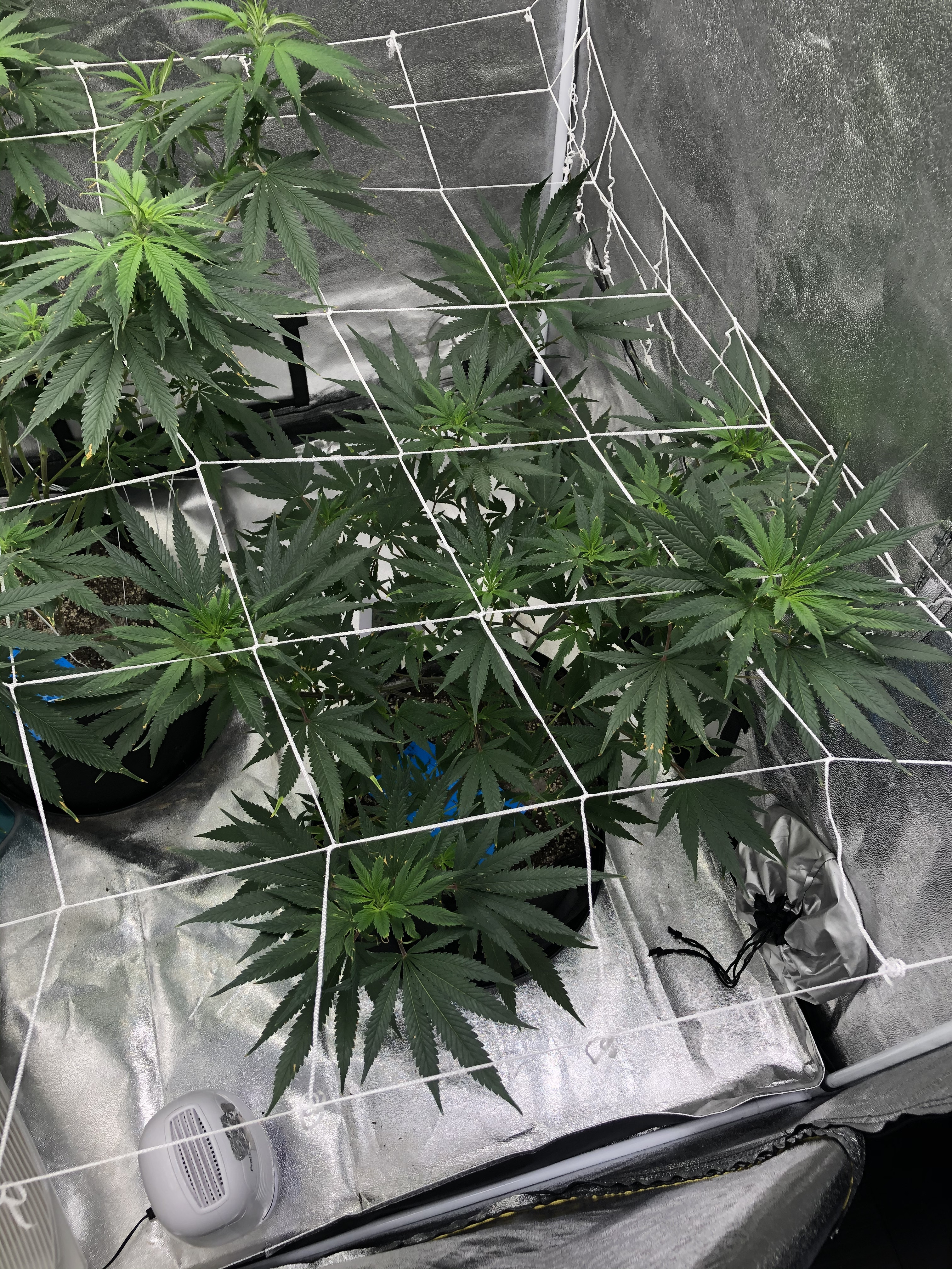 another week or so and we can add a scrog net and canopy train them better! Just want to get all spraying done before they’re tied in place.