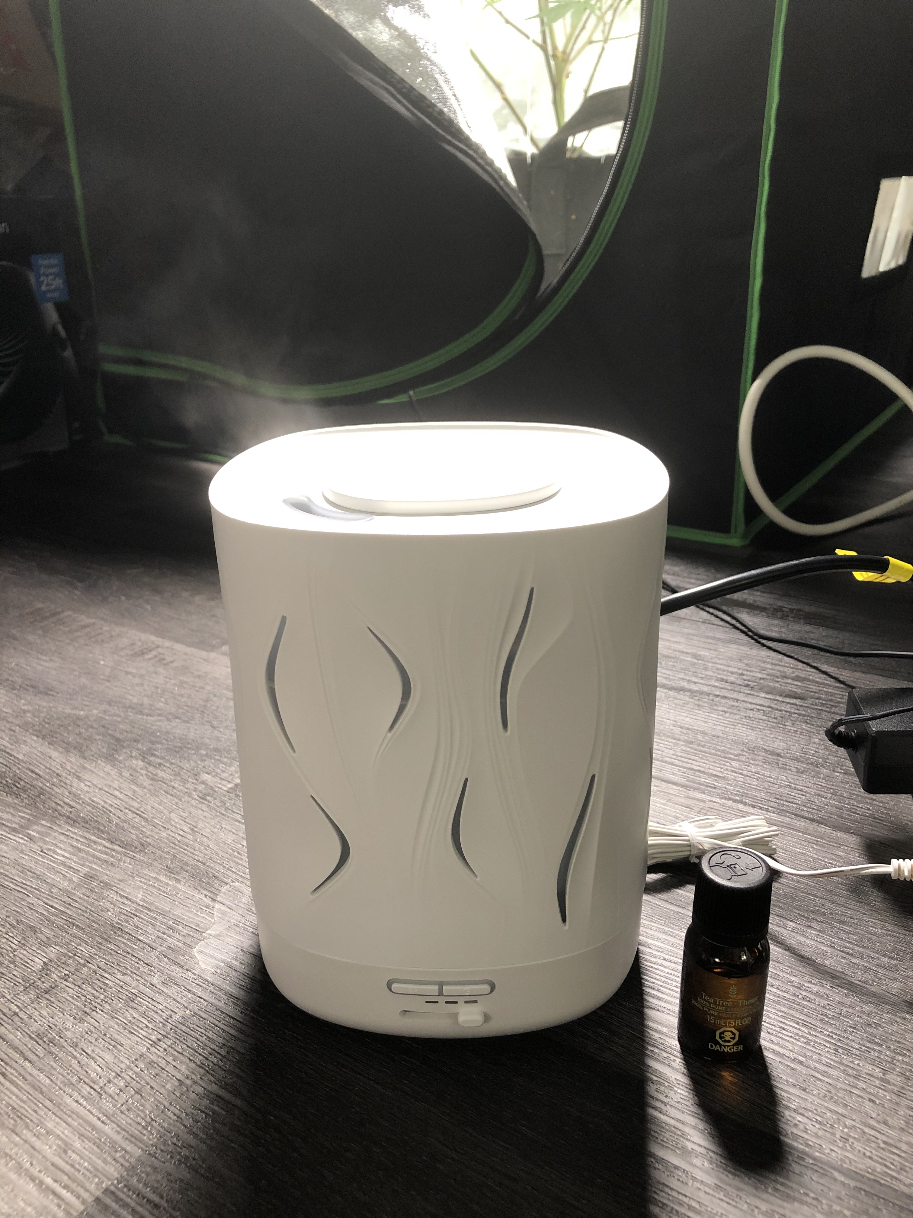 - Essential oil diffuser (with 100% pure tea tree oil, 5 drops per 500ml of water).