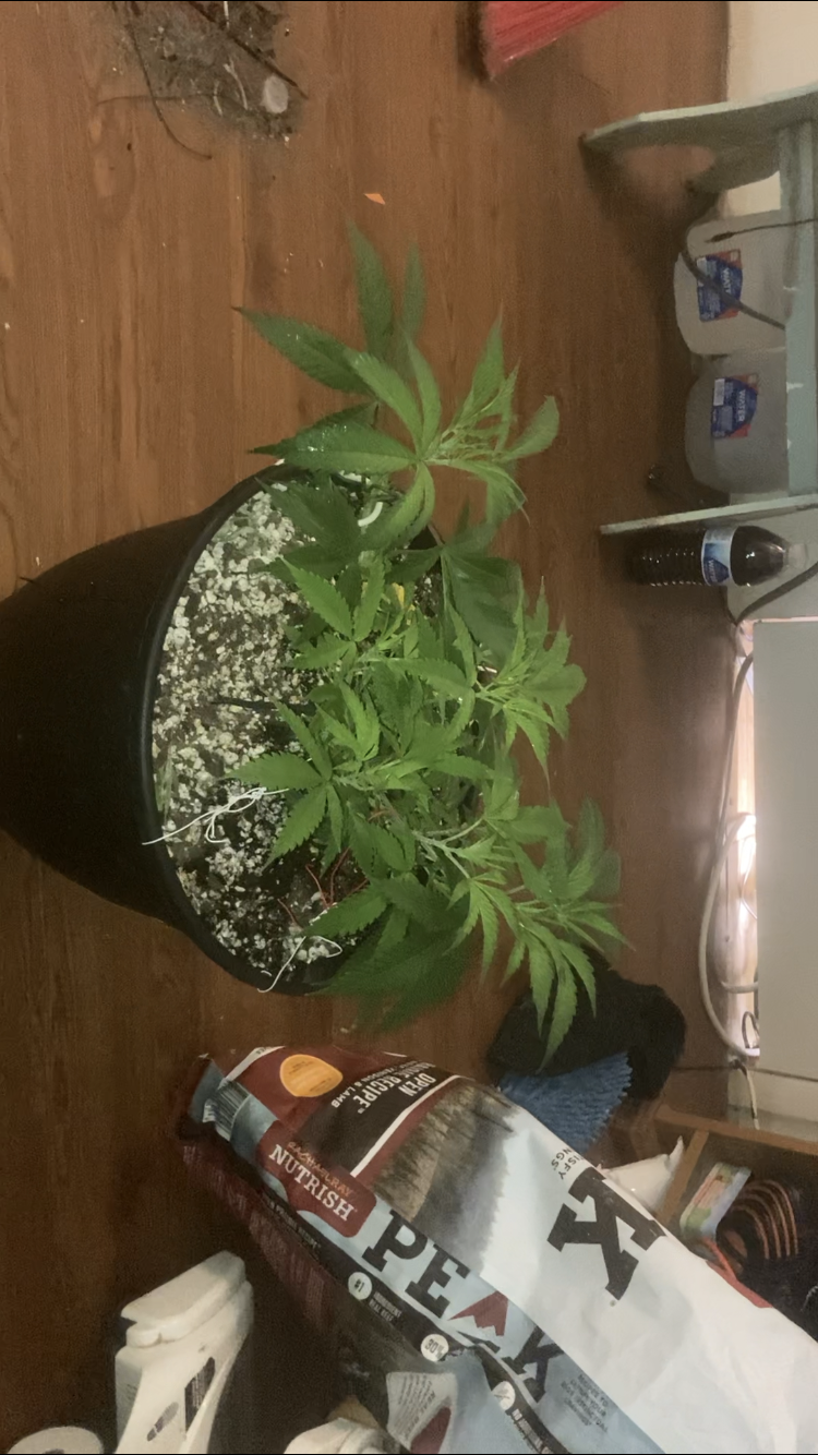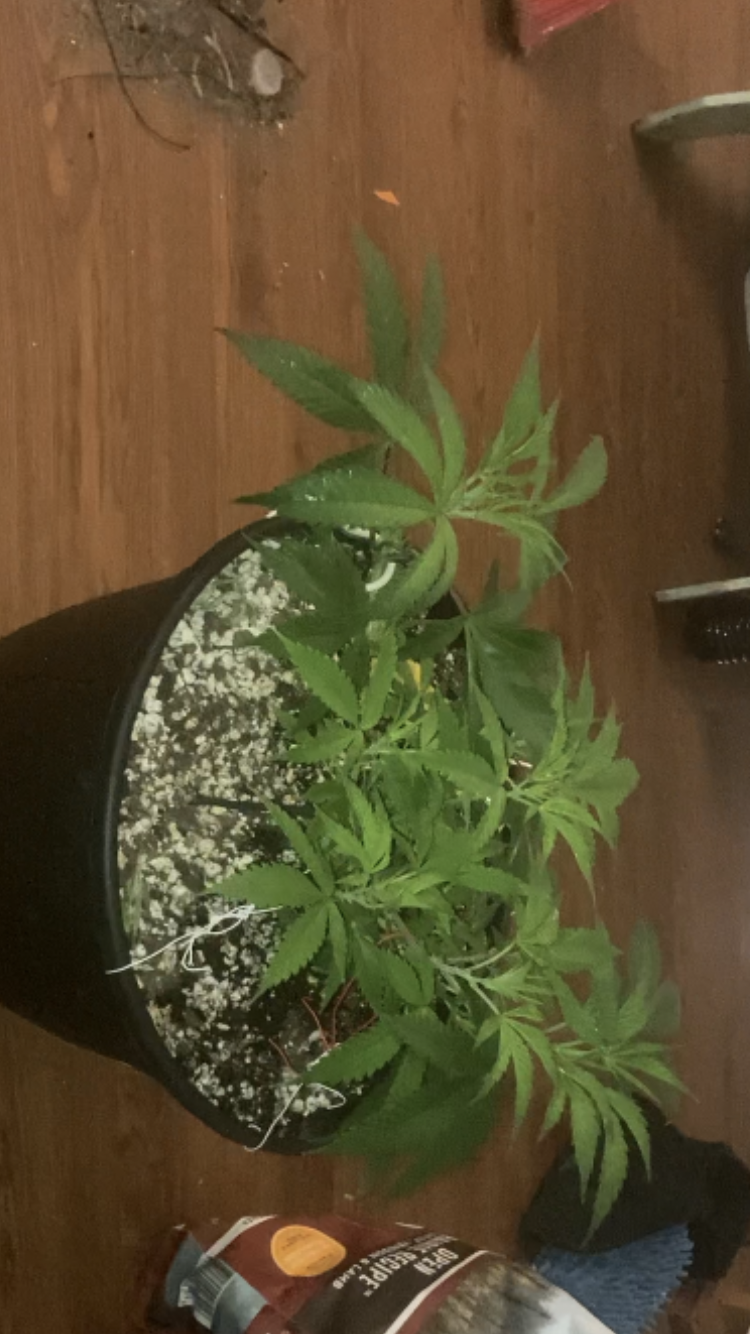 I’m only growing one grape cookies autoflower and the one that this post is about is a bag seed from I’m not sure either it’s some good smoke or some regular trash bud but I don’t think it’s trash weed cuz it’s been a long time since I smoked trash bud so it’s getting really big and bushy