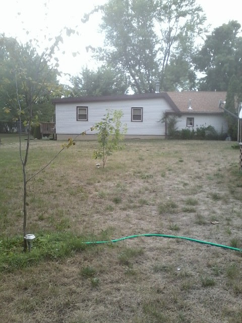 ID:	519643 I saved these 3 two-year-old trees (neighbor's house in background, pre-fence) Thirty-seven years here, I'd never seen a drier summer, 2014.