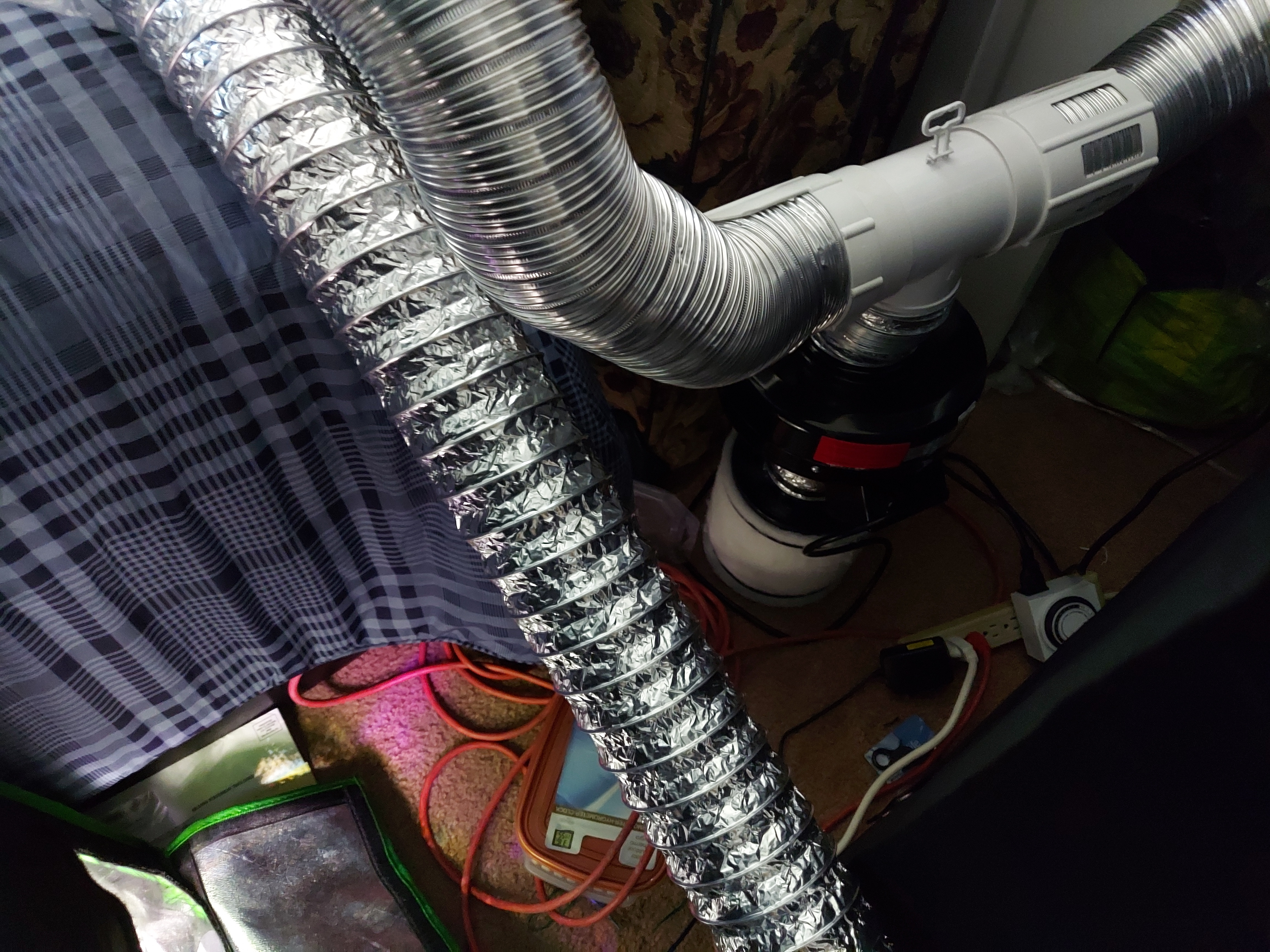 Using it for both tents with a vent for fresh air used a t connector duct to bring it all together.
