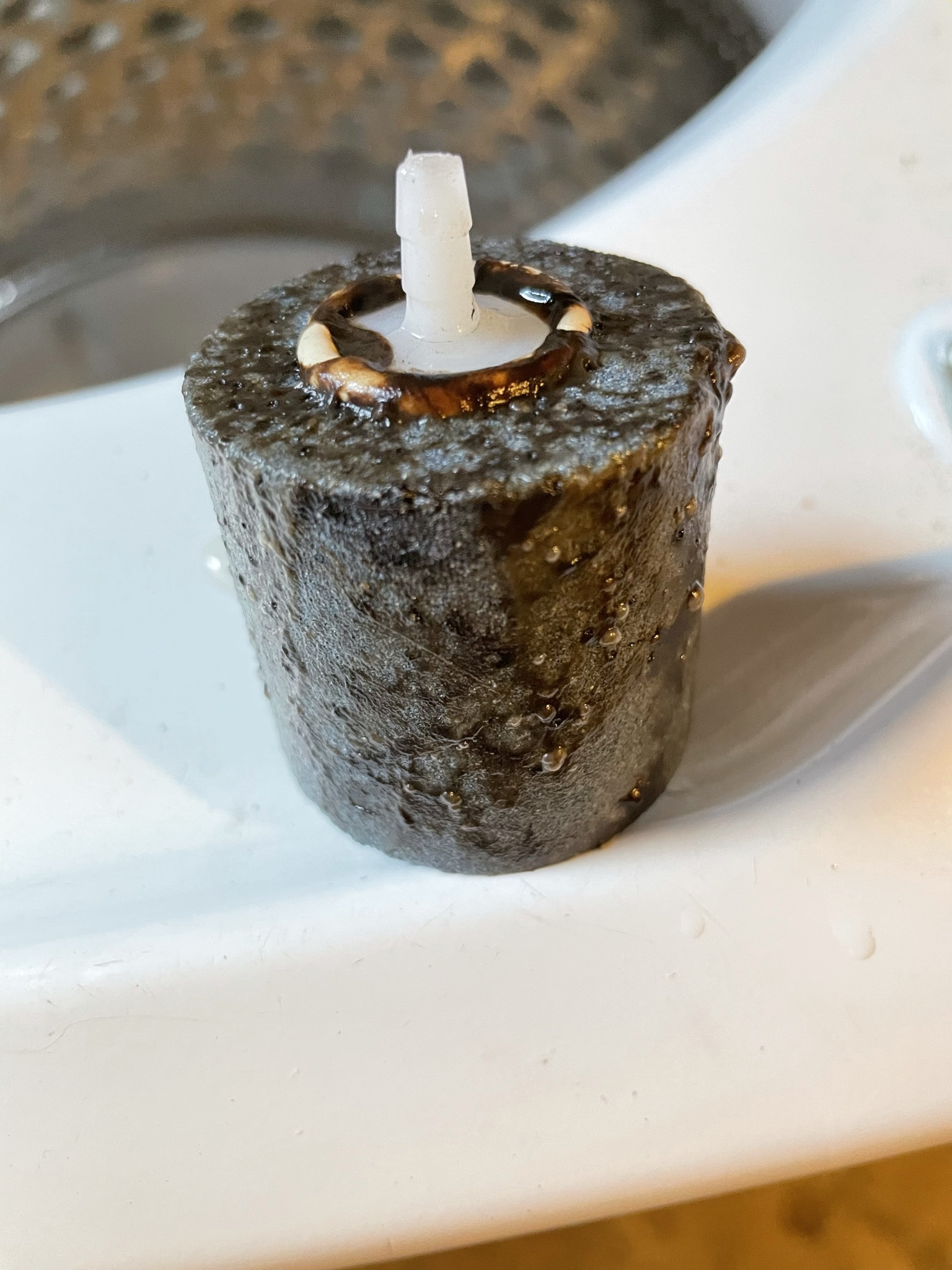 Long story short, I've done everything virtually the same as other grows in hydro except forgetting to bleach and rinse out the hydroton pellets. I keep finding big "rafts" of red-brown algae which I noticed smells just like fish tank water. I find it growing on the airstones mostly. The bits get loose and cling to the roots, causing them to rot. I keep cleaning this crap out yet it still comes back. I went crazy cleaning the hell out of both RDWC systems yesterday before feeding and adding Hydroguard. Today, I had to wash off slimed roots and add more Hydroguard. None of the Blueberries in hydro look like they will make it another week. I installed an A/C unit in the grow room over the weekend to bring temps and RH down and it is doing the job. Water temps are hanging around 72-73 F. I've piled on hydroton pellets in the net pots to try to cut down light leaks. I've washed out the "dirty" hydroton I used enough times to get all the garbage out but this pestilence is persistent.