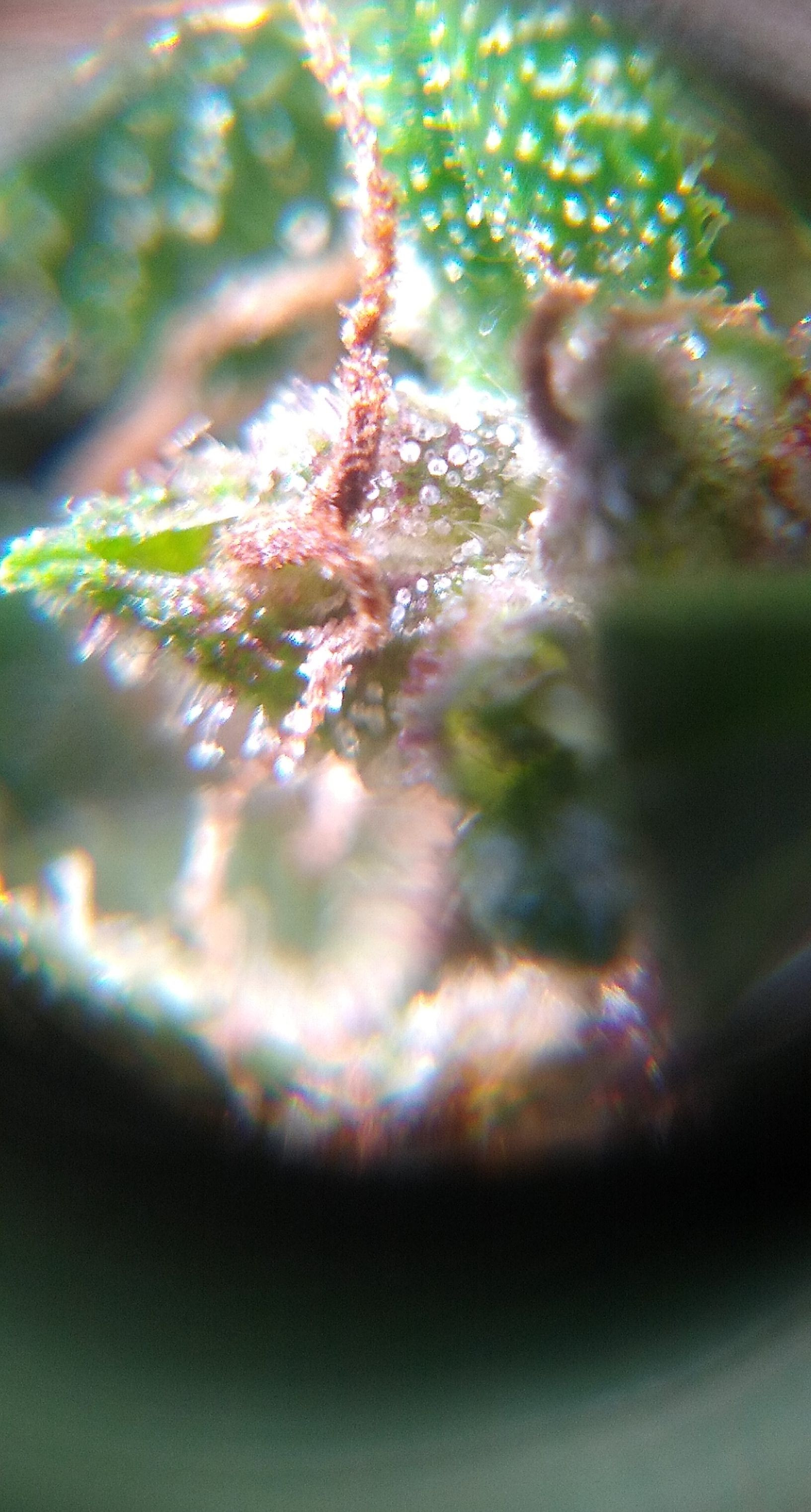 Can the community please give me a few pointers of when I should harvest my baby.....the trichome pictures are not the greatest its very hard trying to get a good picture of them. For the most part trichomes are cloudy but she still has quite a few white hairs...i will post a few pictures thanks in advanced.(75 days old)