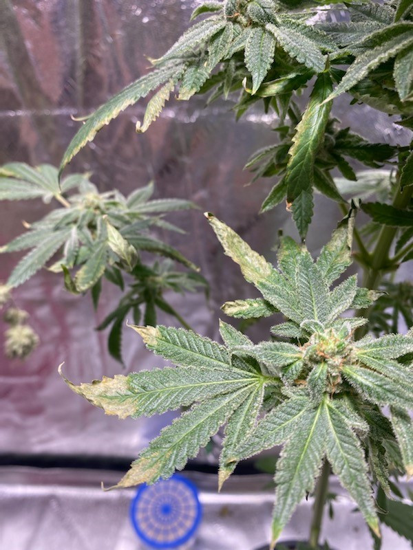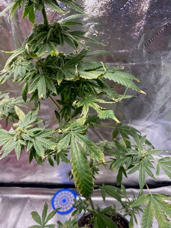 Hi Growers of WE I have a niece who sent me pics of her plants. She has thrips so she got some neem oil and used it. She pretty much threw seeds in a pot and hope for the best. Rookie I dont have too much info for it so if anyone can diagnose this problem thanks so much. Is the plant worth saving I do know it suppose to be in week 8 of flowering. If you have thoughts about thanks.