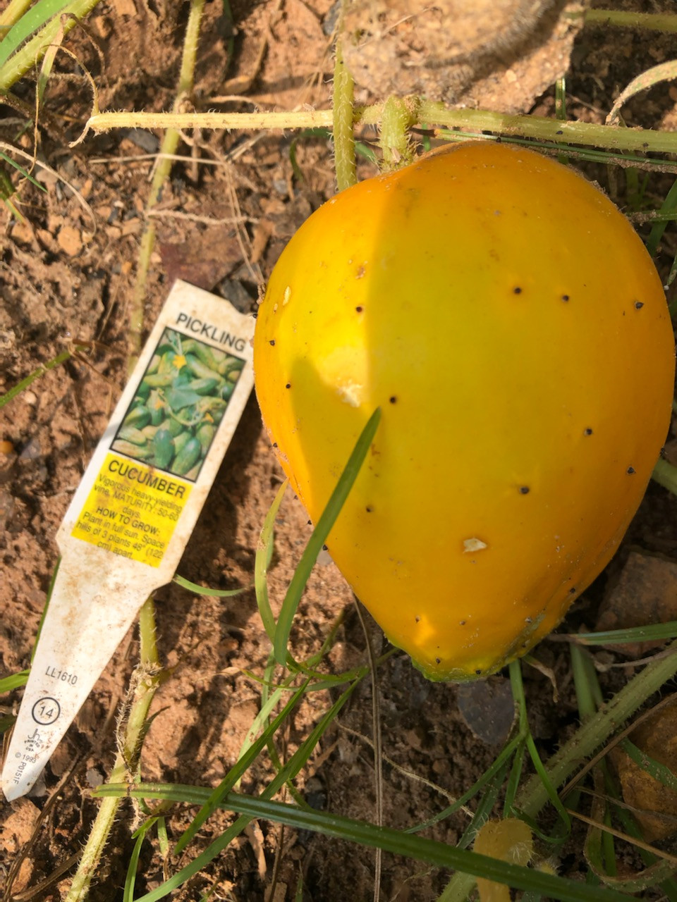 Veggie gardeners, my sister sent these images of her pickling cucumbers and she doesn’t understand what is going on. This is the second year in a row this has happened. She put chicken poop on top of the ground and then tilled. When she put the plants in the ground she added a handful of fruit and veg potting soil. Keep in mind that the year before she did not use chicken poop.