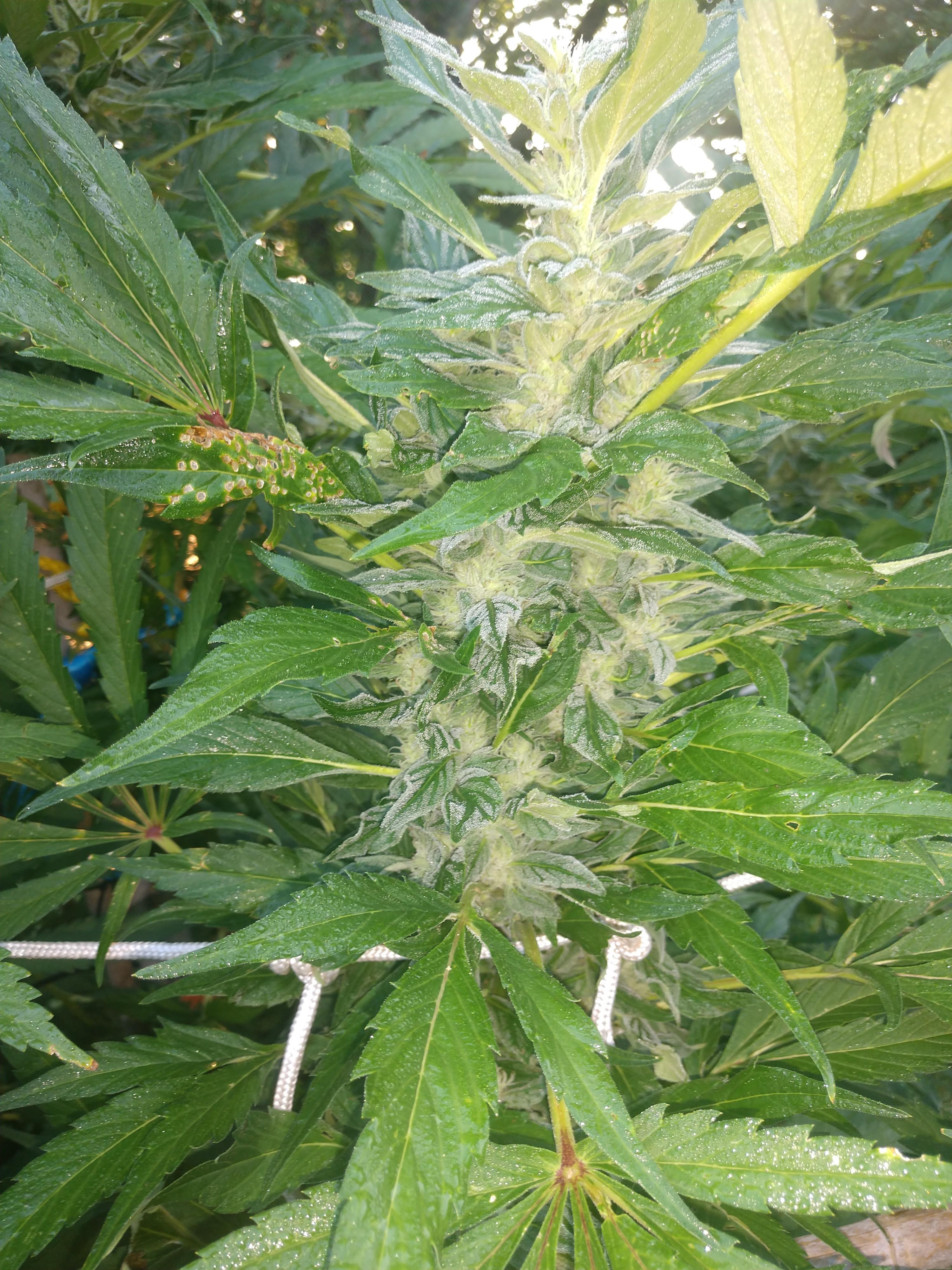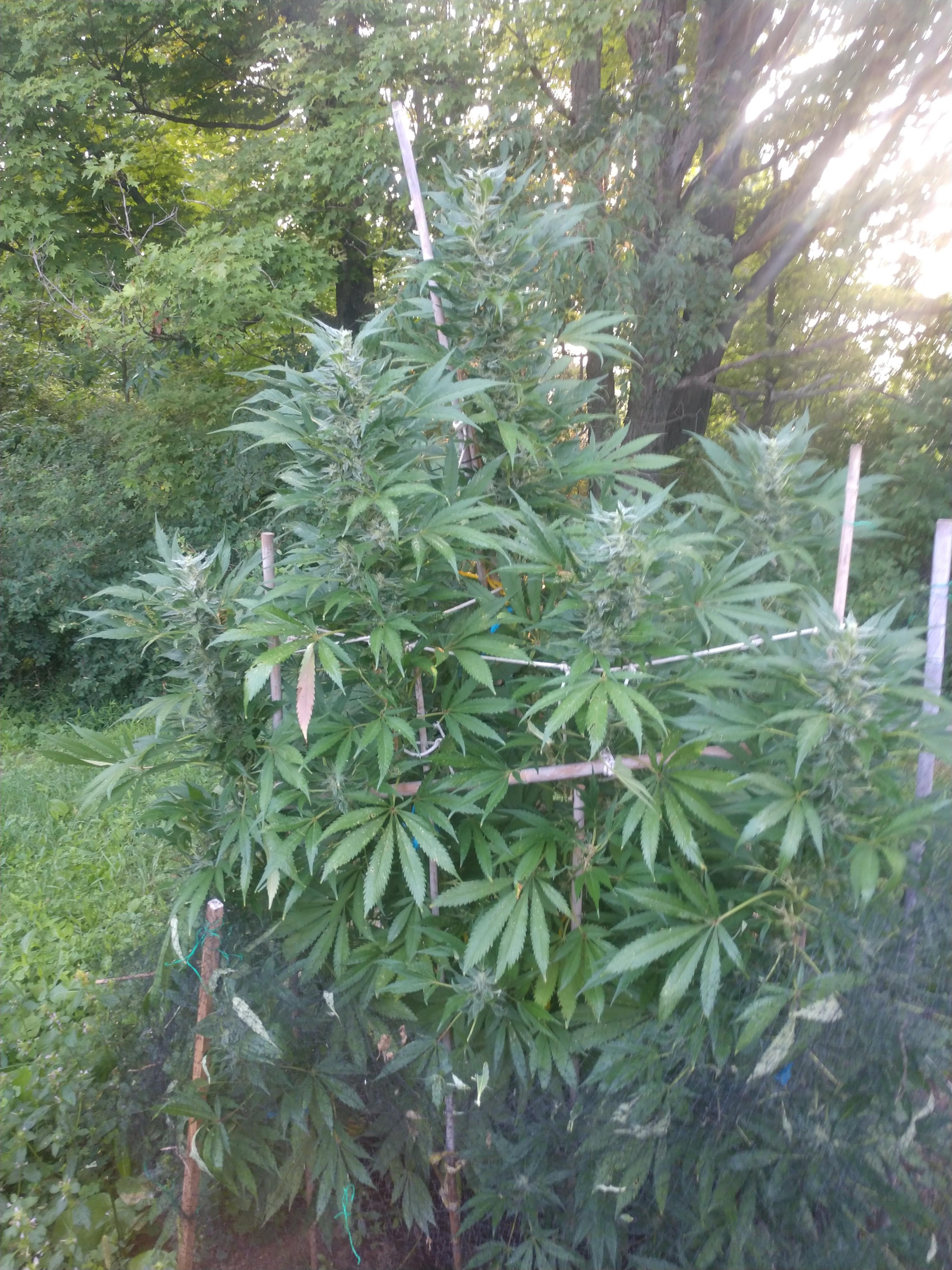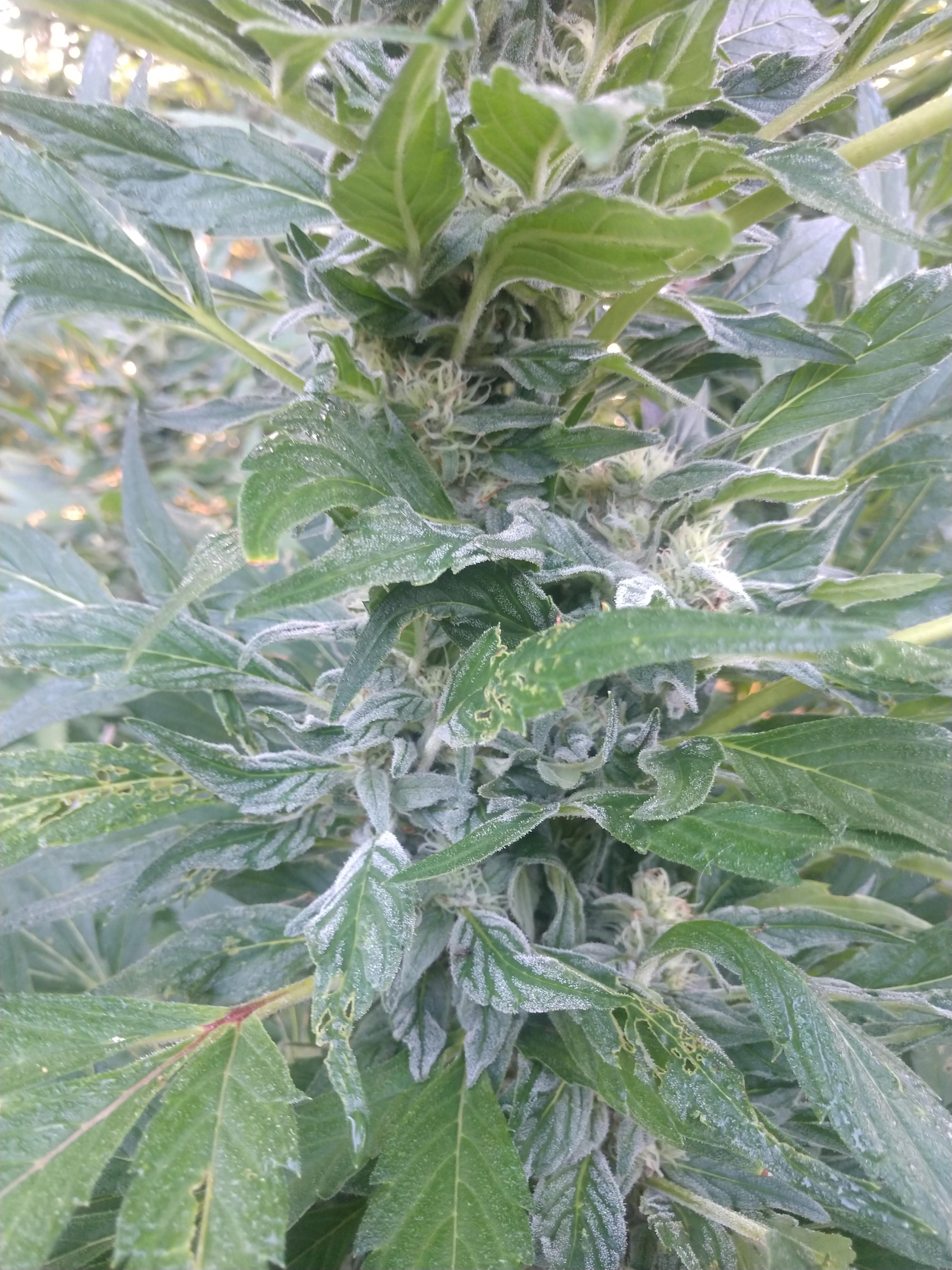 My indica lady is now 148 days from seed and 7 feet tall. Thing is HUGE. She's been flowering since near the end of June or the beginning of July, buds seem to be swelling and a lot of that nice frosty goodness all over. I've even tried some of it and flash dehydrated it and it gives a nice mellow buzz already which I think is a good sign. I'm currently giving it NPK and calmag every other day.