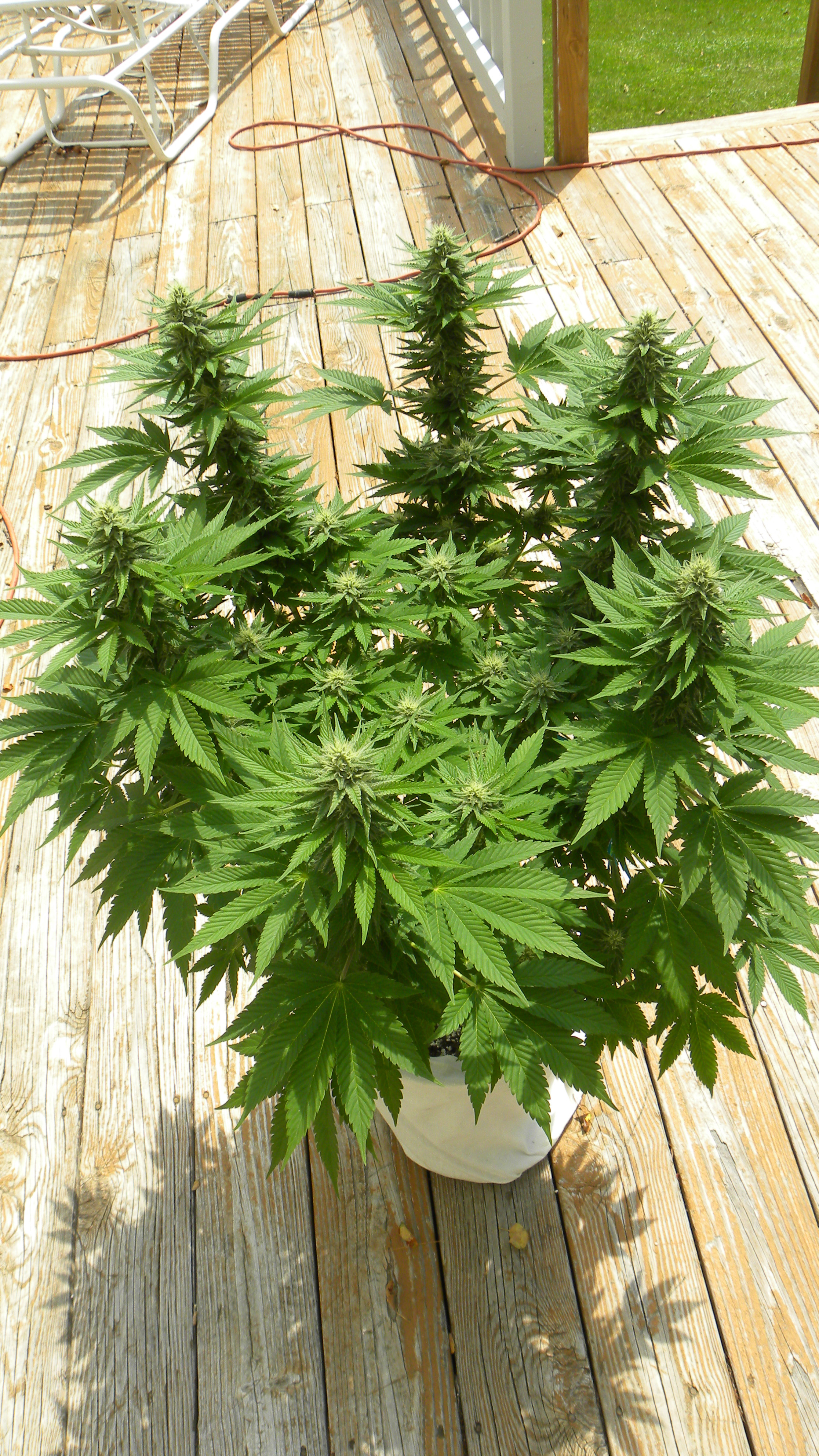 Indoor/outdoor GG #4 grow, now 25 days since "flipping" and 29" tall (lol). I have been going with 12 1/2 hrs of daylight as opposed to 12hrs and the plant seems to love it.