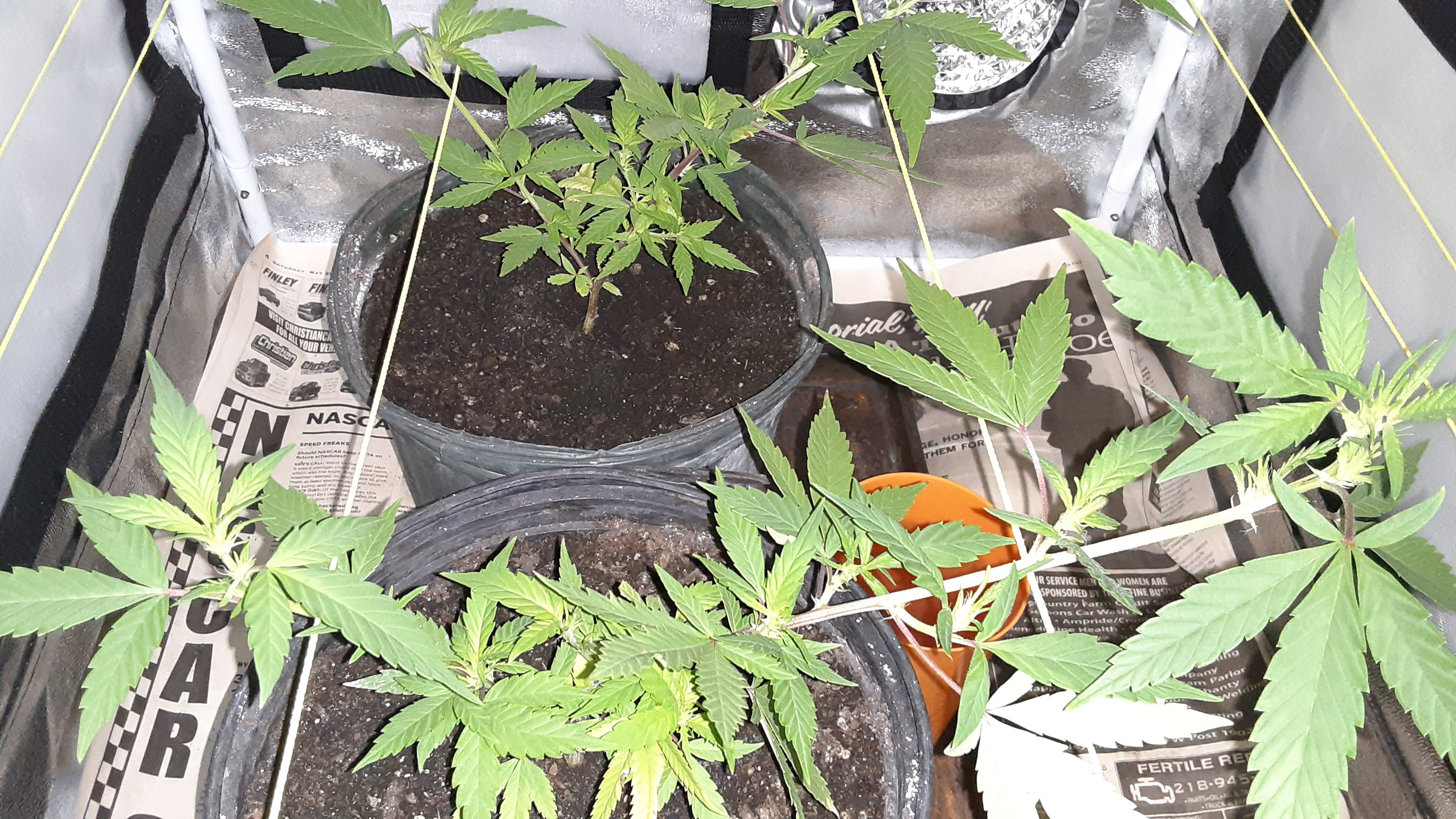Hey, I'm brand new to this forum and it's my second attempt at a grow. I was given two clones the beginning of Aug and they are doing pretty good I think. I'm using a soil/compost mix because I have access to huge compost piles where I live. I have a 3x3 tent with a 300 watt LED light board. The light schedule is currently 14 hours on 10off. Yesterday I decided to take a clone from one of the plants (nervous as hell and afraid to ruin them) Seems to be doing alright tho. I was told the strain was Jealousy or Peanut butter breath, I'll probably never know for sure lol. I'm struggling with when to put them in the flowering stage.