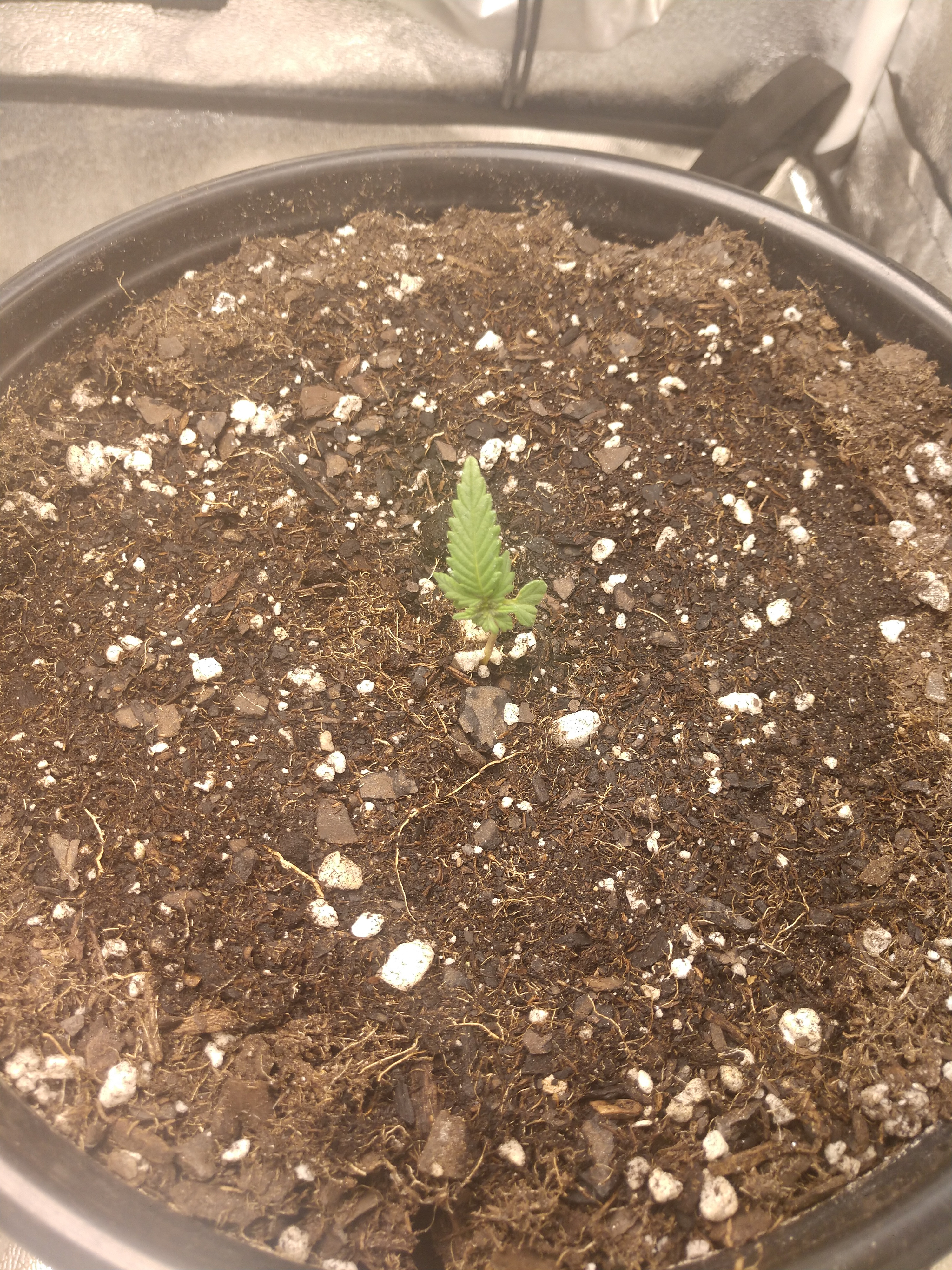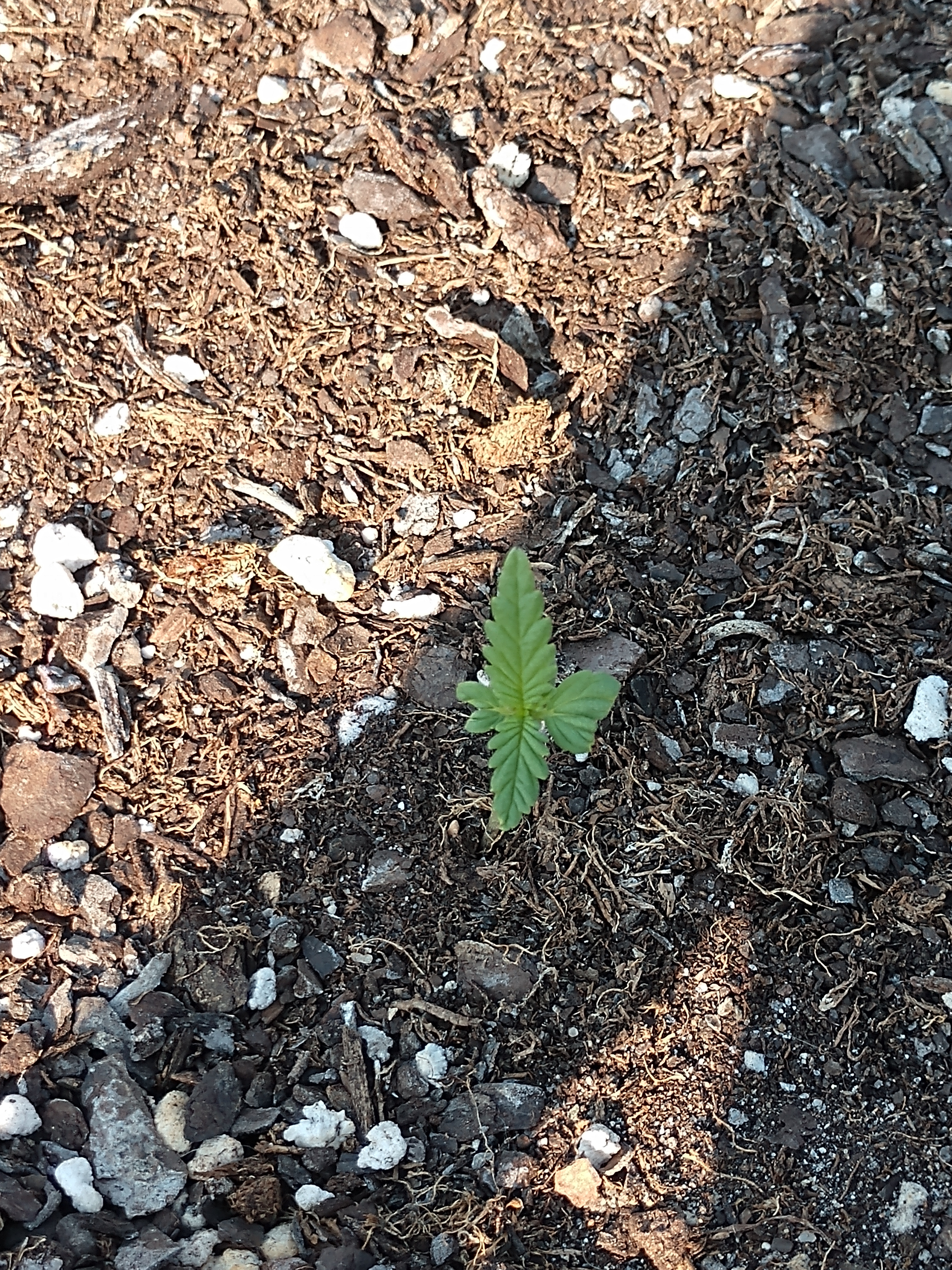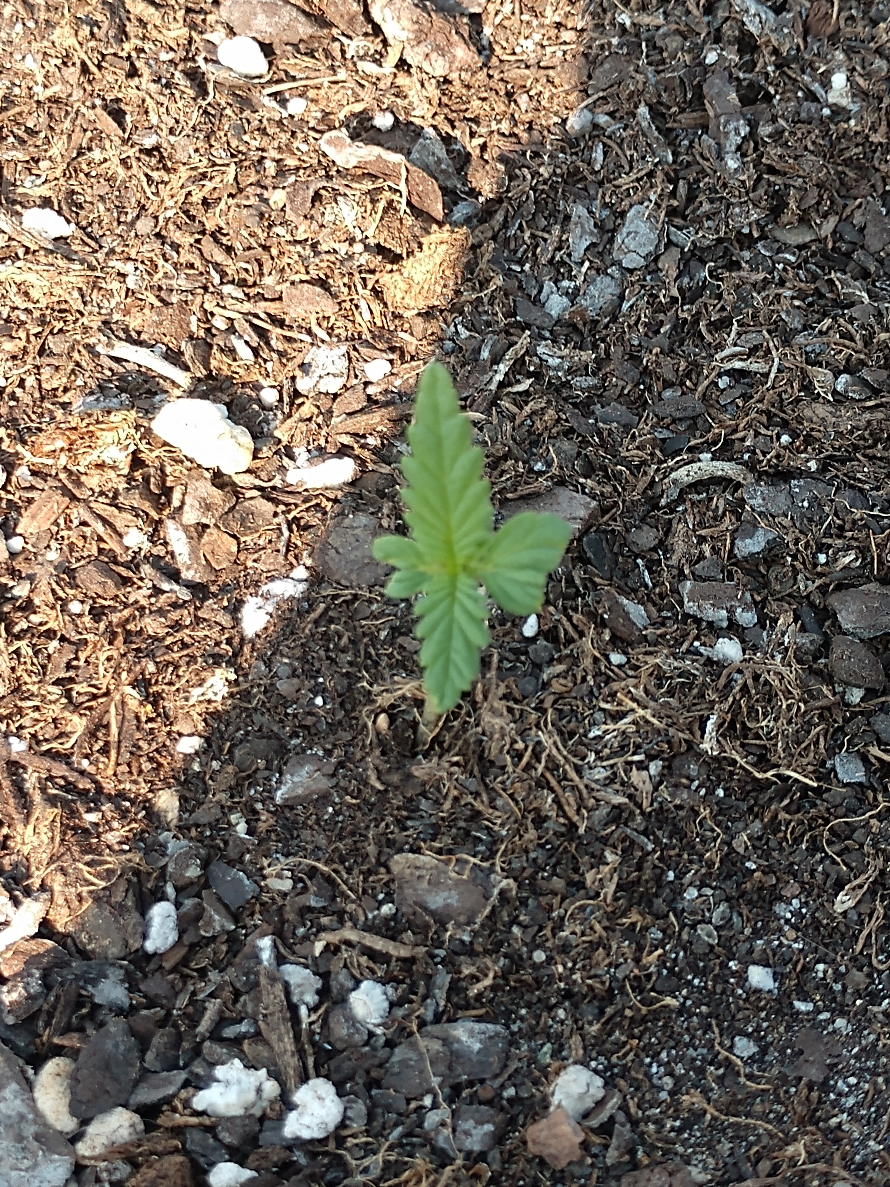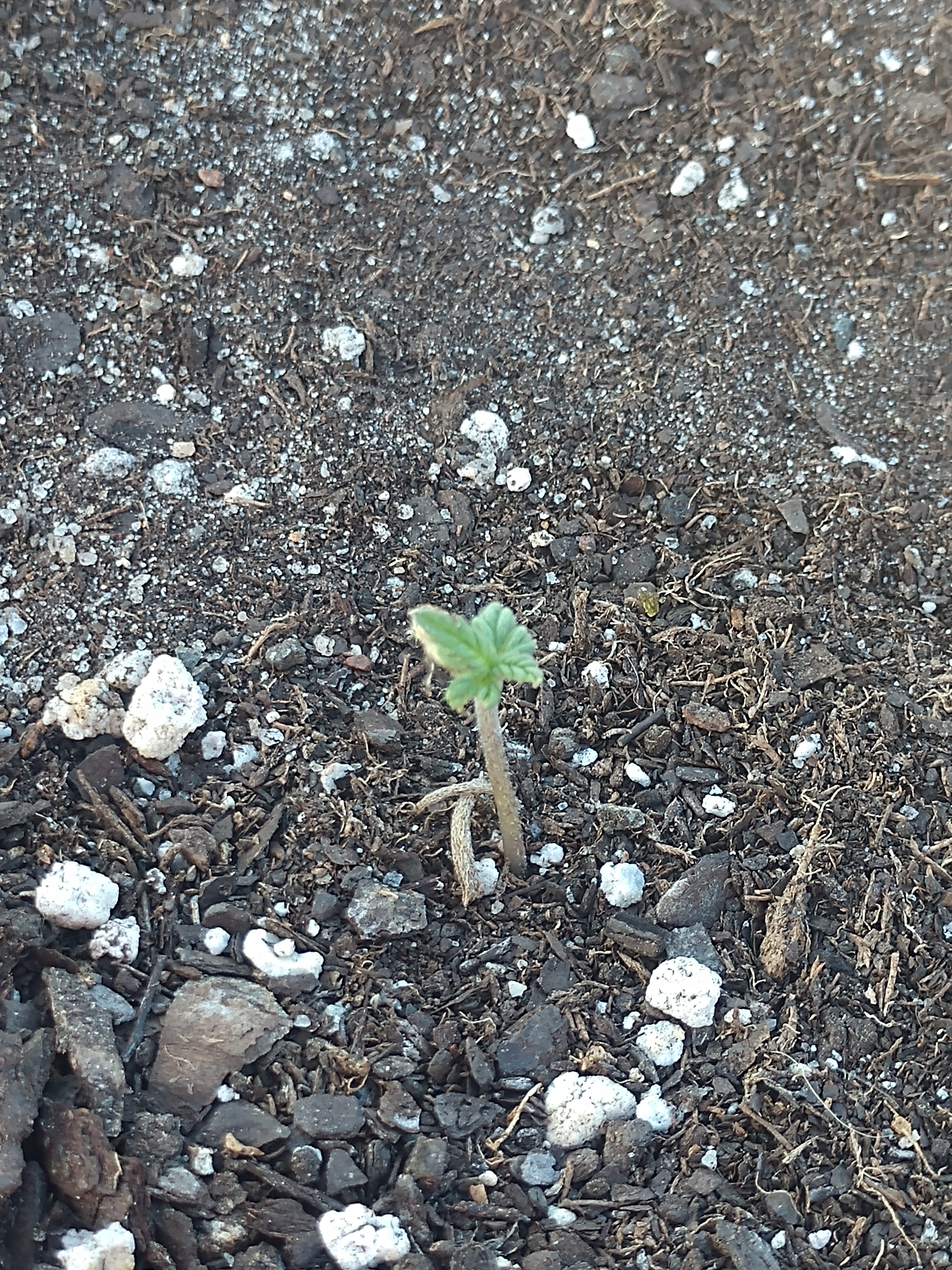 I know the title of the post is probably what caught most of your attention, and possibly had some of you wondering what it's about. Well I planted an autoflower a couple weeks ago and shortly after it sprouted something ate part of it. At first I was thinking it was the deer that are always around this area. So to solve that I put my plant on a table on top of a tree stump so they hopefully wouldn't get to it. Things were fine for a little bit and she was growing again and then all of a sudden some of it was gone again! I really haven't seen any deer in the area we fenced in for my "yard" (probably because of the dogs) so I've been really confused. It also doesn't look like a pest got to it, my first thought was grasshoppers but the leaves were totally gone and not just part of them. So my final thought is that it has to be the birds. I'm trying to let her grow to see what I'll get, but it's been extremely slow because of the lack of leaves. I guess I'm just curious if anyone else has had an issue with birds eating their plants? I'll post some pictures too, going to try and put them in the order they were taken. Any thoughts?