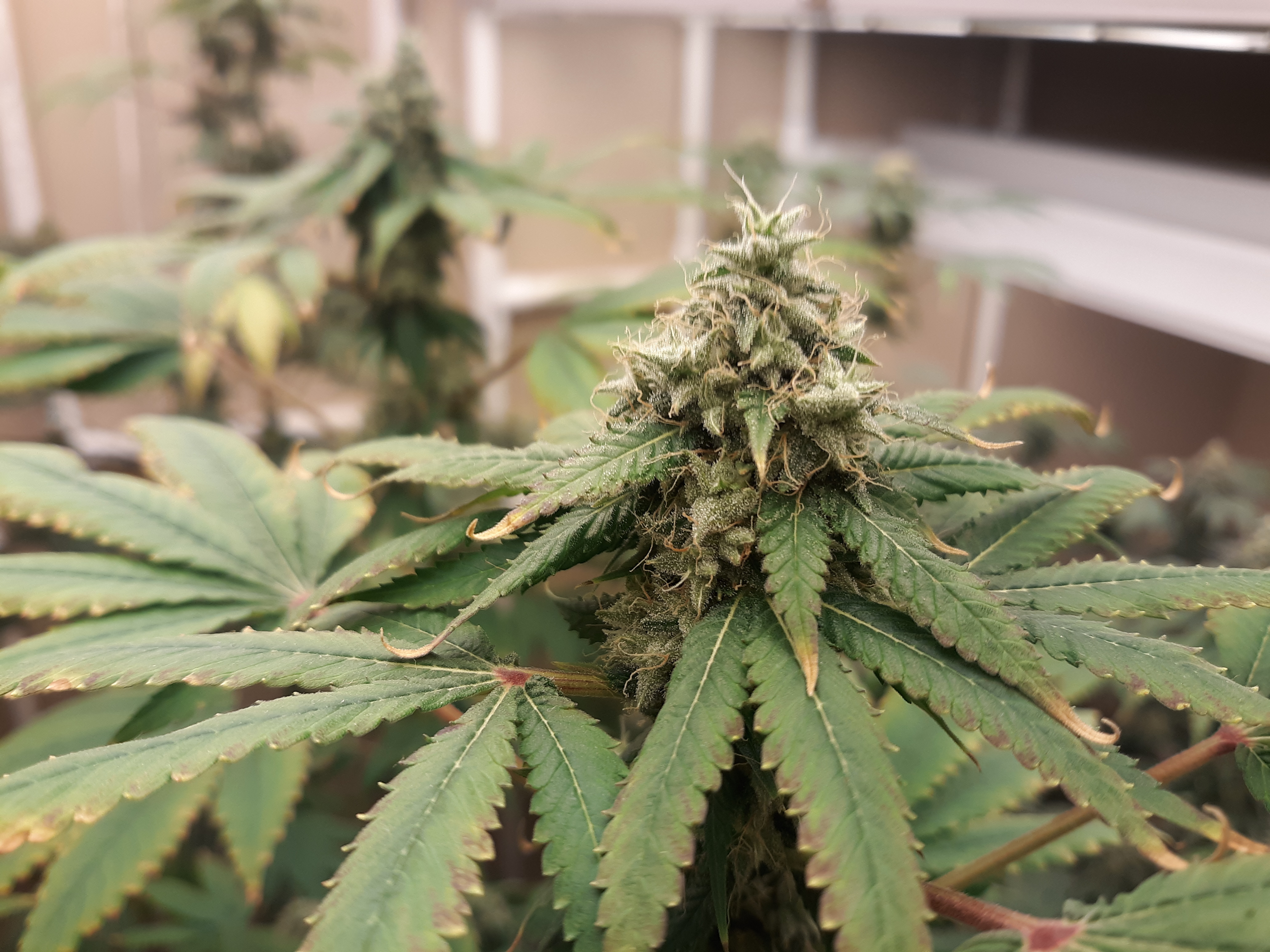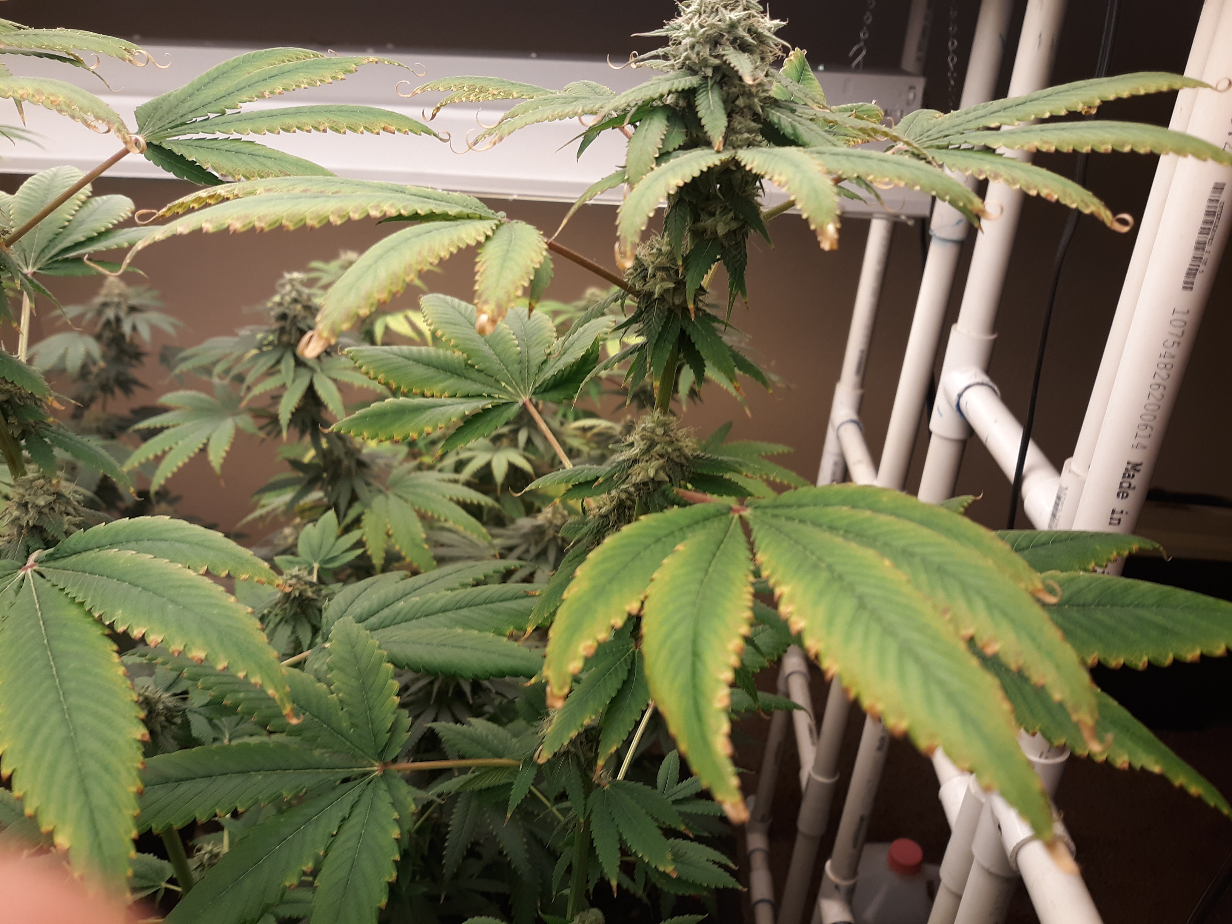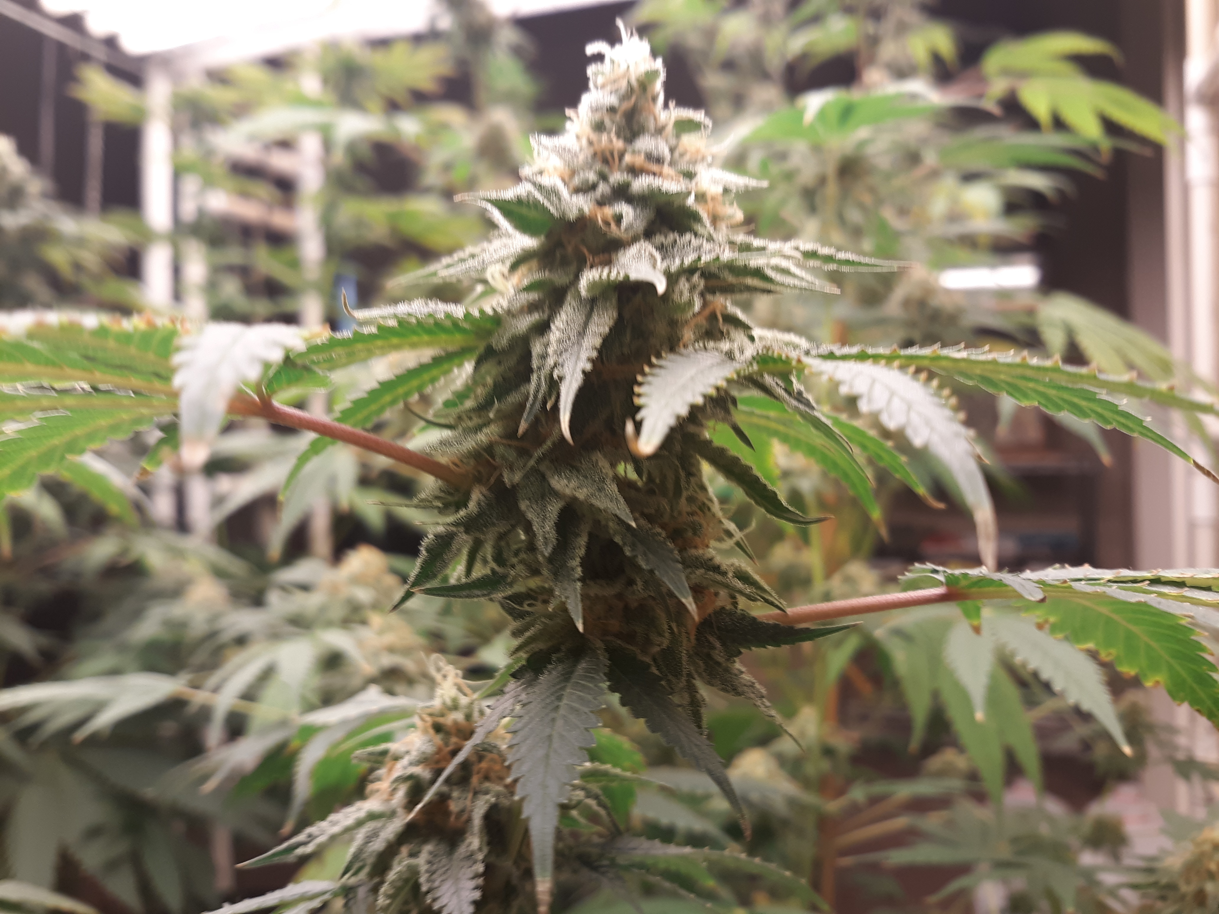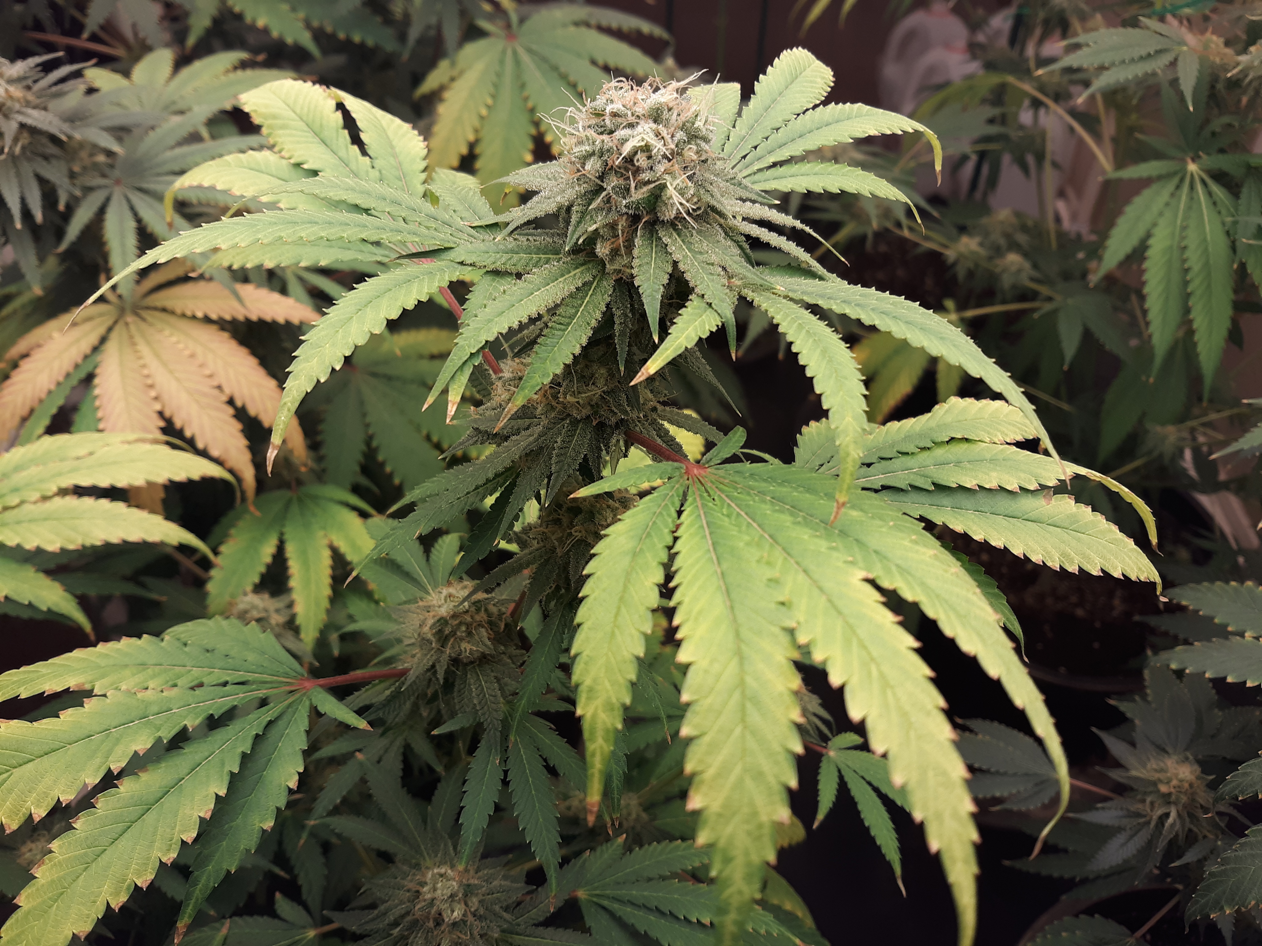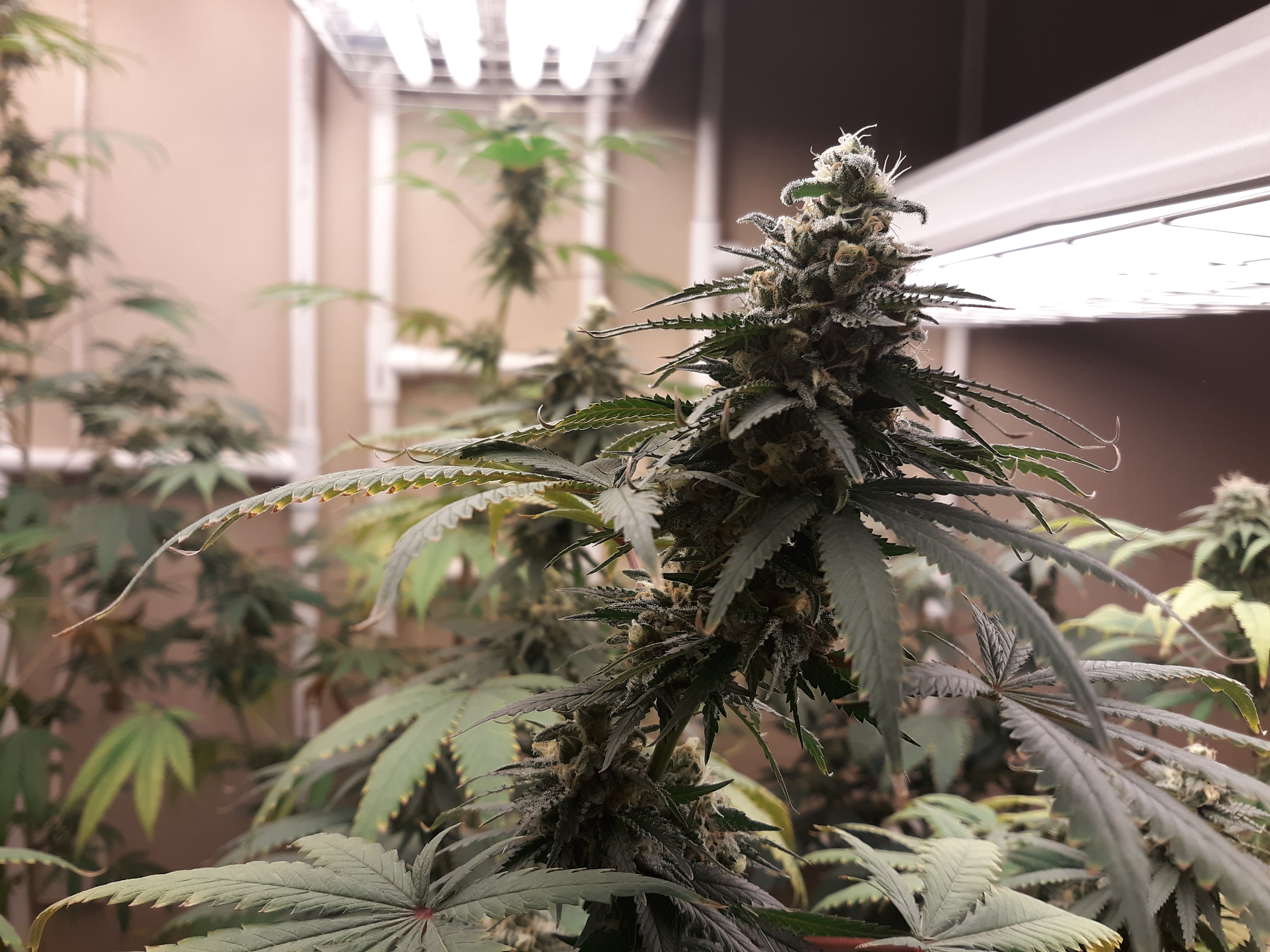 The others are for sure all Sativa and at different stages of maturity (these are at 8 weeks and 1 day into flower as well). There was 1 Sativa I did trim up (lower branches, wasted plant energy) at 6 weeks old, let the popcorn buds dry in a tray for a couple of days and WOW!!! The flavor, taste, smell, and burnability was all 5 stars!!! No choking or hacking, smooth to the palate. And what a buzz! Wake up smiling, ready to go!!! And the buzz lasts quite a long time!!!