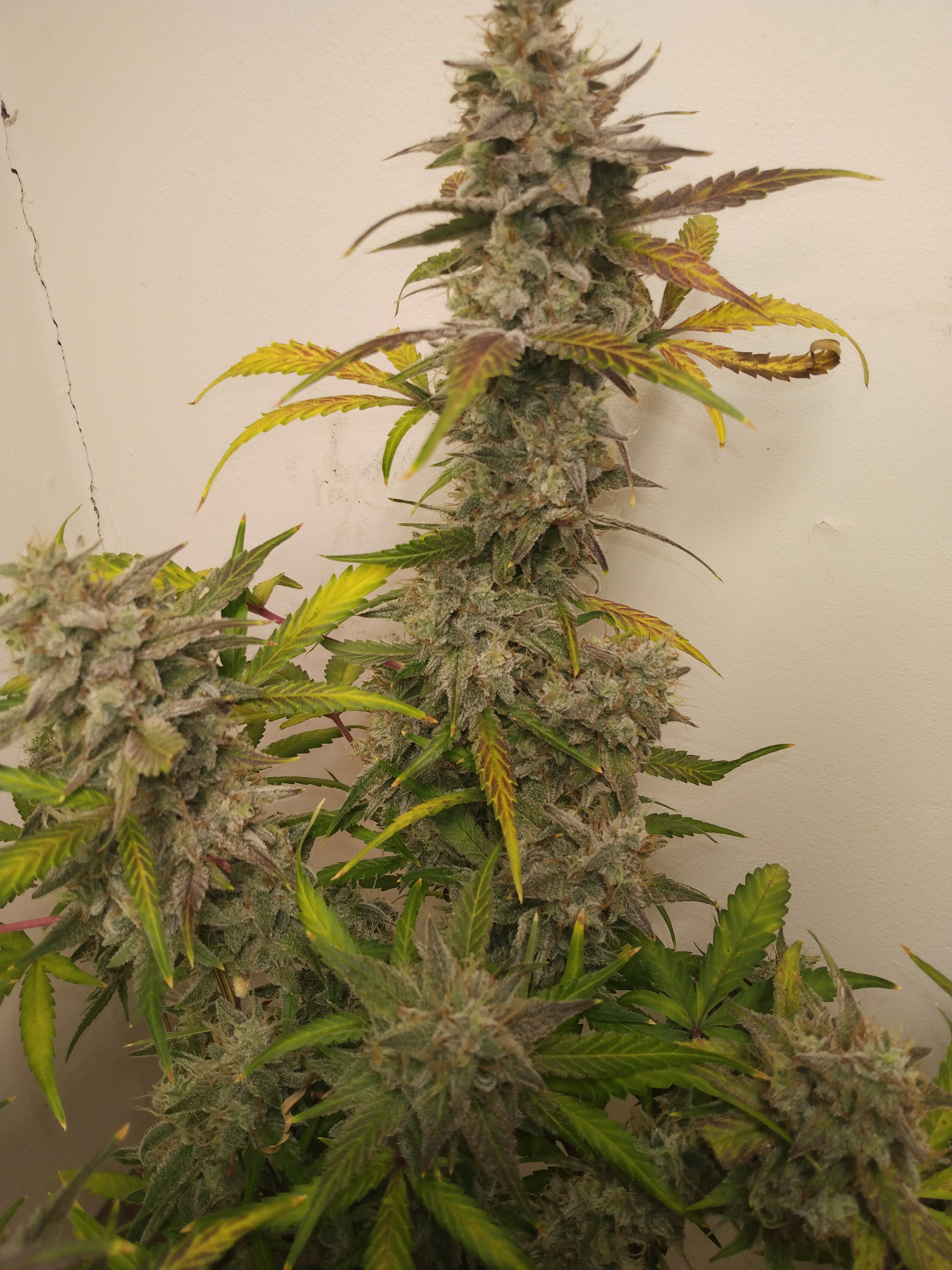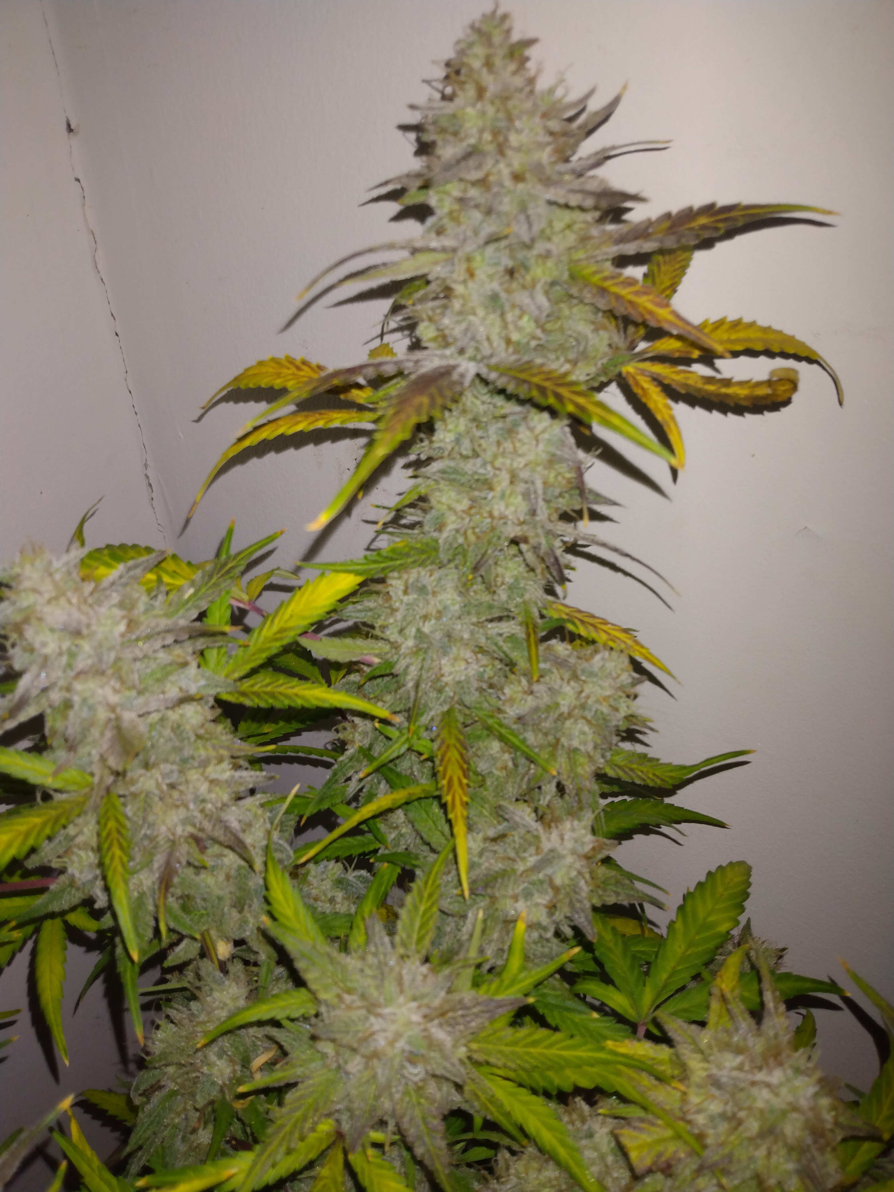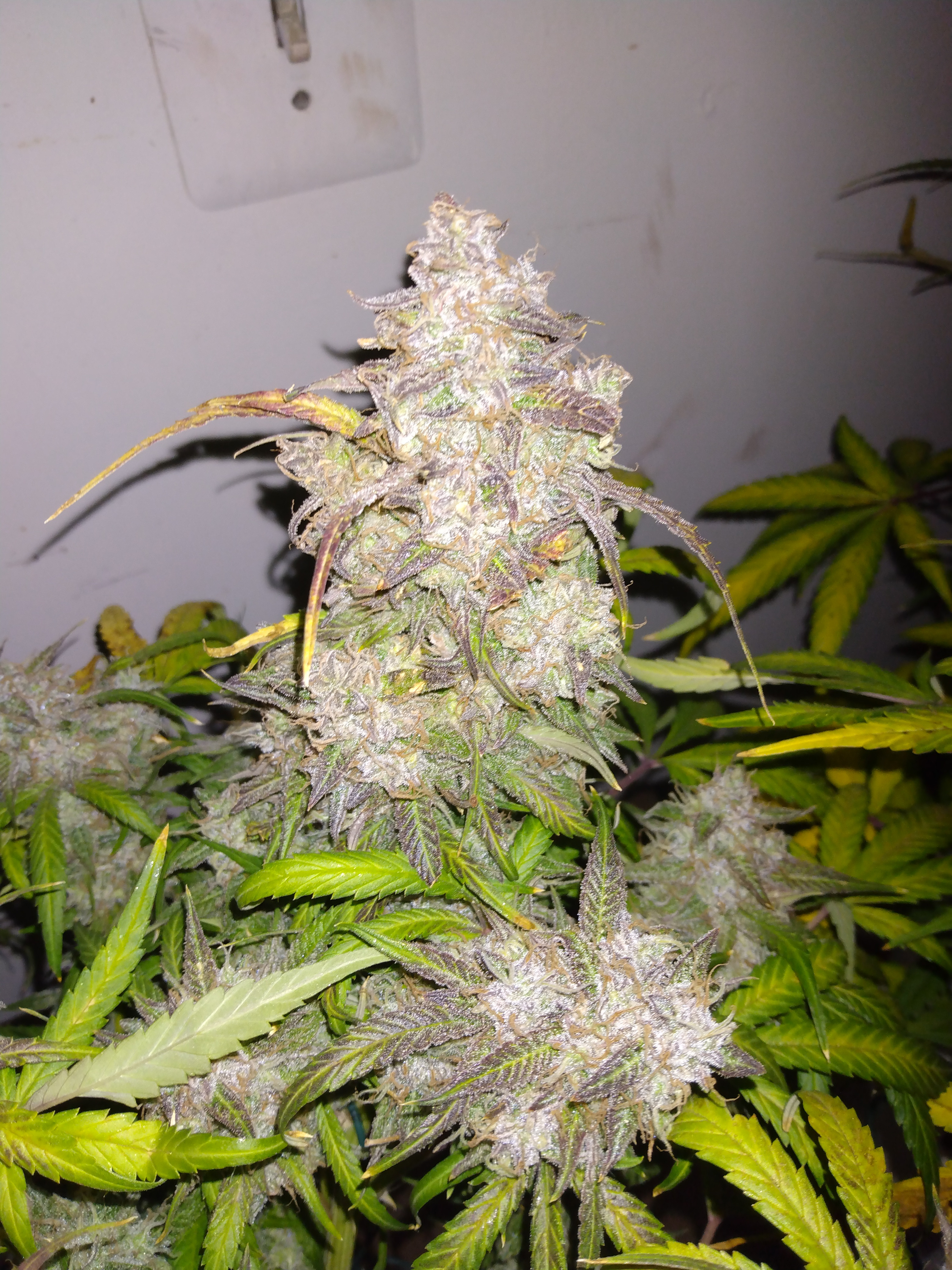 The deed is done. Anyone else get a little sad on harvest day. I do. End of an adventure but the beginning of a new one. Anyhoo the three ladies have lived up to the hype that is memphisto genetics. I am impressed. The frostiest bud I've ever grown. Double grape held the crown till the last two weeks when forum stomper put on a show. pH f ups and all. All three are also the most dense buds I've ever grown. So much so that I was spreading the buds apart on sour stomper as my humidity was running a little high and I was afraid of bud rot. I'll rate this grow as this.
