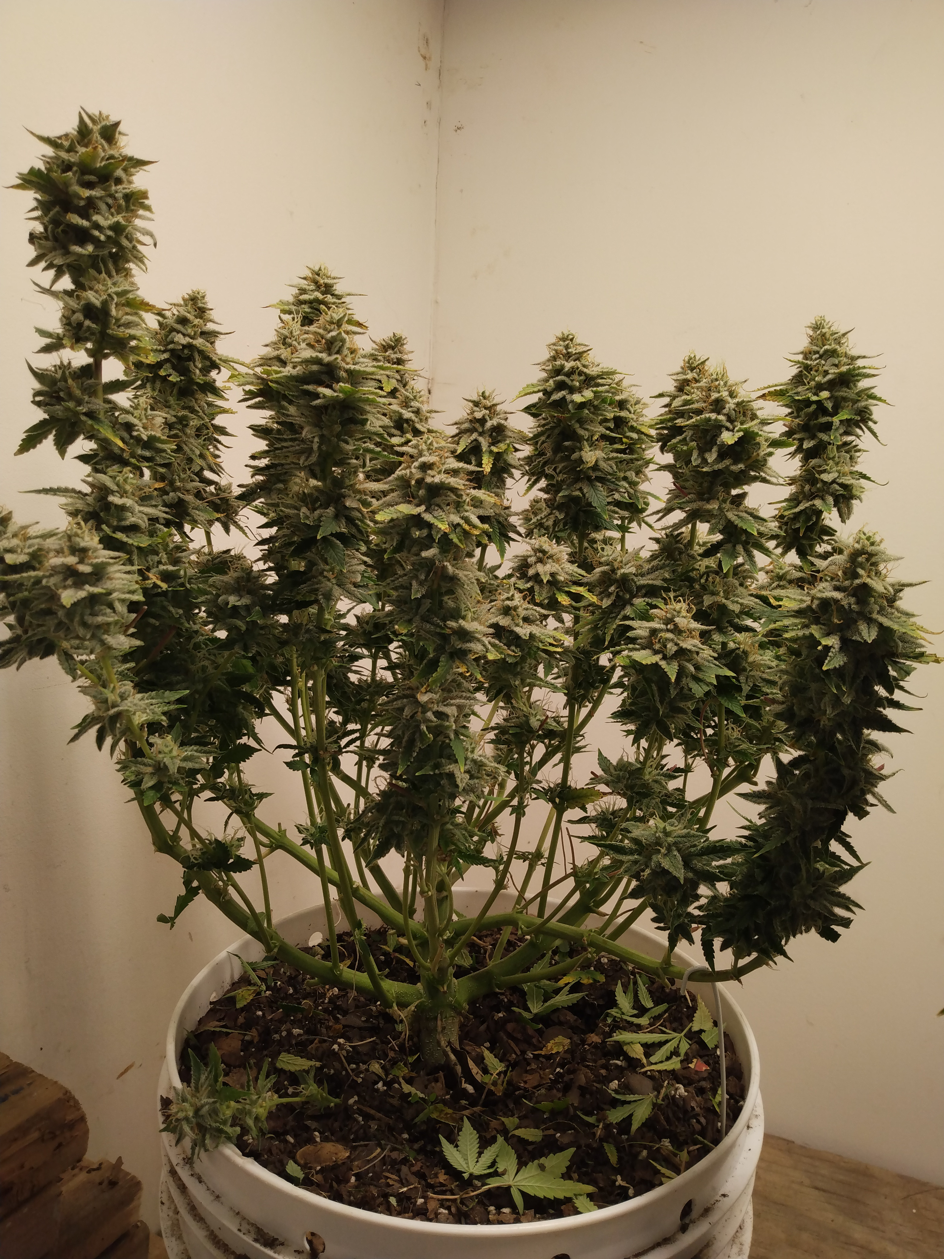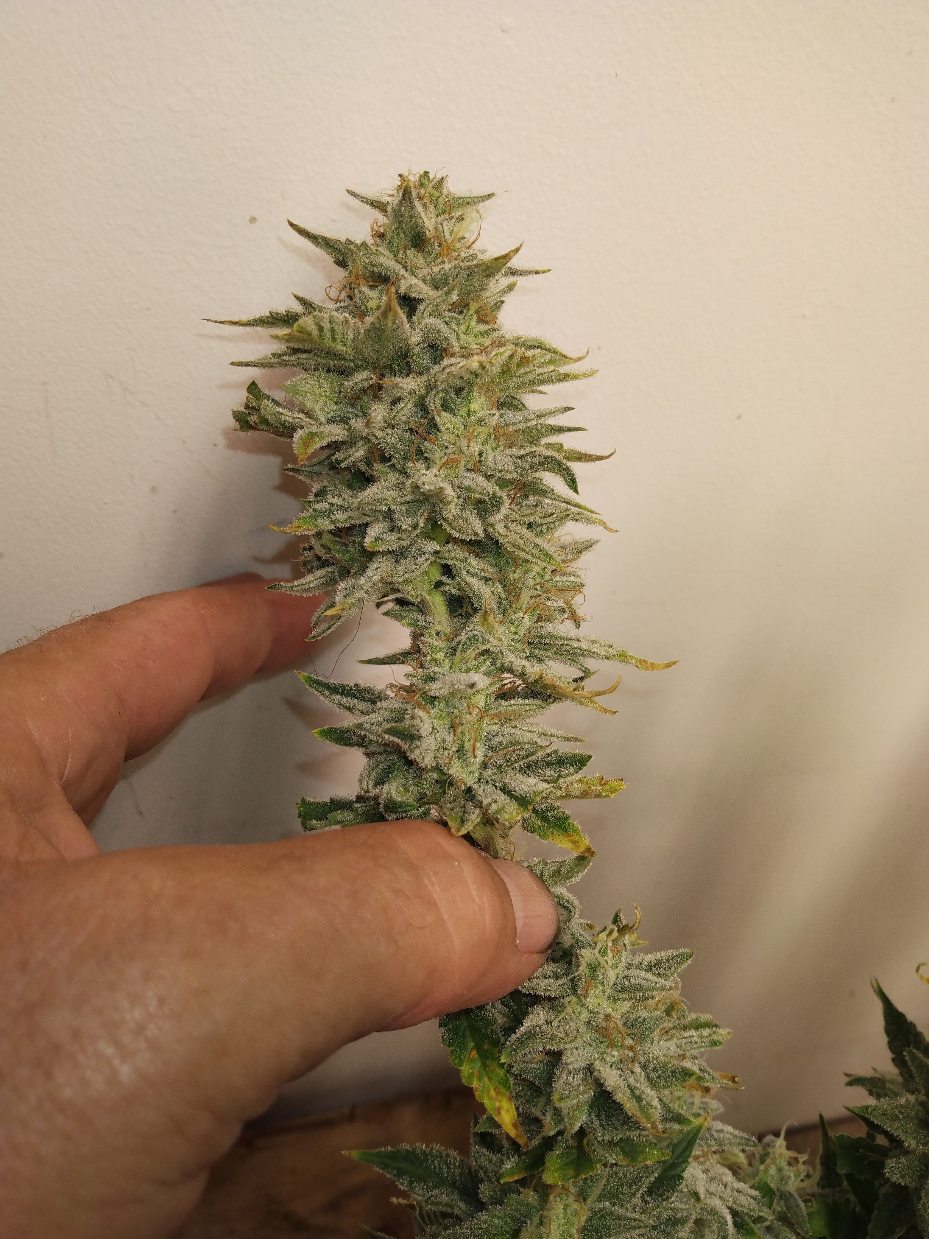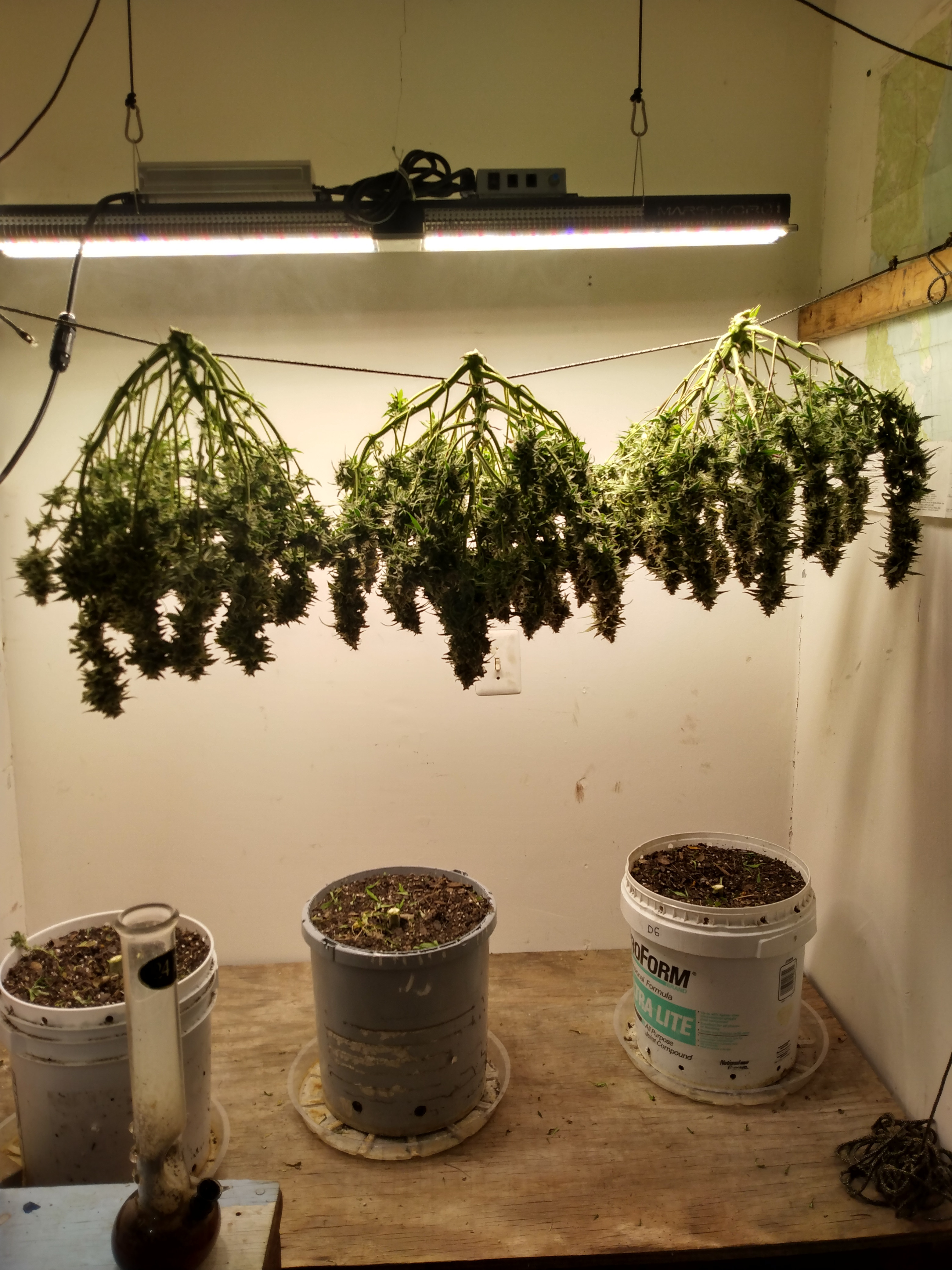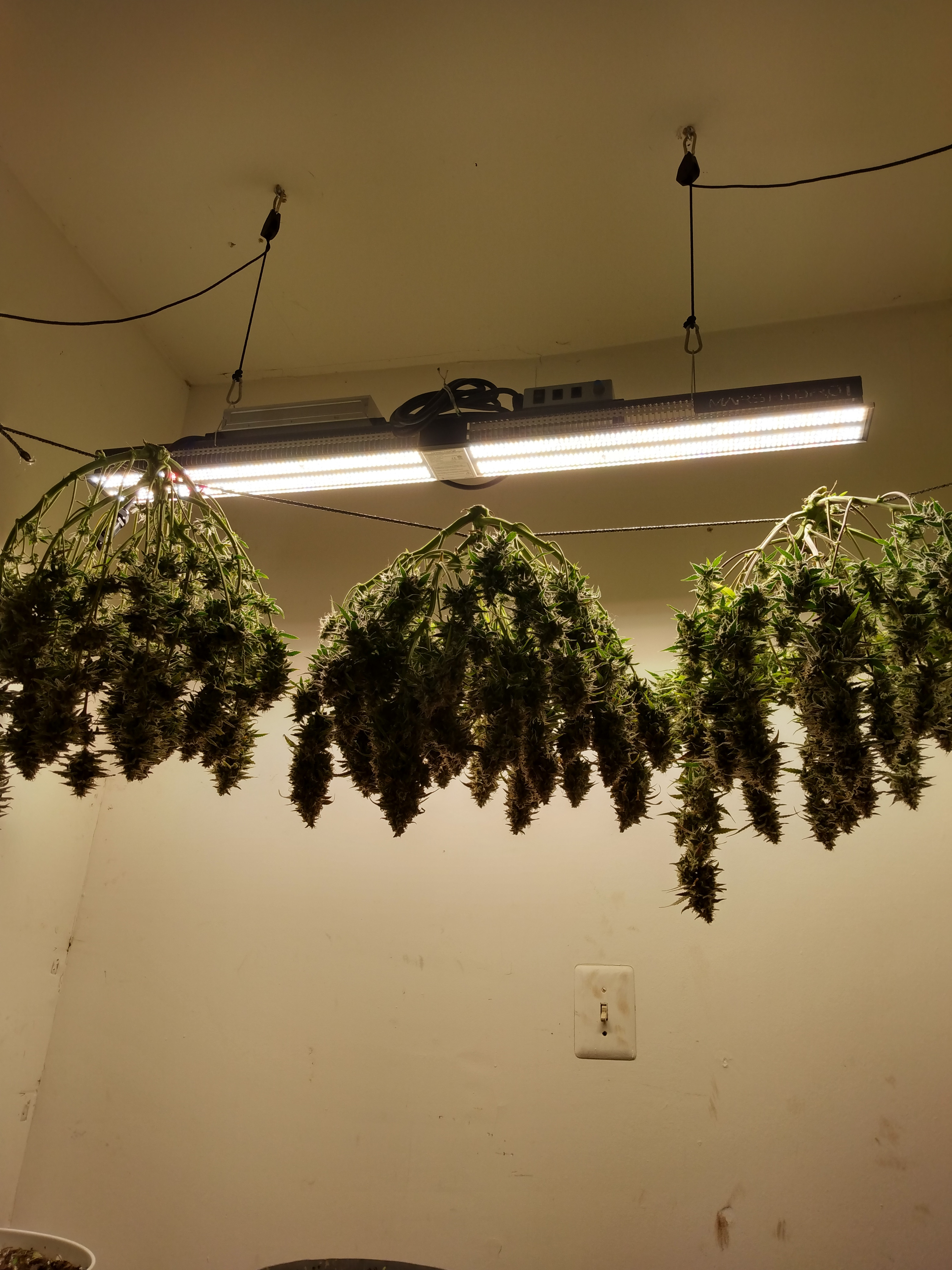 I'll give a final weight as soon as they hit 62% humidity in jars. They will hang whole for two or three days then cut the branches off and into cardboard boxes for a few days. I find it helps slow drying when the humidity is low. Then the sexy trimming aka Brazilian wax.