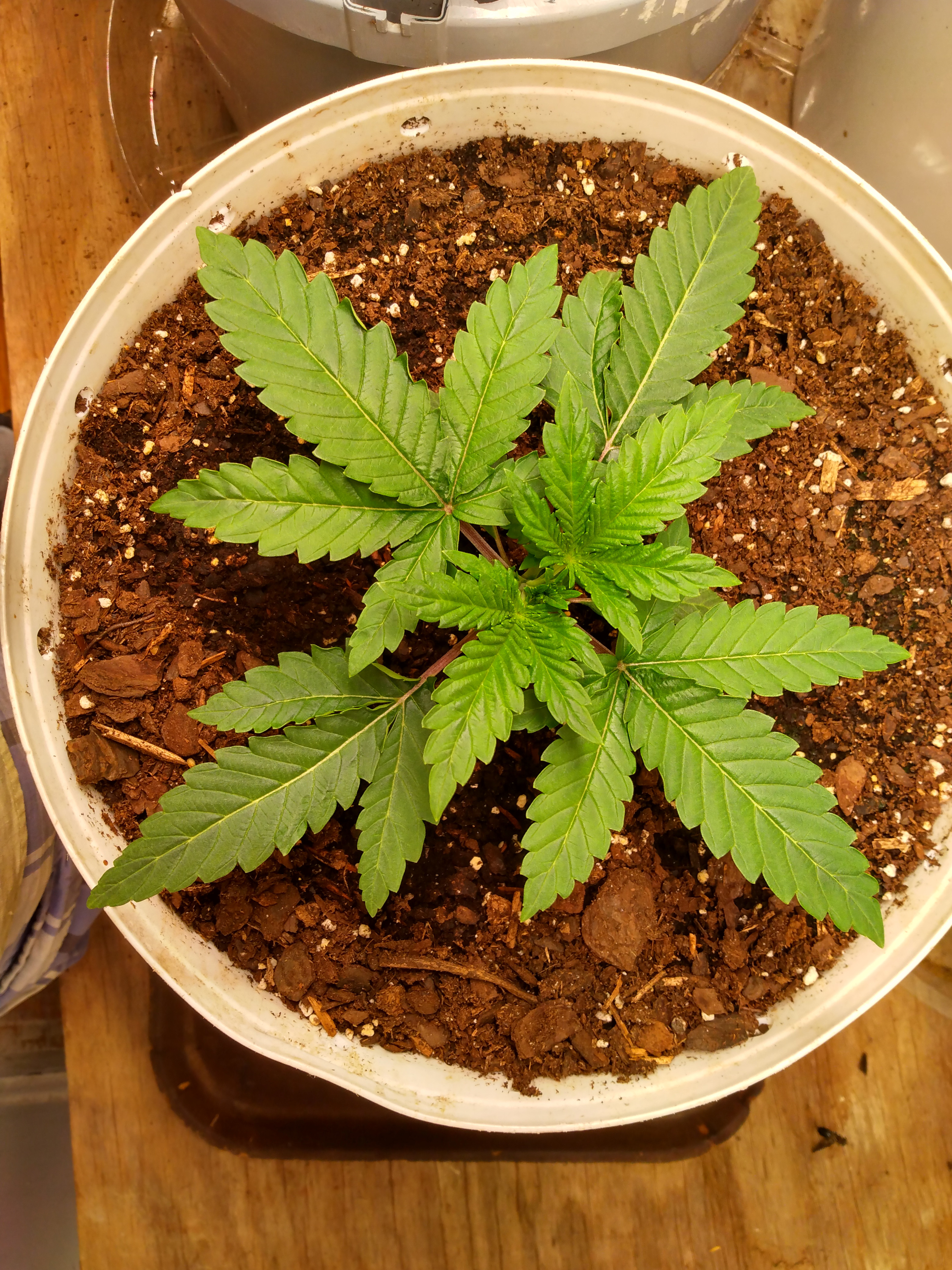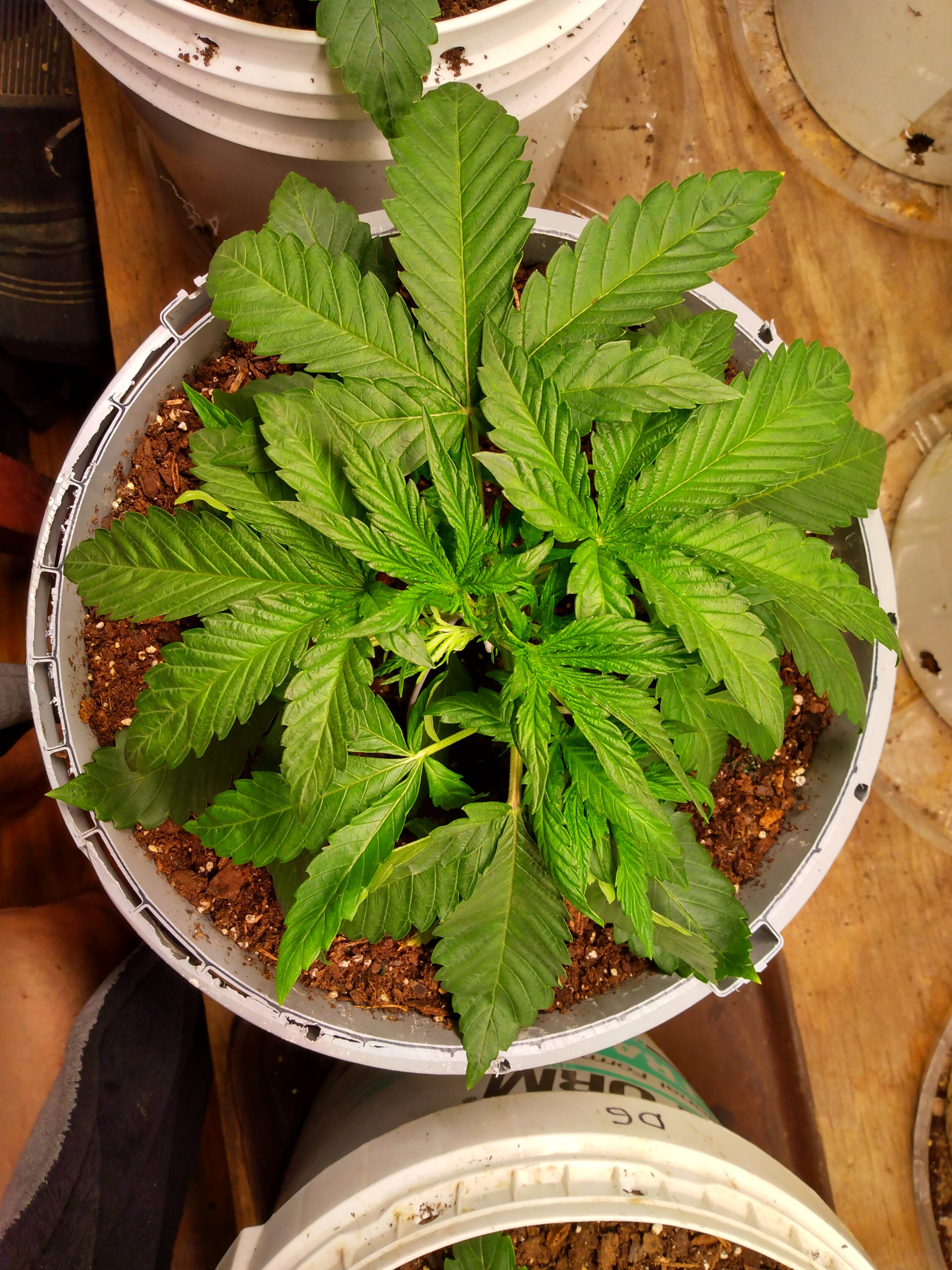 Ok so where was I. Oh yeah my setup. Genetics are Forum Stomper, Sour stomper, and Double Grape. All my beans come from North Atlantic Seeds. Seed pop was on 8/20. I've got the back of a walk in closet as my grow room. Footprint is 3'x5'. I'm running a Mars Hydro SP 3000 on 18-6. AC Infinity 6" fan and carbon filter. Using 4 1/2 gallon buckets. Bottom third wormy compost out of my bin. Top 2/3 Miracle Grow Organics. This is my third auto run with this and it does great thru veg all by itself. My compost carries them thru harvest. I do not use ferts outside of some compost tea if I think is needed . well water is mixed with creek water to a pH of 6 to 6.4. they have not been watered since planting the seed. I saturate the container 3 days before planting the seeds. Will get there first watering and start LST today.