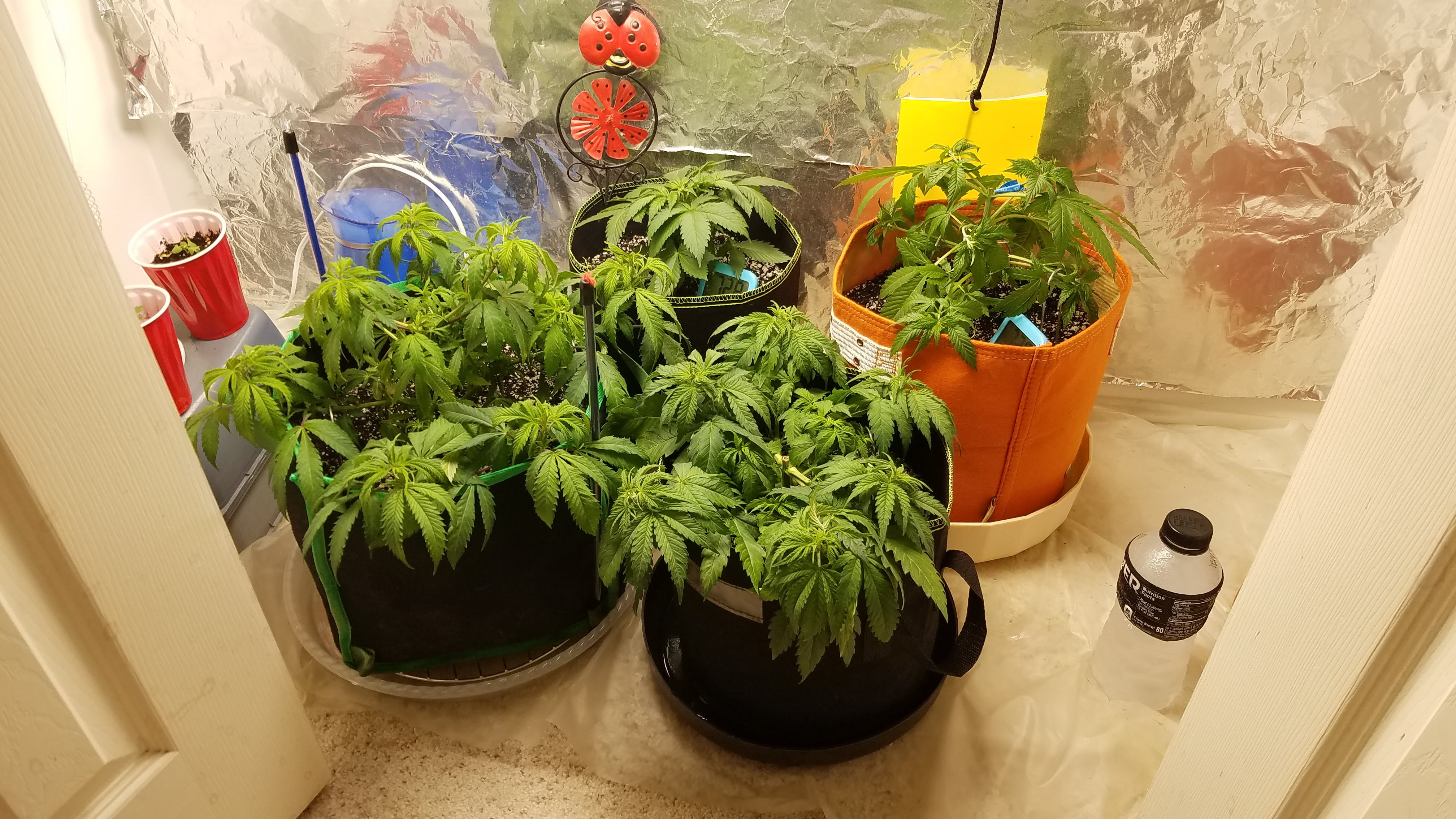 I'm prioritizing getting the training started before cleaning the closet floor, sprinkling DE, putting down new plastic, removing foil on back wall, and tacking up extension cords where they belong.
