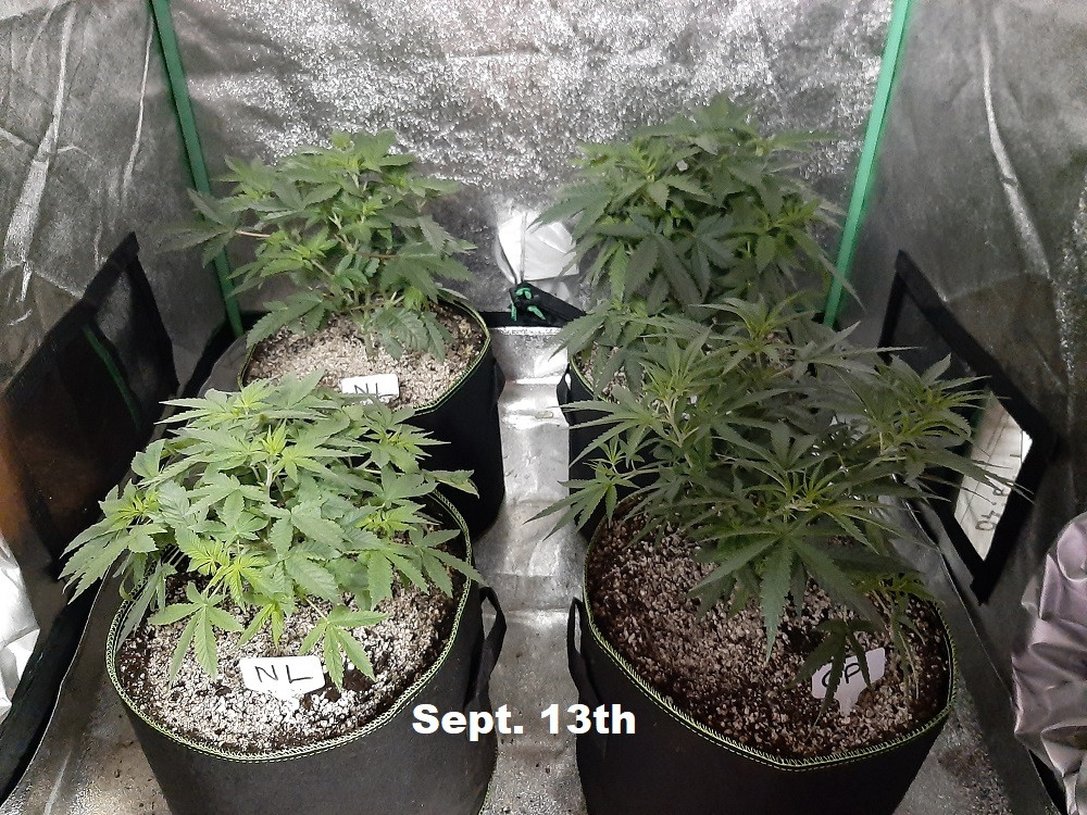 Started from seeds on Aug. 1st. Have been topped 1 time and will top again in a couple of weeks... There are 2 Northern Lights and 2 Grand Daddy Purple...