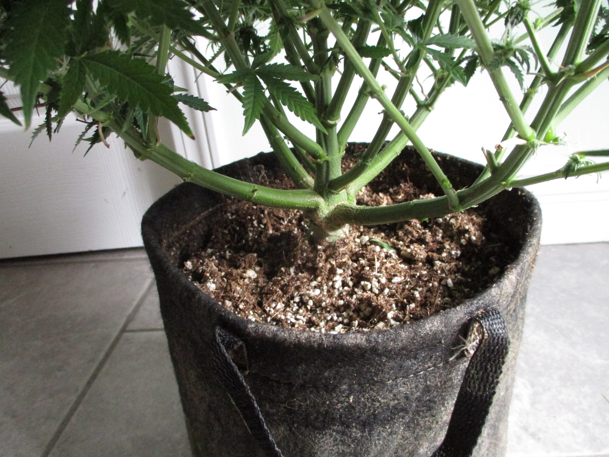 This morning I decided to cut a few fan leaves from the fourth node and upward to expose a few bud sites.