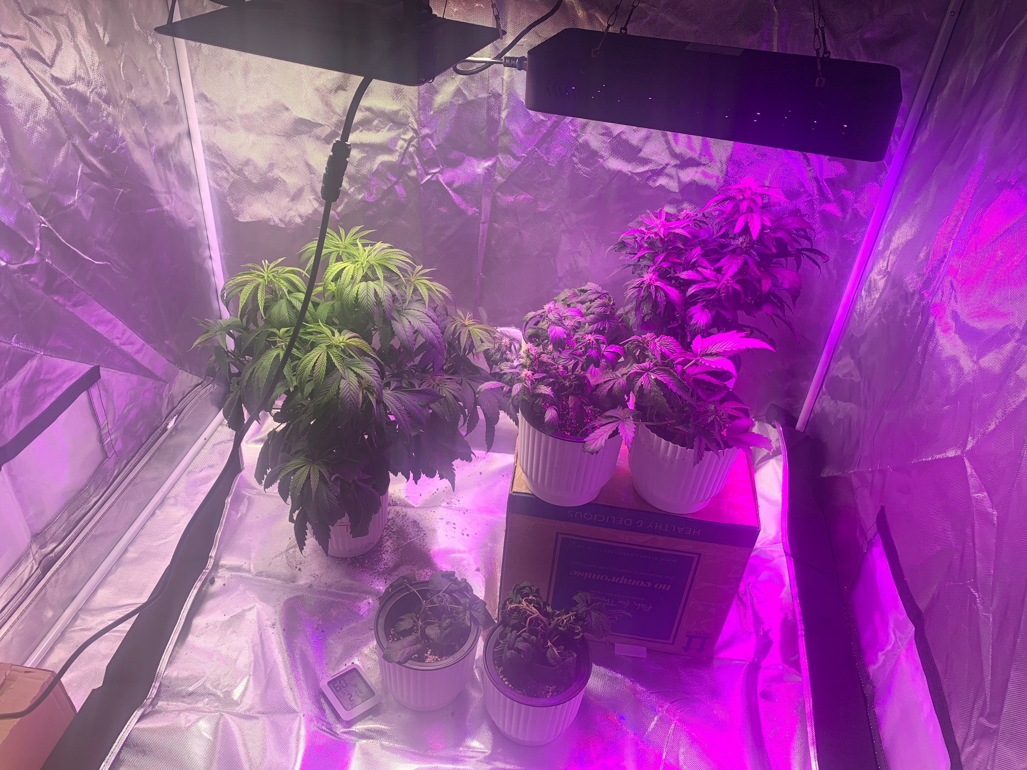 This plant is a different strain (Lemon Haze) and is about 2 months old; it has not grown well and is a similar size to the other two (Both wedding Cheesecake) that were growing well until 2 days ago...