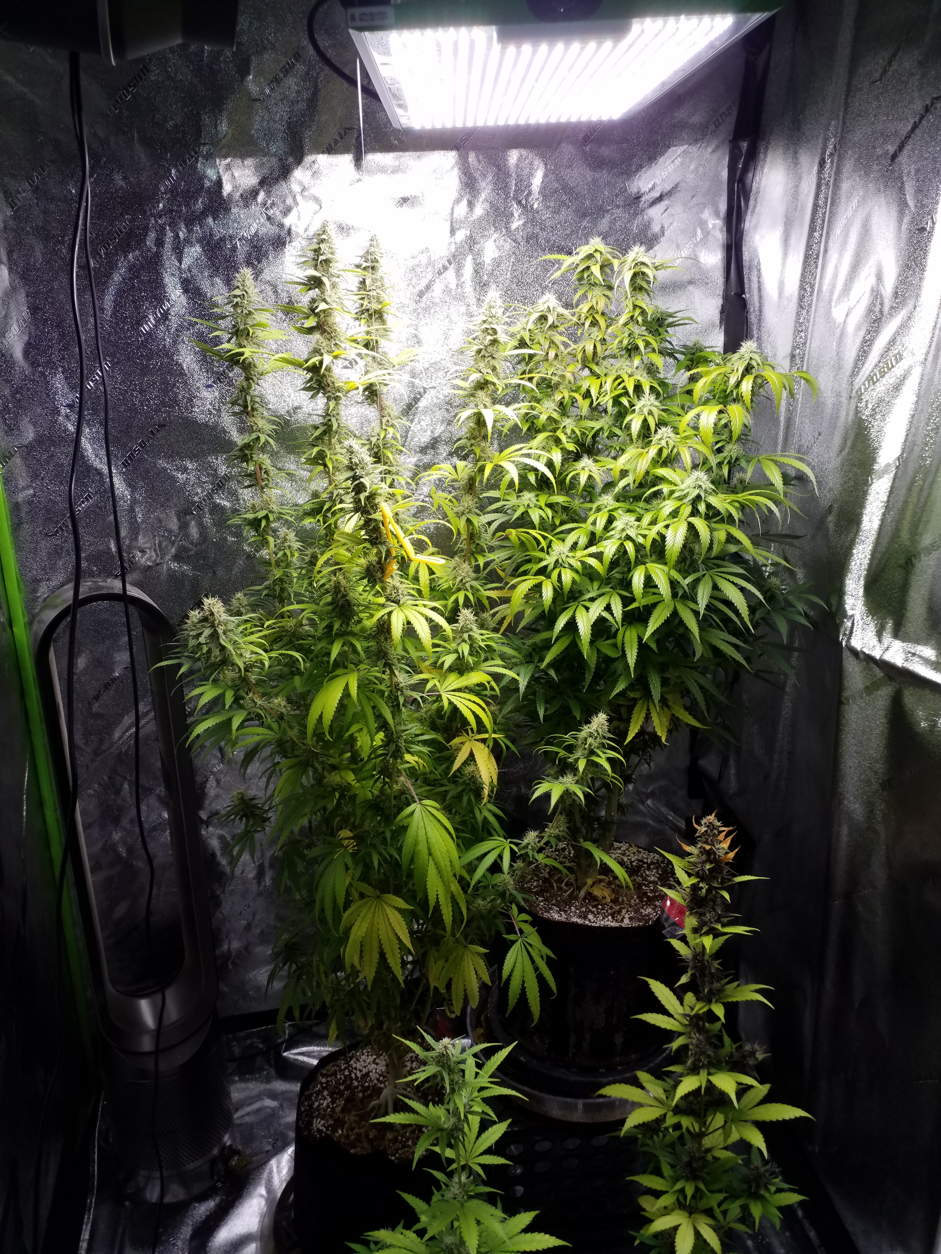 Couple of beauties you got in there. I'm glad you like your light. I assume you'll see some energy savings from switching to LED. What size foot print does it flower and what does it cost? Looks like a pretty sweet light.5x5 Gorilla tent