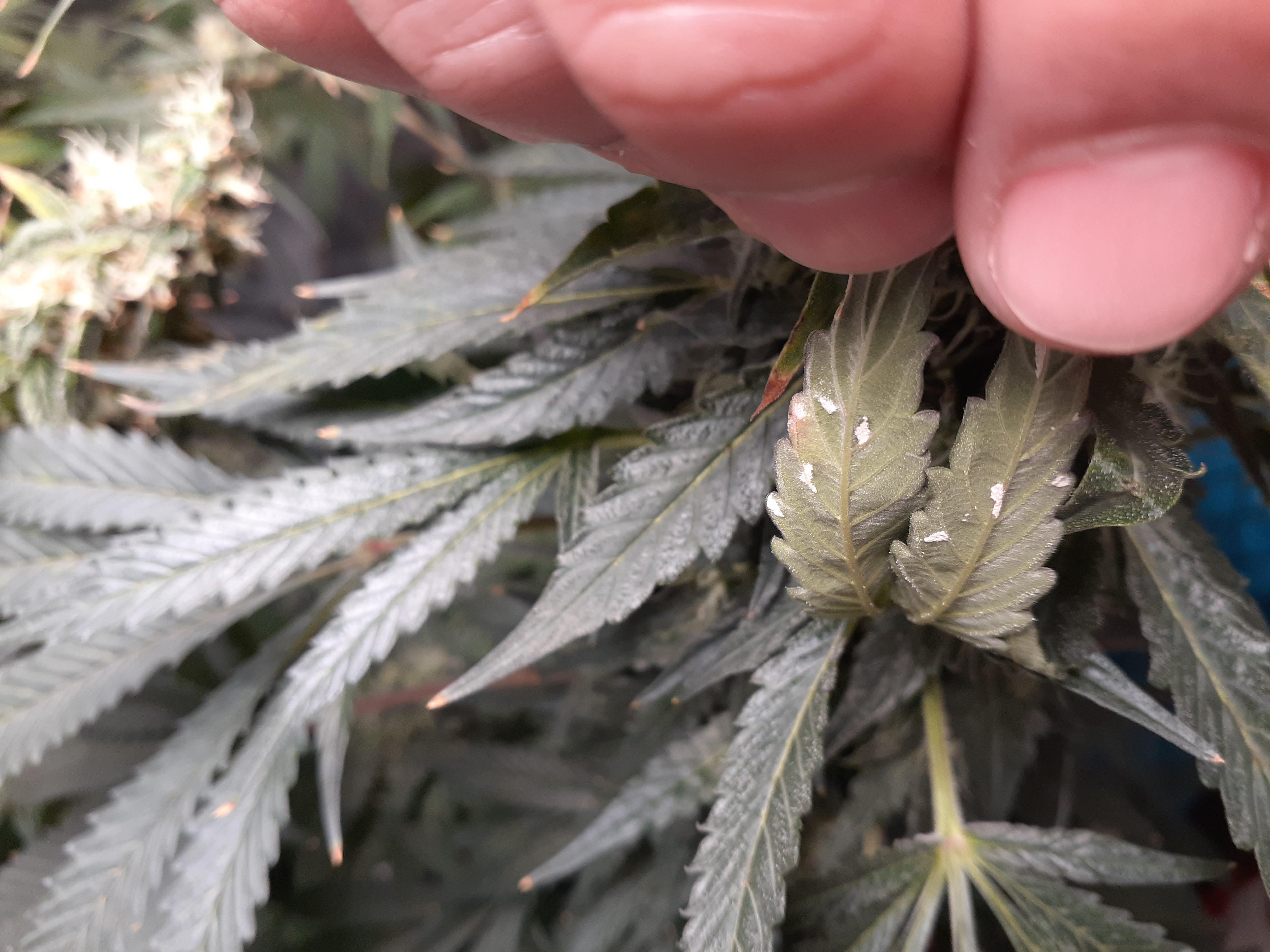 Well guys I come to you again with yet another question dont hate me lol I am mostly just concerned that I might have white powdery mildew starting to take from on one of my ladies! And if so what would be my best way at combatting it? I first noticed just one little spot on the top of that exact fan leaf. However upon further inspection there is a small handful more on the bottom of that same leaf. Nowhere else on the plant have I seen any signs of this. Just this one leaf.