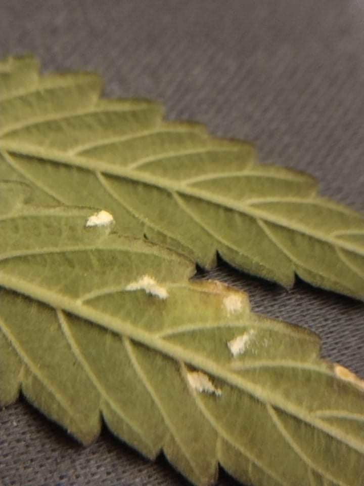 Well guys I come to you again with yet another question dont hate me lol I am mostly just concerned that I might have white powdery mildew starting to take from on one of my ladies! And if so what would be my best way at combatting it? I first noticed just one little spot on the top of that exact fan leaf. However upon further inspection there is a small handful more on the bottom of that same leaf. Nowhere else on the plant have I seen any signs of this. Just this one leaf.