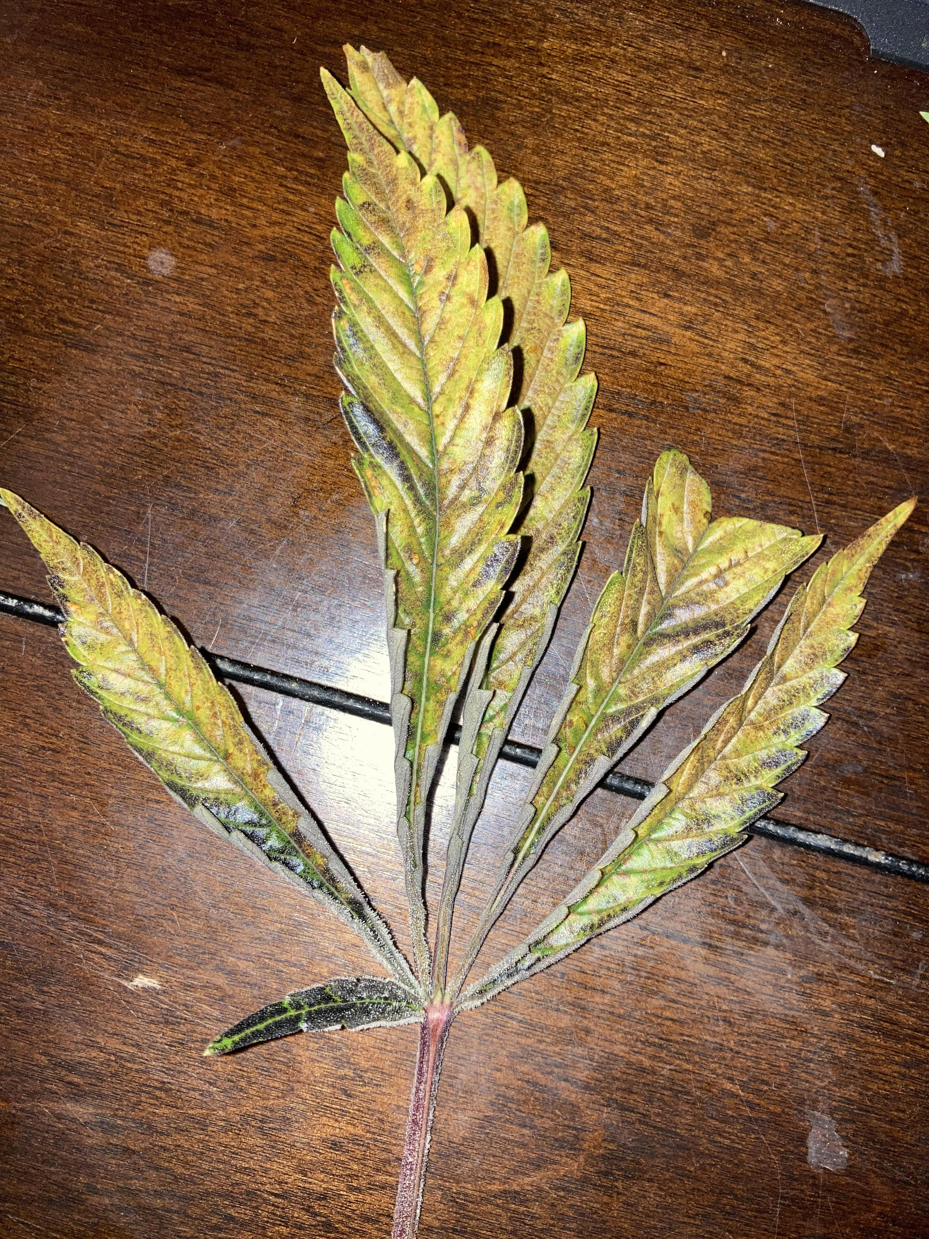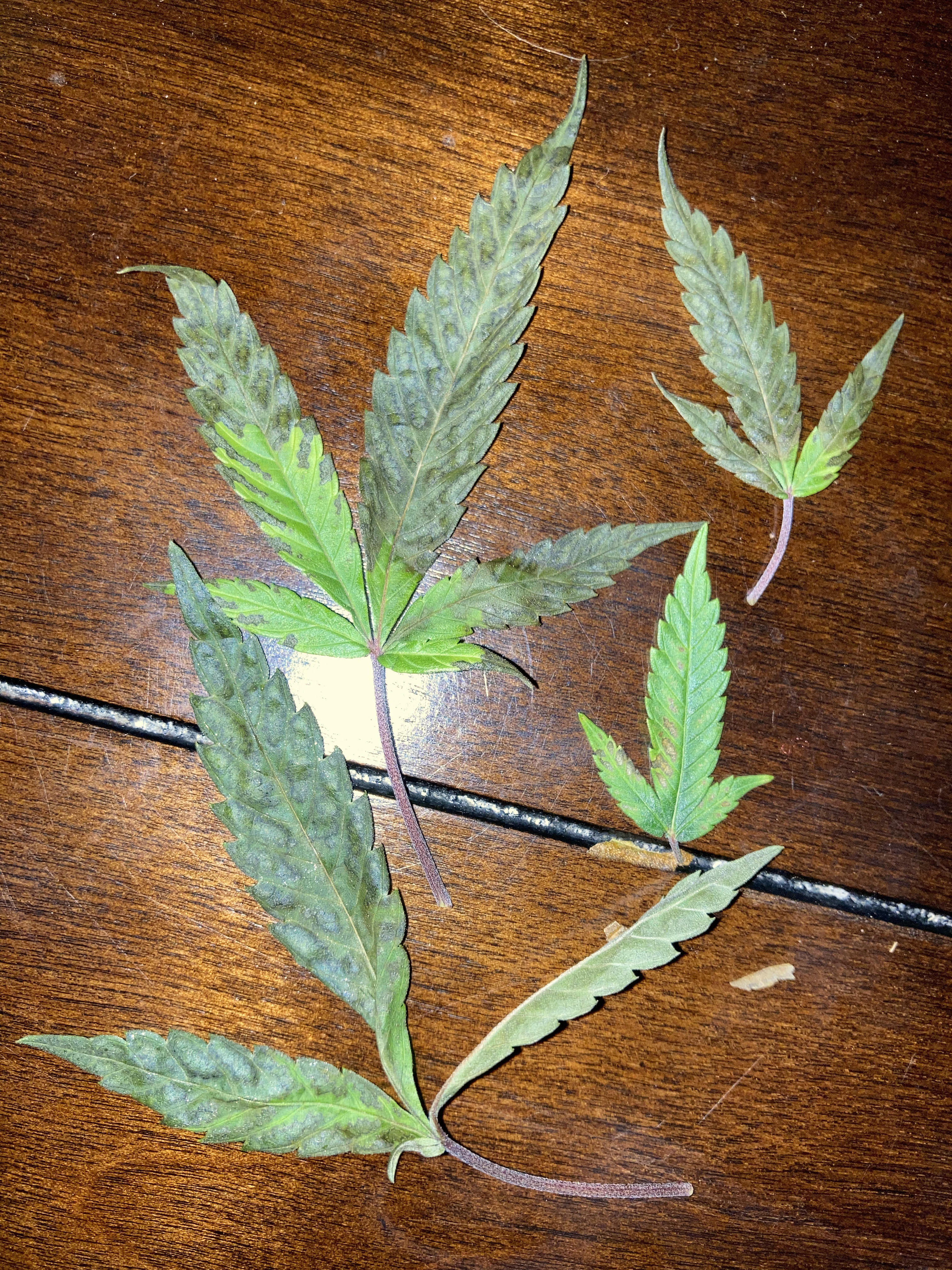 Greetings, I have several plants presenting issues with both fan leaves and younger leaves. The plants are now one week before harvest, but I'd like to pinpoint this issue!