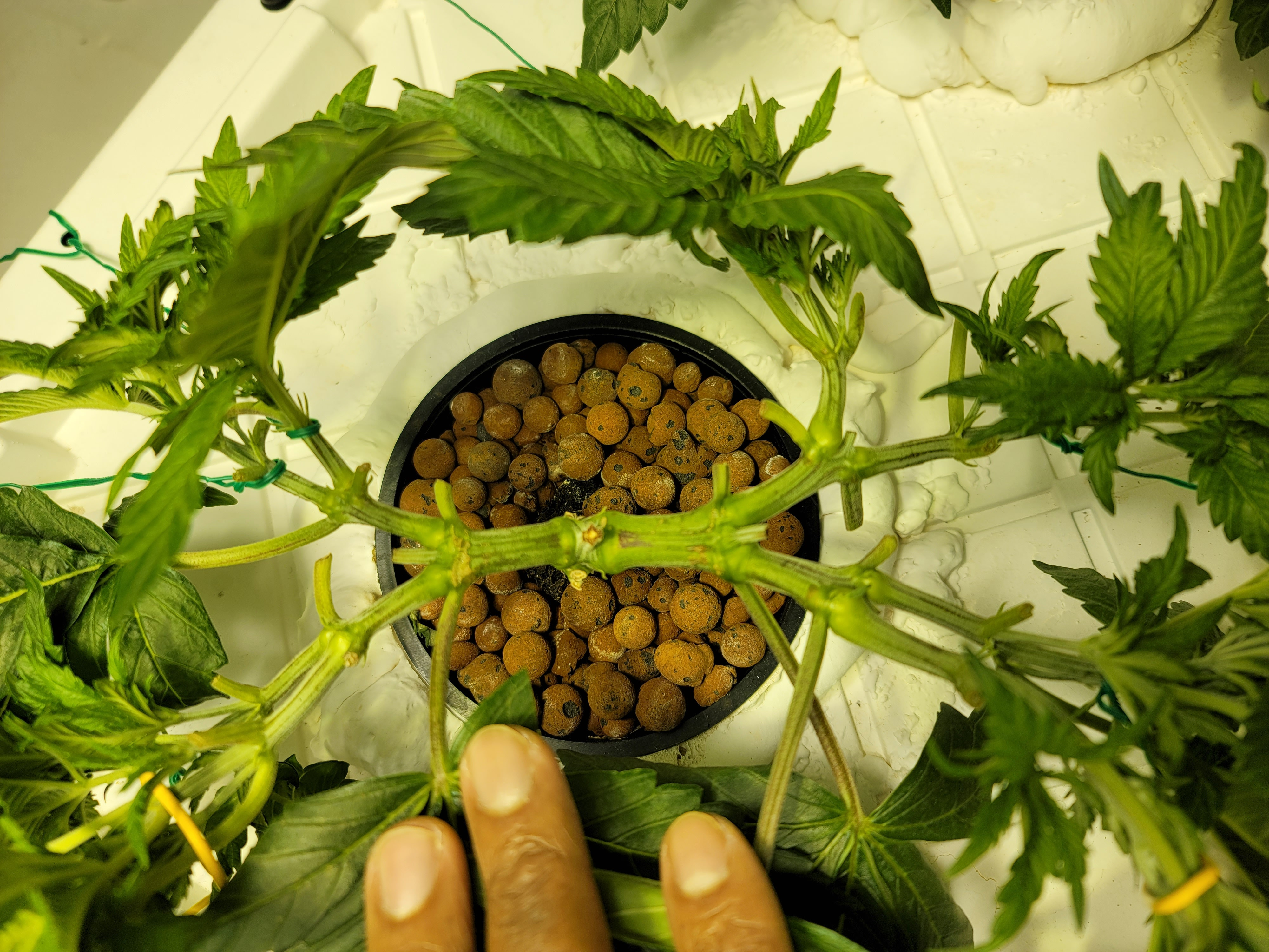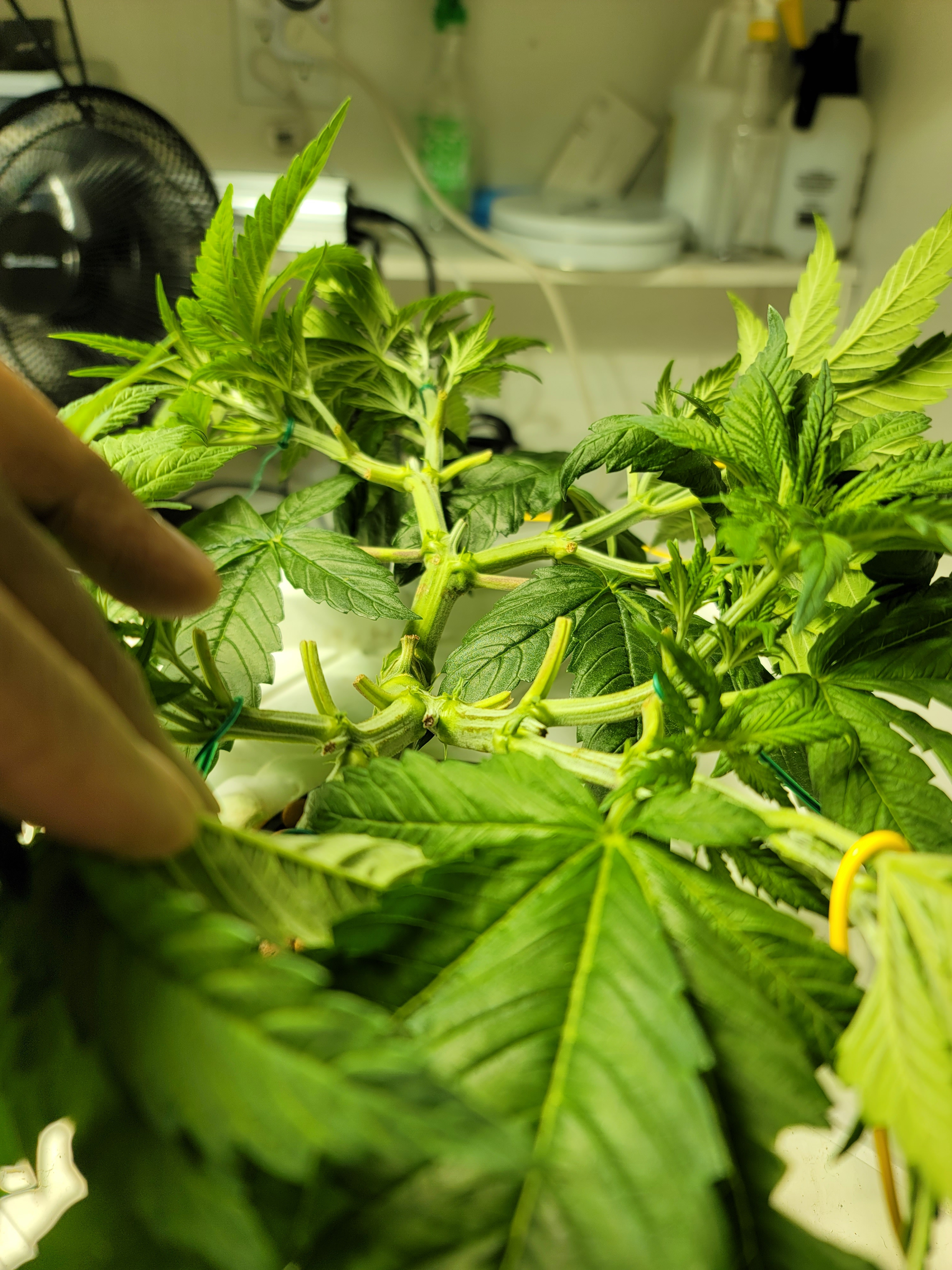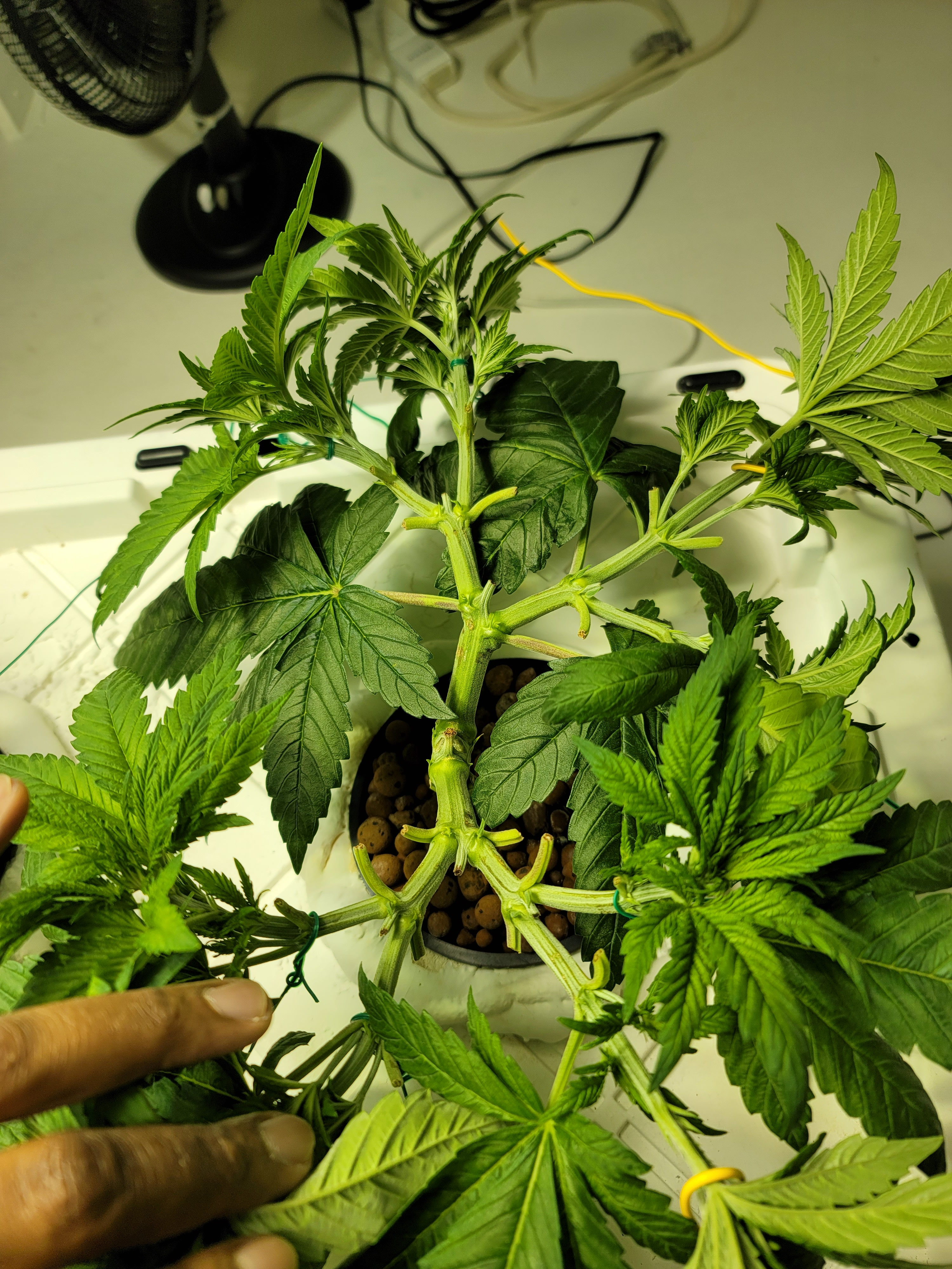 Hey there growing community, I am embarking on my 4th grow. 1st grow 3 plants with a 400watt in coco, 2nd grow 9 plants with a 600 watt in coco, 3rd grow DWC( bubbleponics) 2 in a 17 gallon tote spider farmer 2000. My 4th grow is DWC using a 600 watt, 2 plants in a 17 gallon tote( Gordo Master kush and Blue dream, I topped each plant 3 times so each will have 8 tops. I saved 2 clones( 1 Gordo Master kush, 1 blue dream) and put them in 1 gallon pots( I fimm'ed both of them). I'm doing a side by side grow bc I believe the potency of the ganja grown in coco is superior to that of DWC. I just flattened out my canopy, 5 days before I switch them to flower. By no means an I am expert but I pick up on things quickly and growing has quickly become something I love and advocate to anyone who will listen. How do they look?