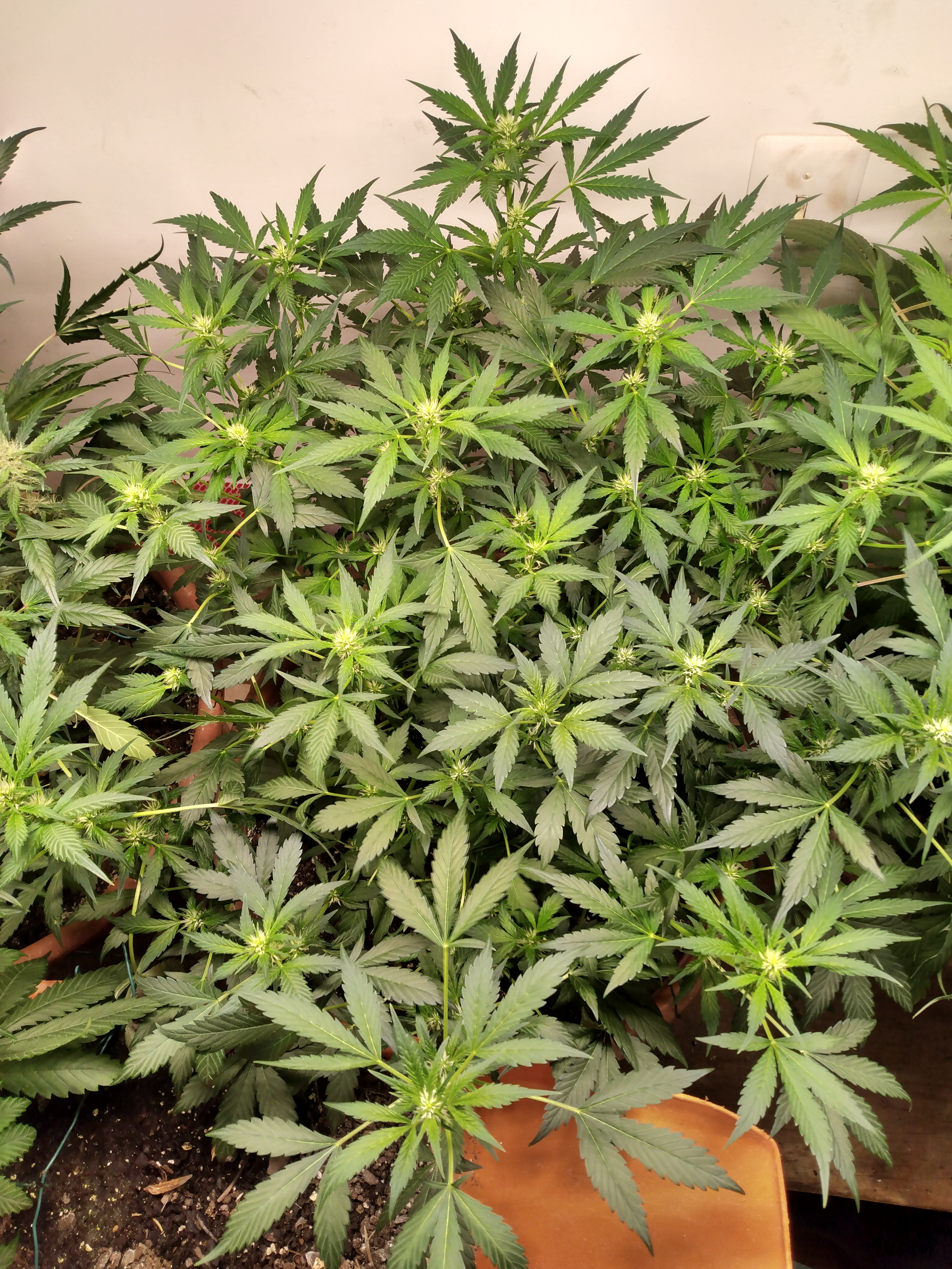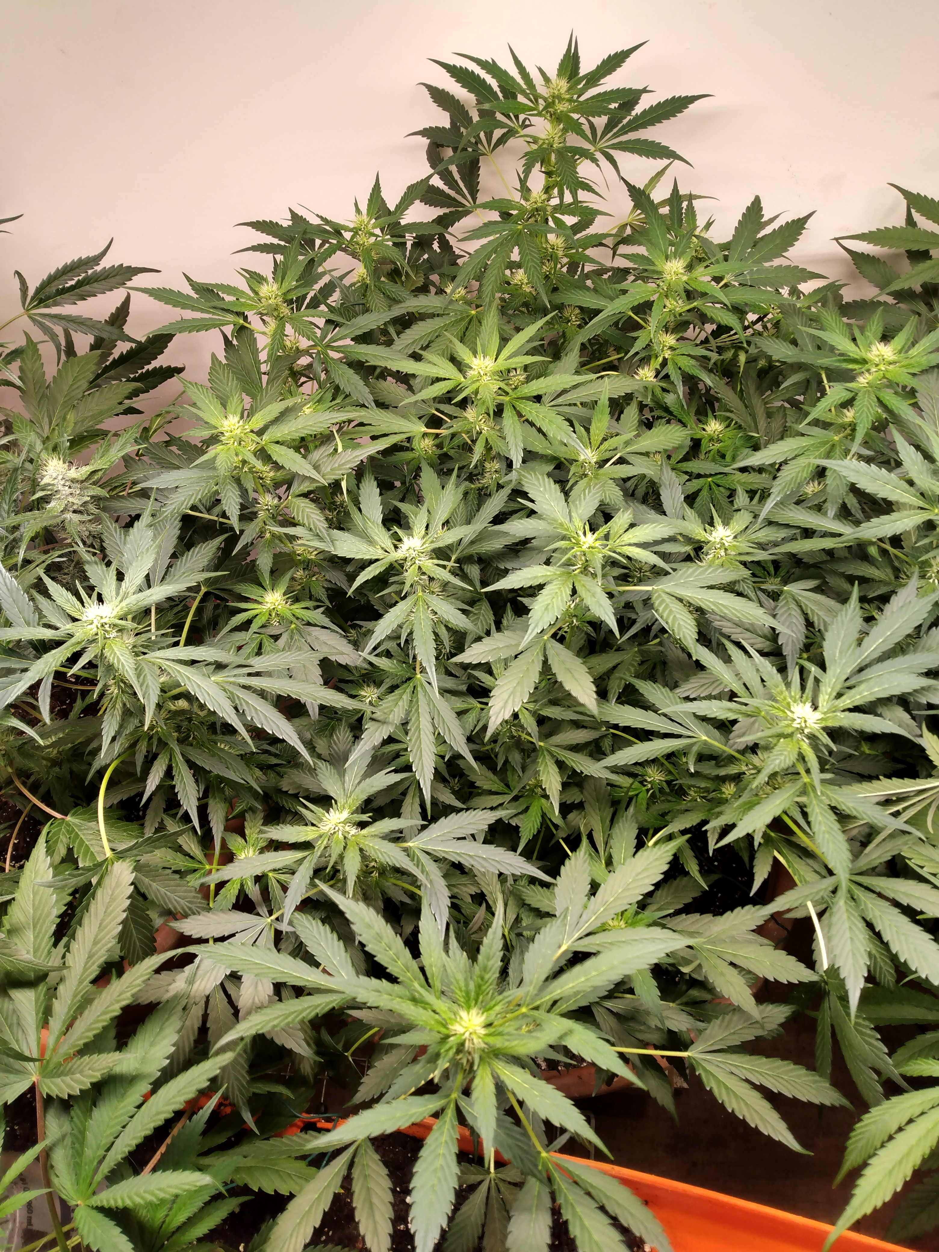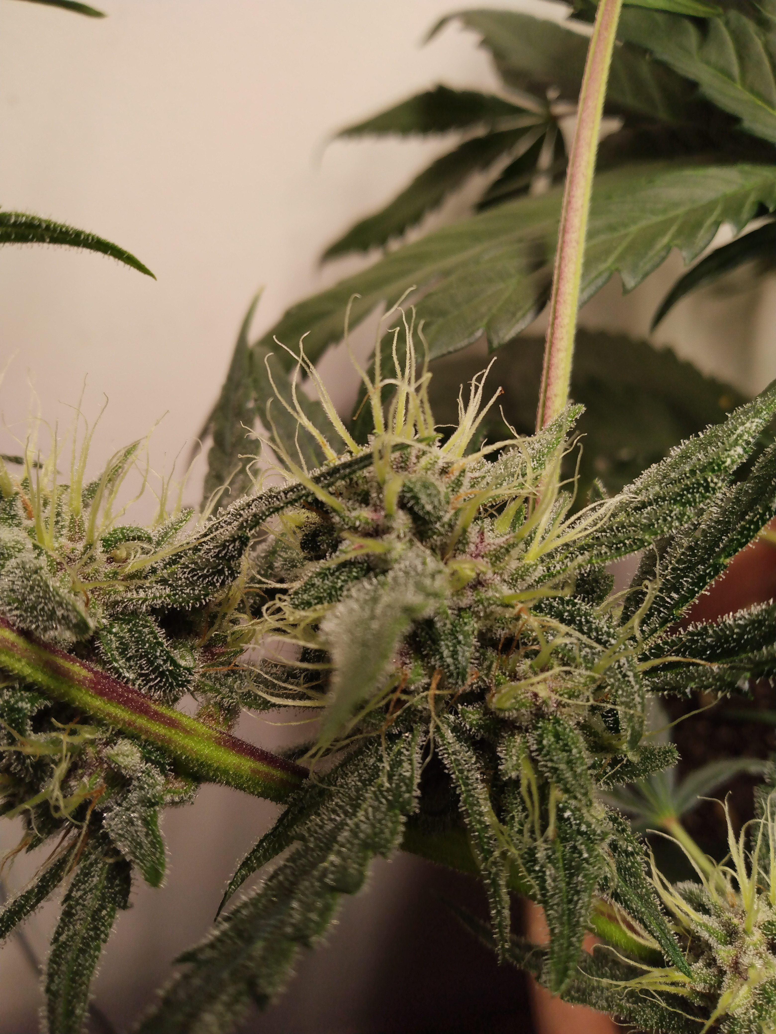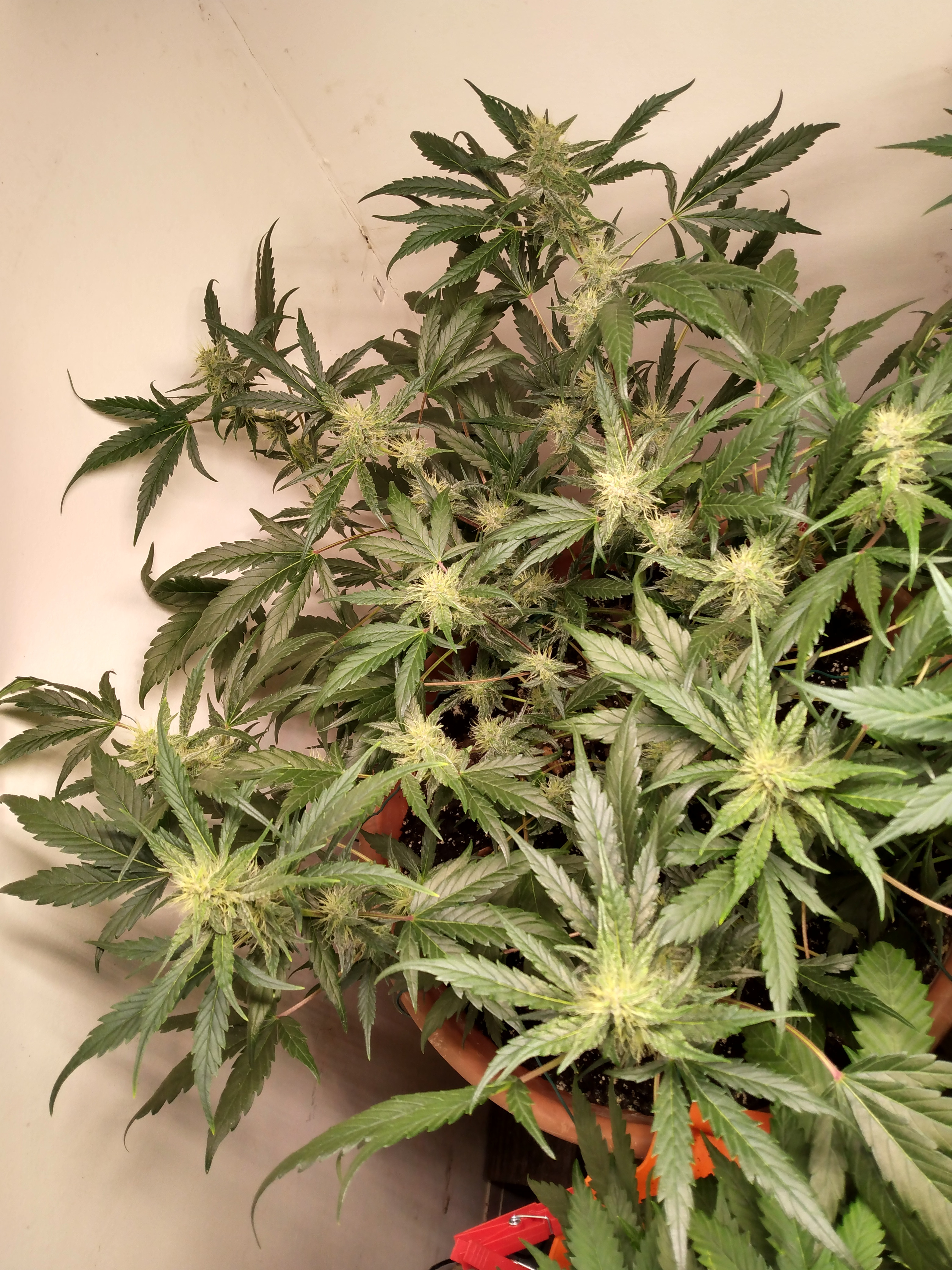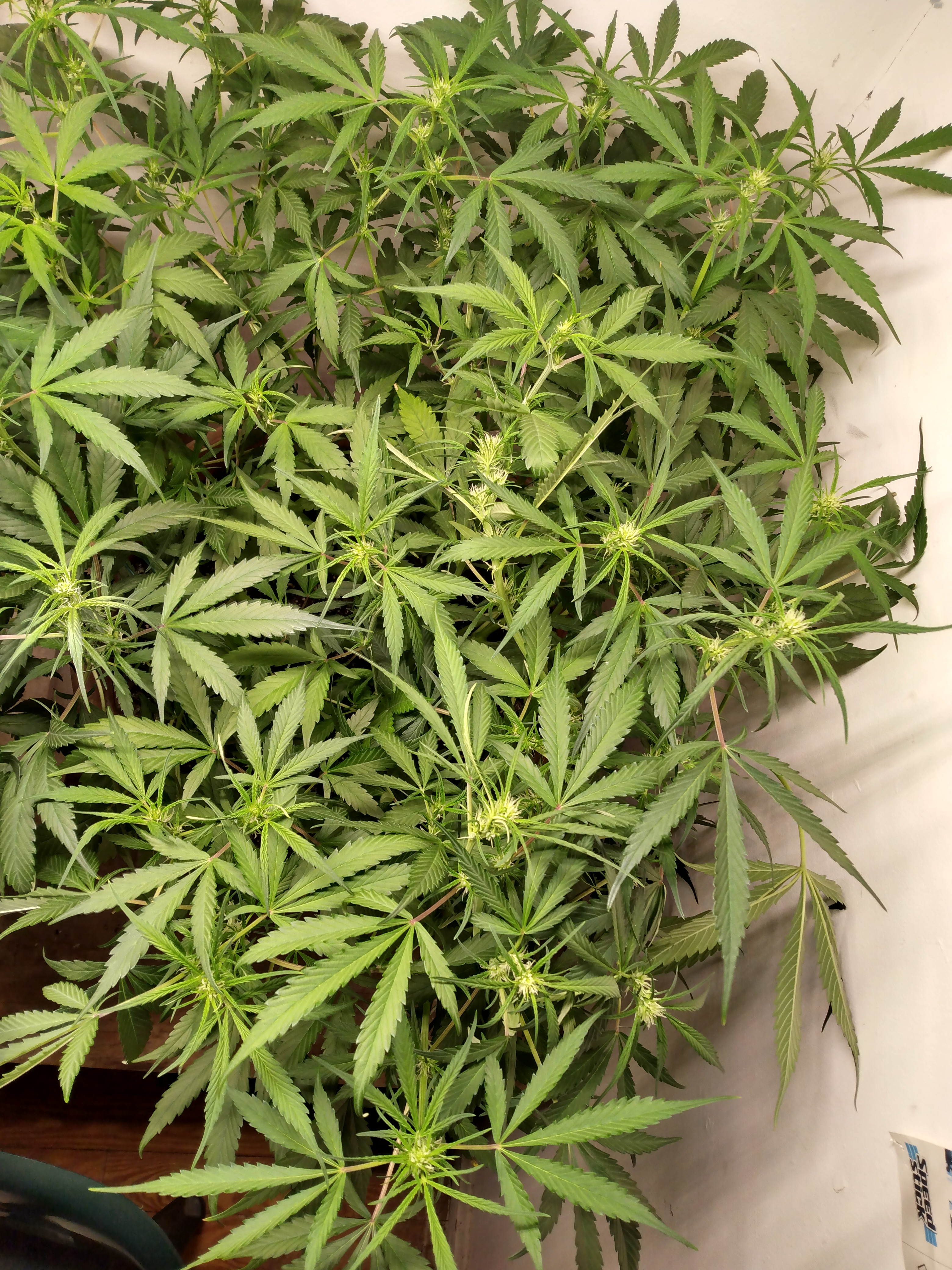 Mango is 24" wide now. Going to be a handful but I'm keeping her tied down as best I can. Trizzlers is giving me hella bud sites.(anyone born before 1980 will get that one). She still looks to be pushing the indica trait. Nice dark green and tight nodes. Getting there second drink tonight.