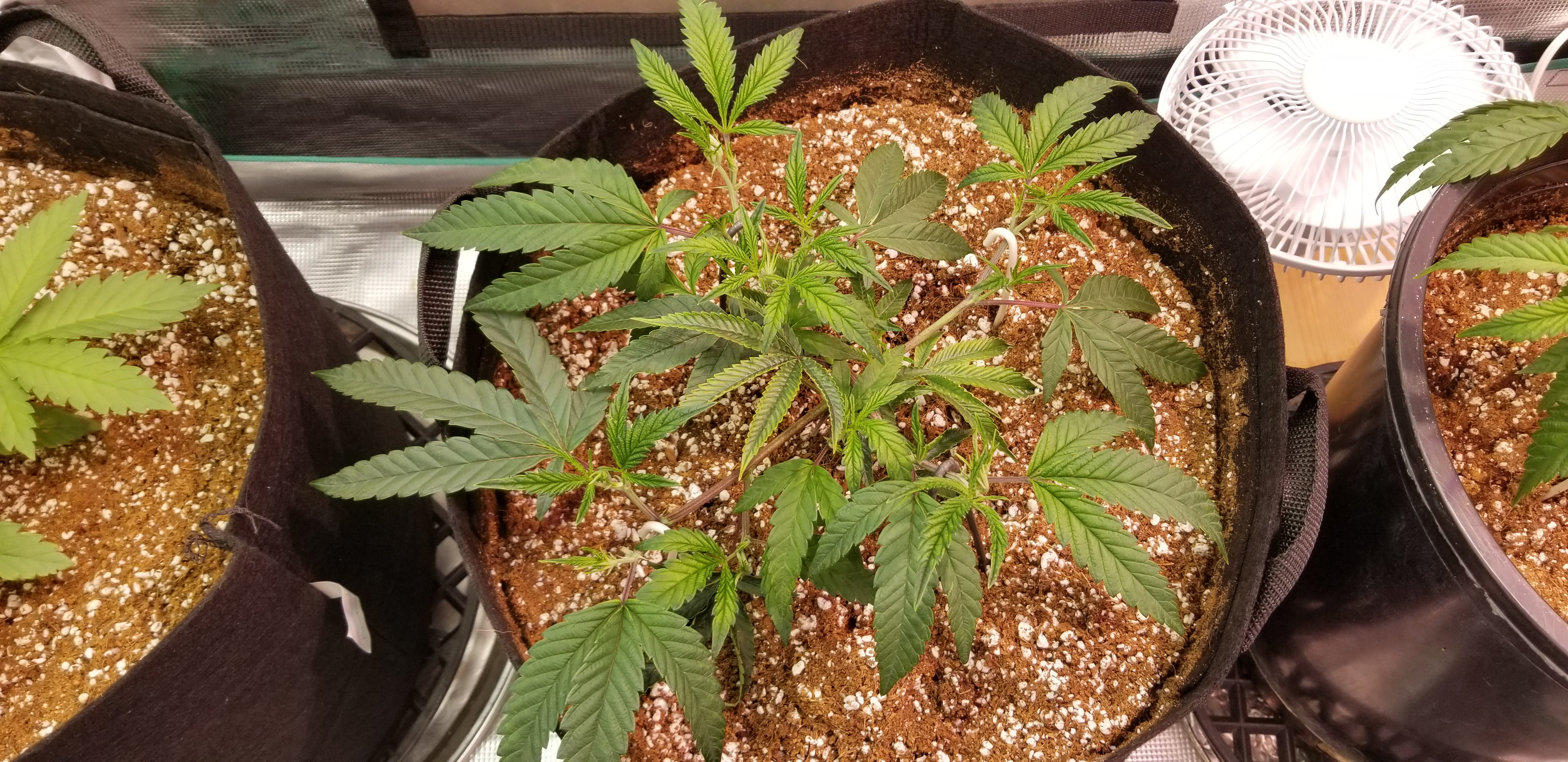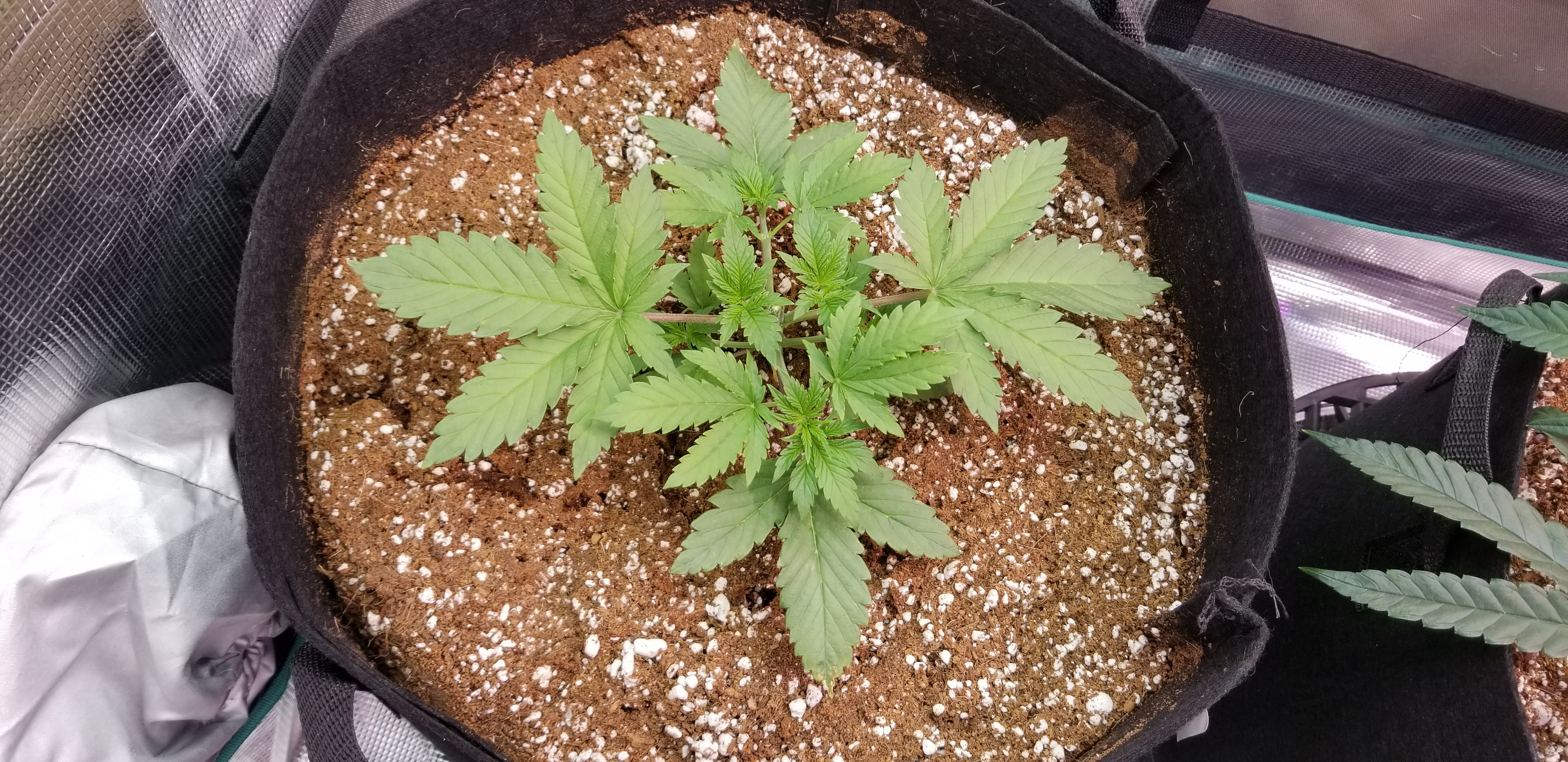 Growing in 70/30 coco/perlite in 7 gal fabric pots using Remo Nutes. Hand watering.