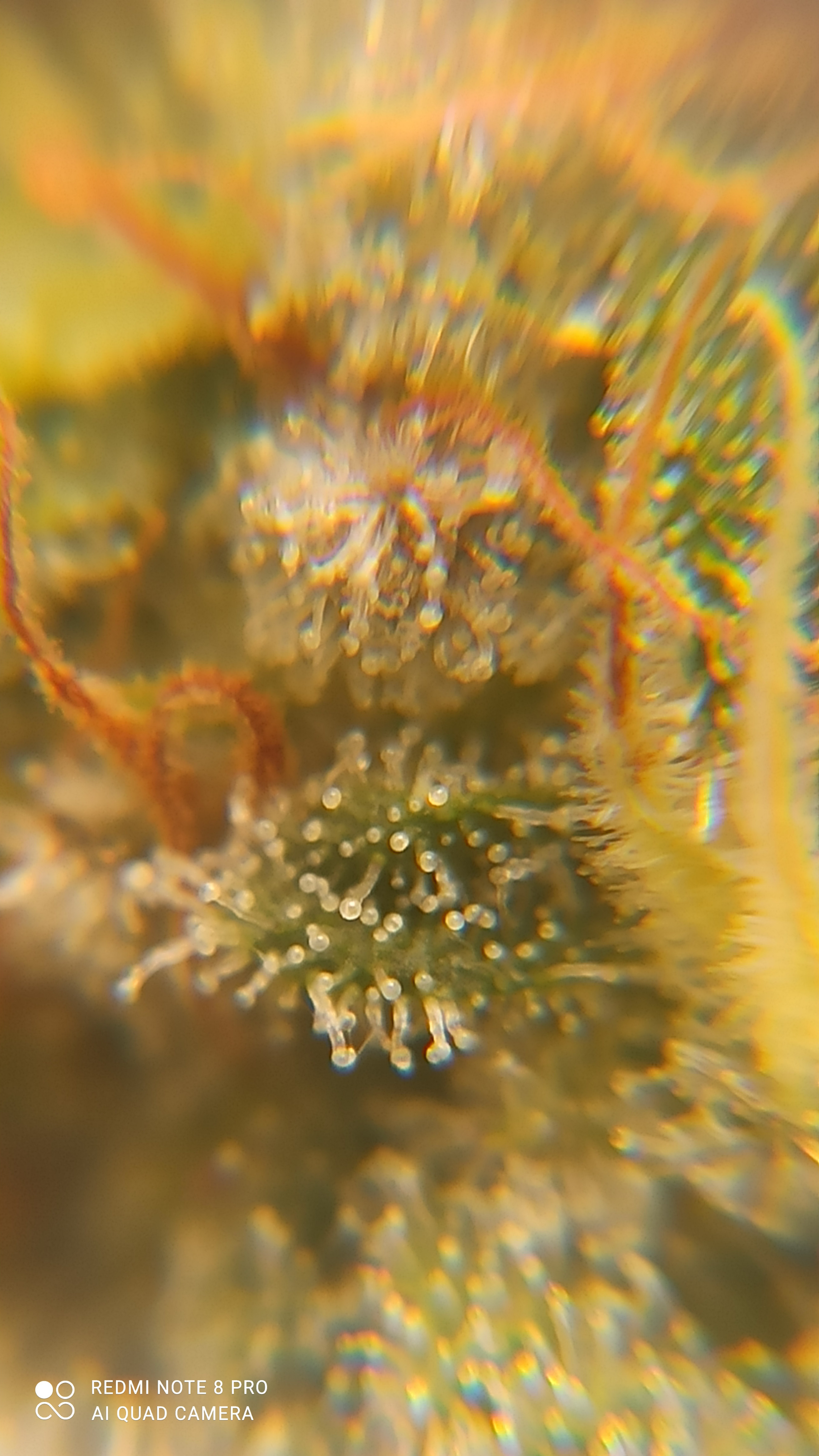 1) Mobbydick photoperiod day 41 of flowering (since switched to 12-12) trichomes are mostly cloudy an some amber as you can see in the fotos but its a bit early for harvest . Theseed companie says flowering about 65-70 days and also the buds havent fatten up yet just finished getting taller. Tell me your opinion