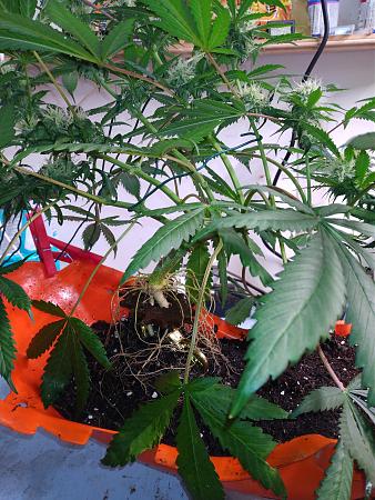 I think we are at about day 56ish on the tortured soul. Been a little aggressive on her lately but her buds have continued to fatten up. She's showing some fan leaf fade. I'm amazed she made it this far. I think I'm going to let her ride and keep with water only. She smells fruity. I was expecting more of a chem smell from the cdlc back cross. Not complaining.keeping it green with the soil thing