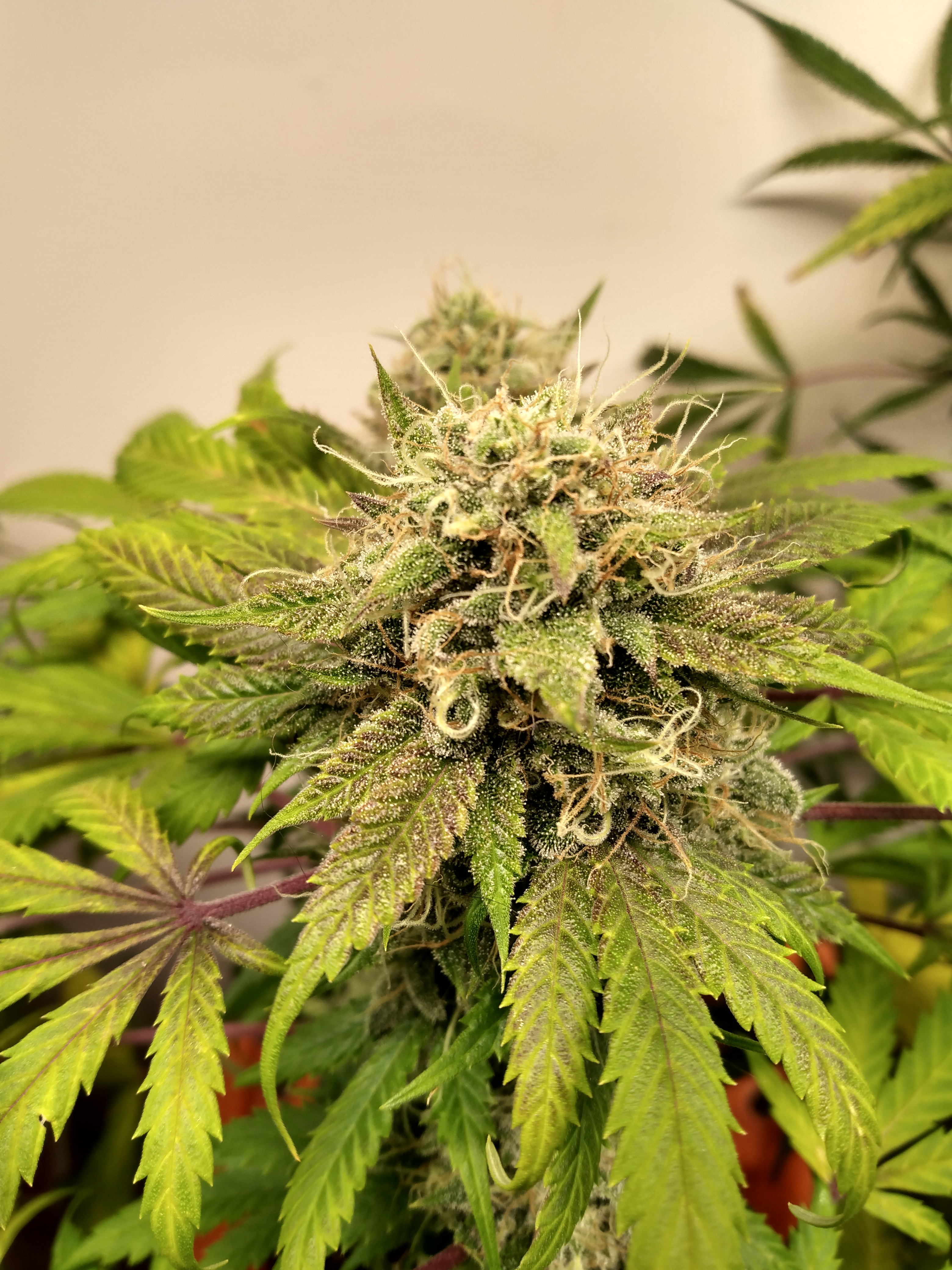 Happy Friday heathens. Where are we at? Day 63 I think. Braapzai is getting heavy. Had to give her some extra support. She's leaning a little from the weight of the buds. They won't stop fattening up but the fade is on so she's nearing the end. Have to water her twice a day but she slowed down on the drinking the past two days. Starting to get a sour smell to the sweet skunk but not too loud.keeping it green with the soil thing