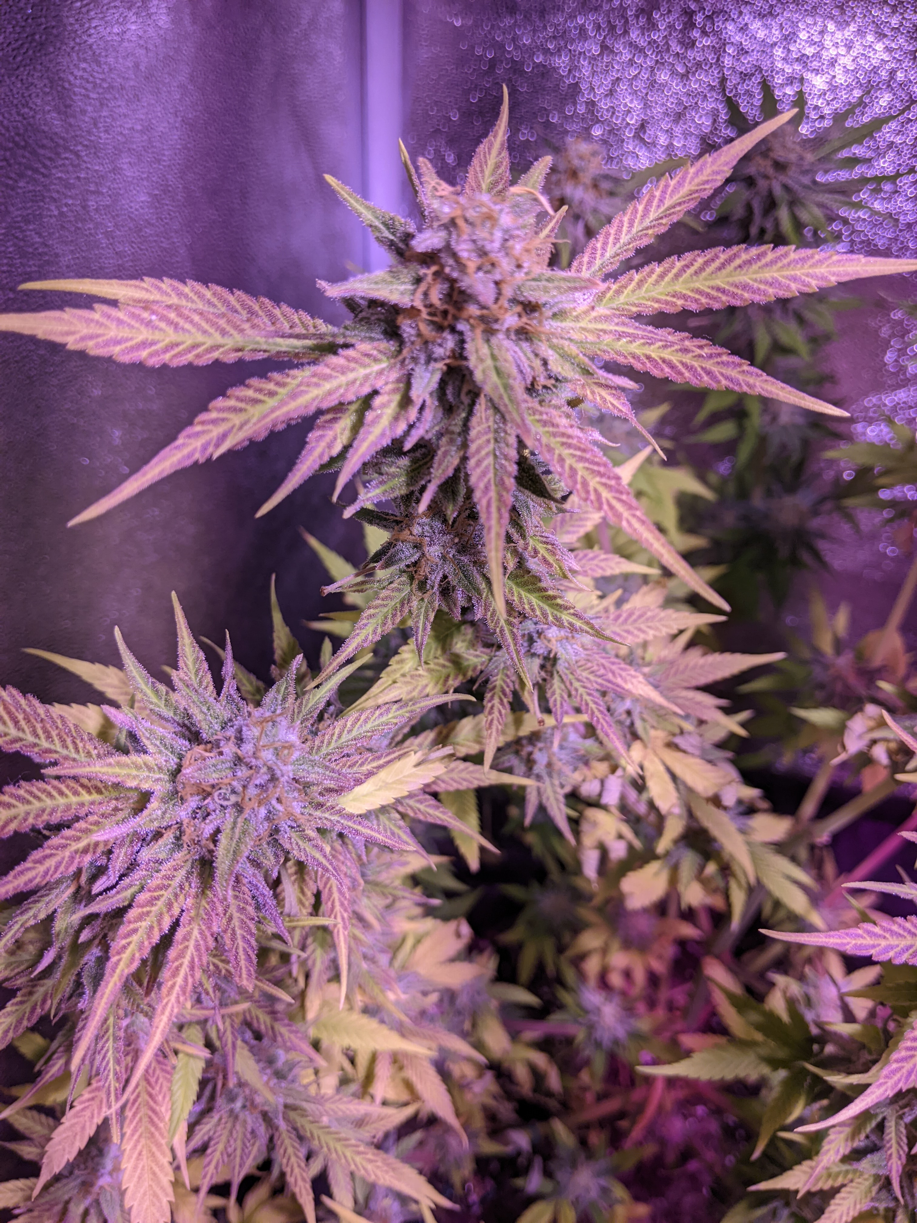 I am at a loss to figure out this issue. Late in their life cycle, some of my plants are turning lime green all over and then yellow. This is not bottom to top but the whole plant. Some of the leaves are developing a purple "barred" appearance. This has developed on two different strains. The trichomes are mostly milky with some clear and no amber. I had to harvest one plant, a gorilla glue auto as all the leaves were yellow and I was afraid to wait any longer.