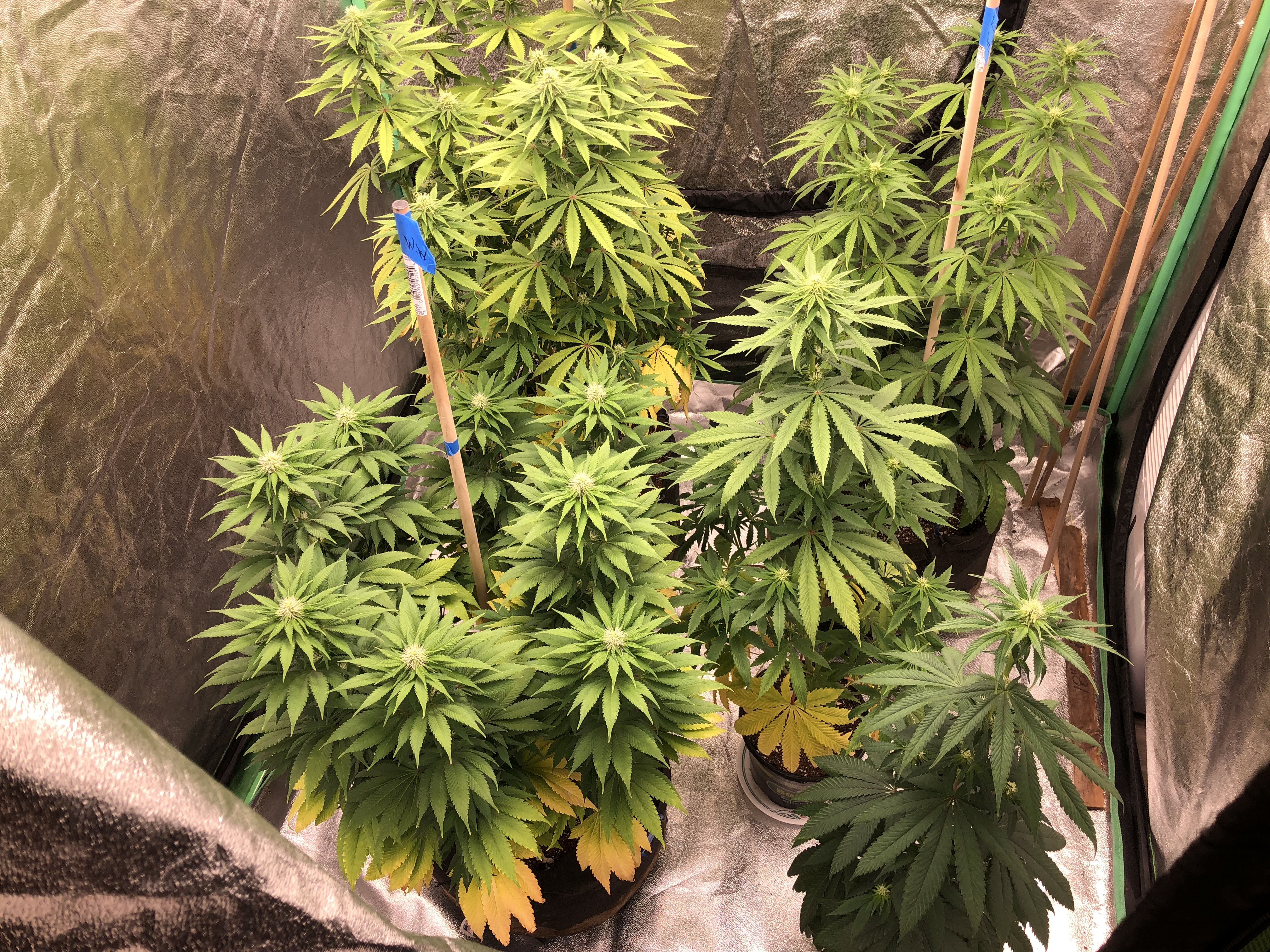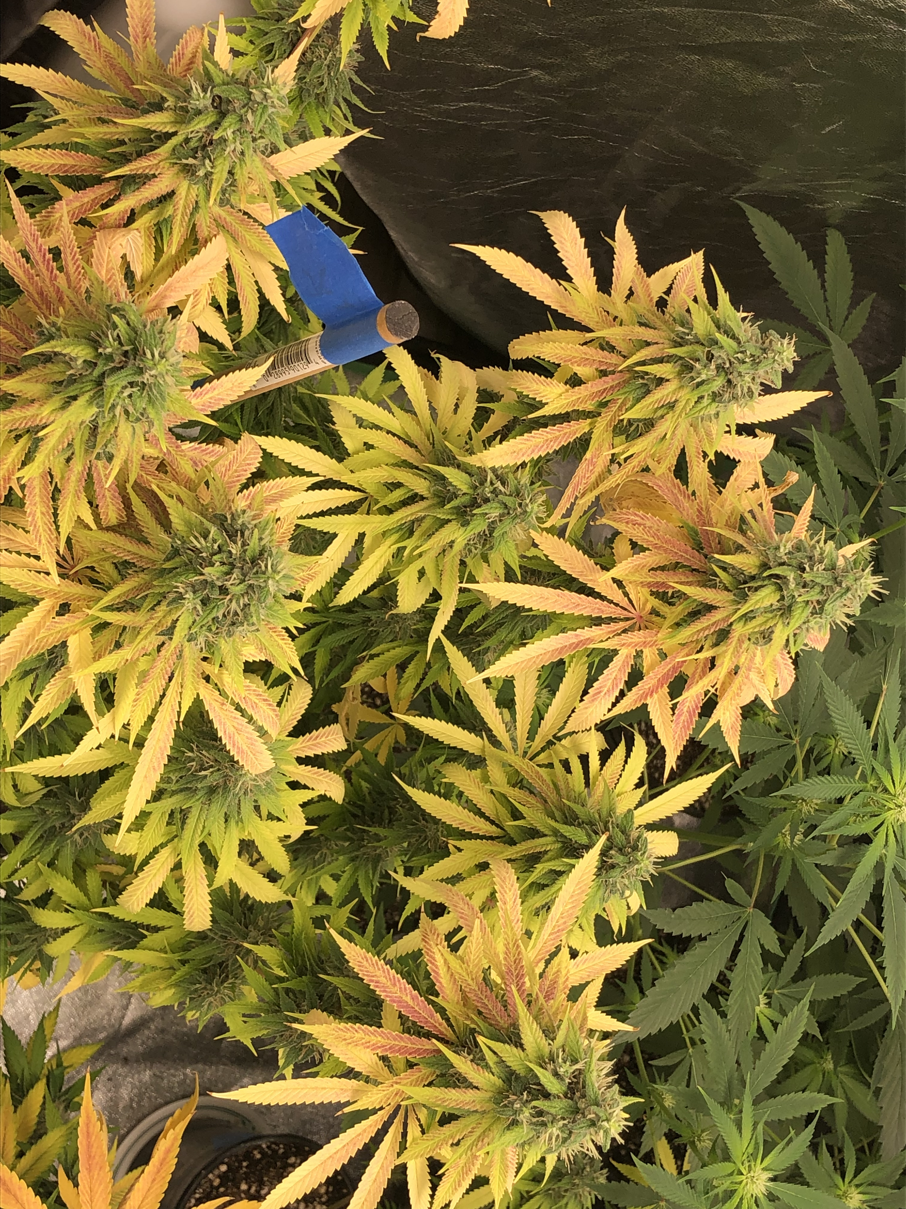 Heys folks so never did get it figured out what was causing yellowing leaves weather it was watering, lighting, too much dehumidifier or what? But, I did discover I had infest of nats and I treated with earths power pesticide. Now only 2-3 weeks until completed 2 month flower stage and pistols just starting to brown & curl. At this point all I can think is to do is pull lights further away, tone them down a bit and just flush them till harvest. Mostly all yellow with top sugar leaves turning a reddish color and I just pray the 5 plants will still be good?