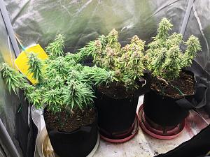 Well...I’ll admit it, I fu____ mbled. In Super Soil, fab pots, Growing 3; CBD C+C, Seedsman lemon auto, and Seedsman Black Sugar. @4+weeks into 12/12, all flowering looking healthy, pruning judiciously, I stupidly, left the 20”x36” tent open (with 2 100w quantum panels),and with all the (many) other lights in that area on high all night and forgot to water! Next day it was 90F in the tent and they looked bad (dry and starting to yellow). The lemon auto took it in stride I guess, but it took over a week to get them all back on track. They were dry and under watered. Now they are finally pruned and doing much better, with the lemon auto showing a few amber trichomes. The 2 photo plants seem to have 2-3+weeks to go. No signs of nanners or herms. It seems like my yield will suffer, particularly on the Black Sugar. Anyone have an idea about this. I did have the thought that perhaps the shock might increase resin production? Probably wishful thinking. I’ll get out there later today for some pictures to post.