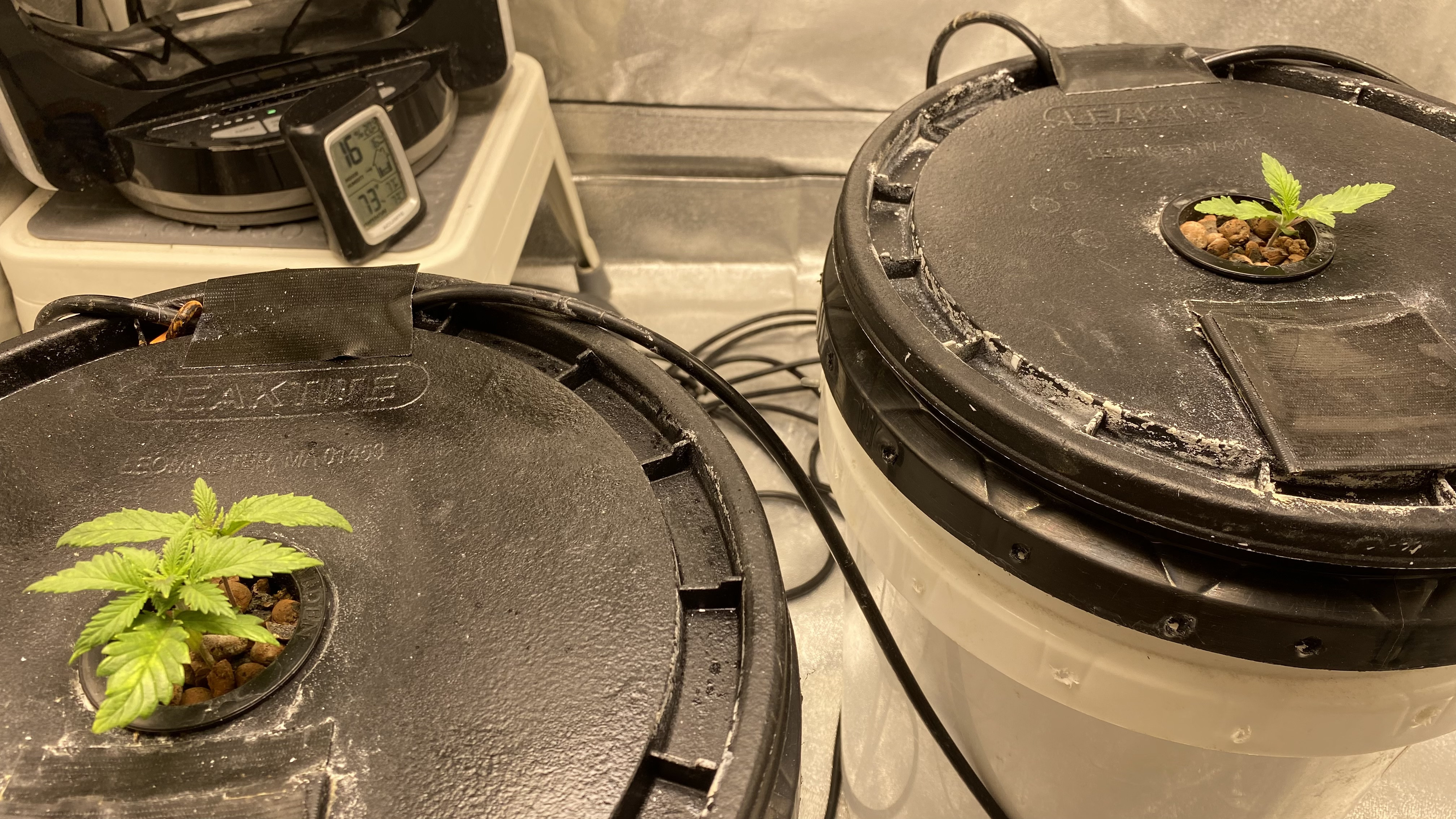 My girls are short. Suzie 1 and Hazel are running neck and neck at maybe 3cm (1.2”) above the hydroton. Both tubs are running right at 21c (70f) and water level are at 8.9cm (3.6”) below the bottom of the net pot - just about where they should be. Ambient air temp average is 22.8c (73f) with 16% RH. It will be topping time next time I blink twice; it’s getting pretty close for Suzie 1.