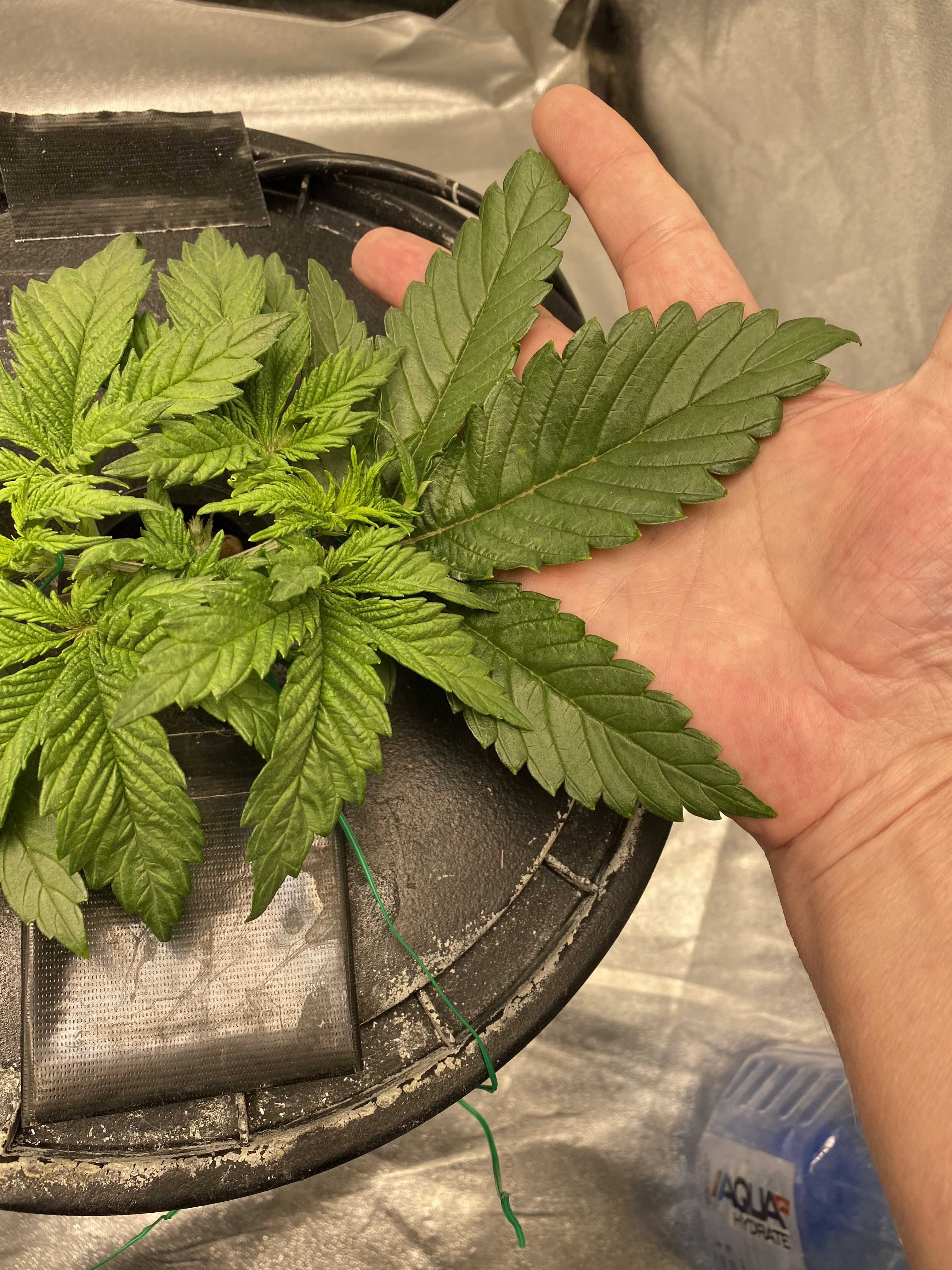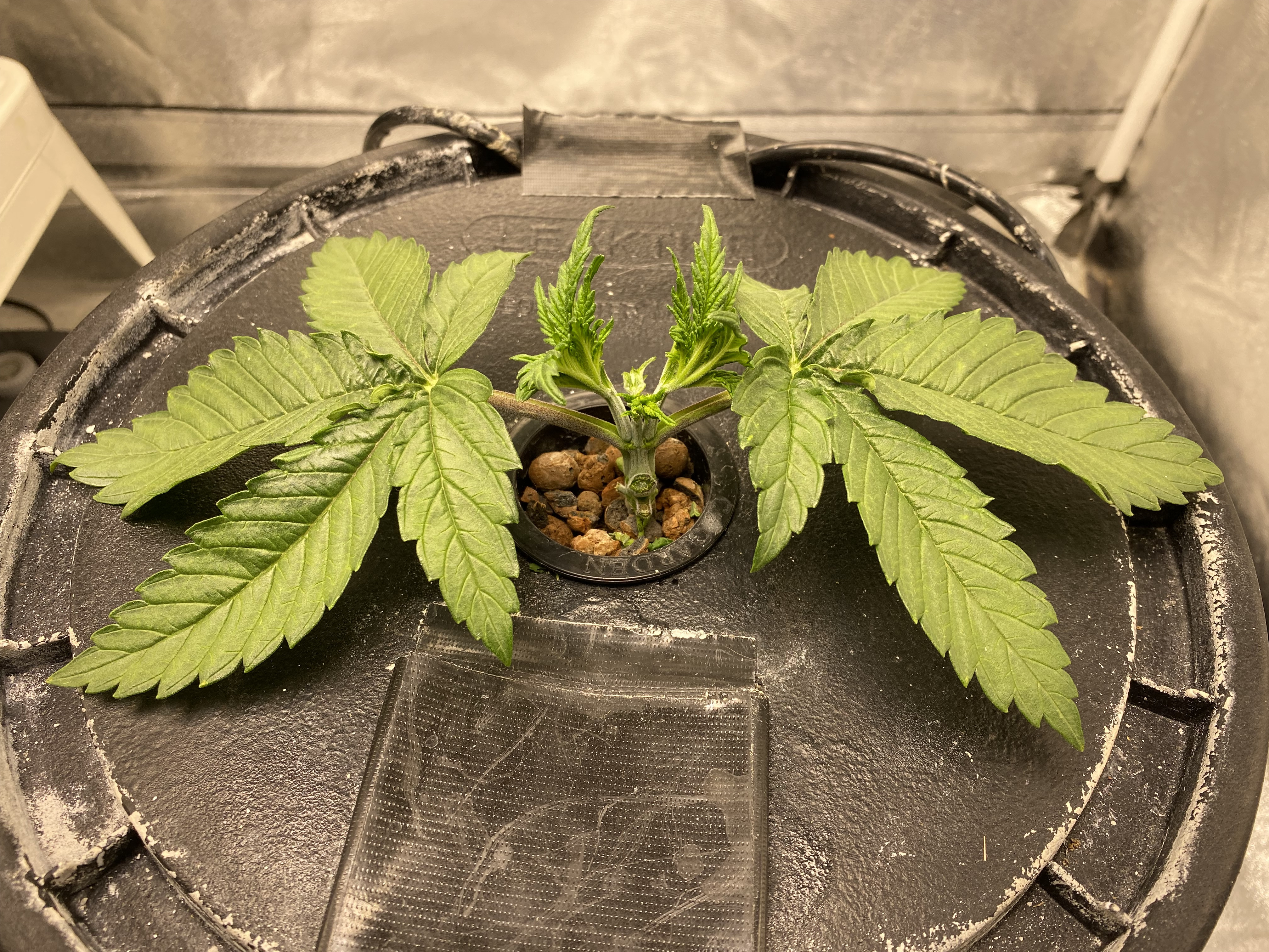 Final sprout tally was 1 Purple Bubba and 4 Critical Mass. When they got sick I gave 1 CM to BU2B for his neighbor to grow out if it recovered. They washed the roots and put into DWC and it has recovered and growing. Then I had another one wilt away and die leaving 3 for my 3 pots. I pulled it to examine and found the roots look healthy but small for almost 3 weeks. I still don't know why they acted root bound. They're coming around now with plenty of room to spread their legs.