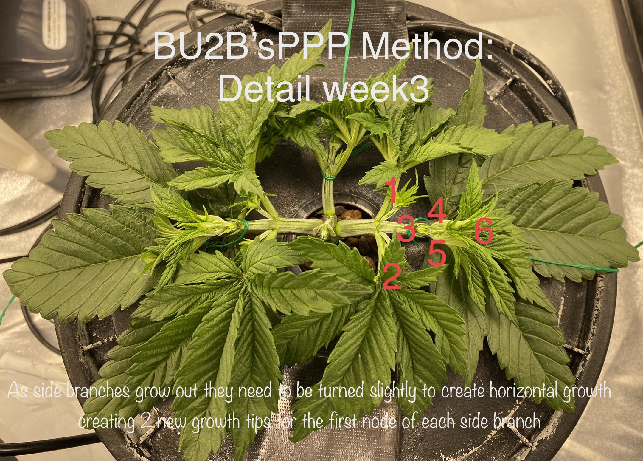 Hazel continues her training (30 flowering growth tips so far)
