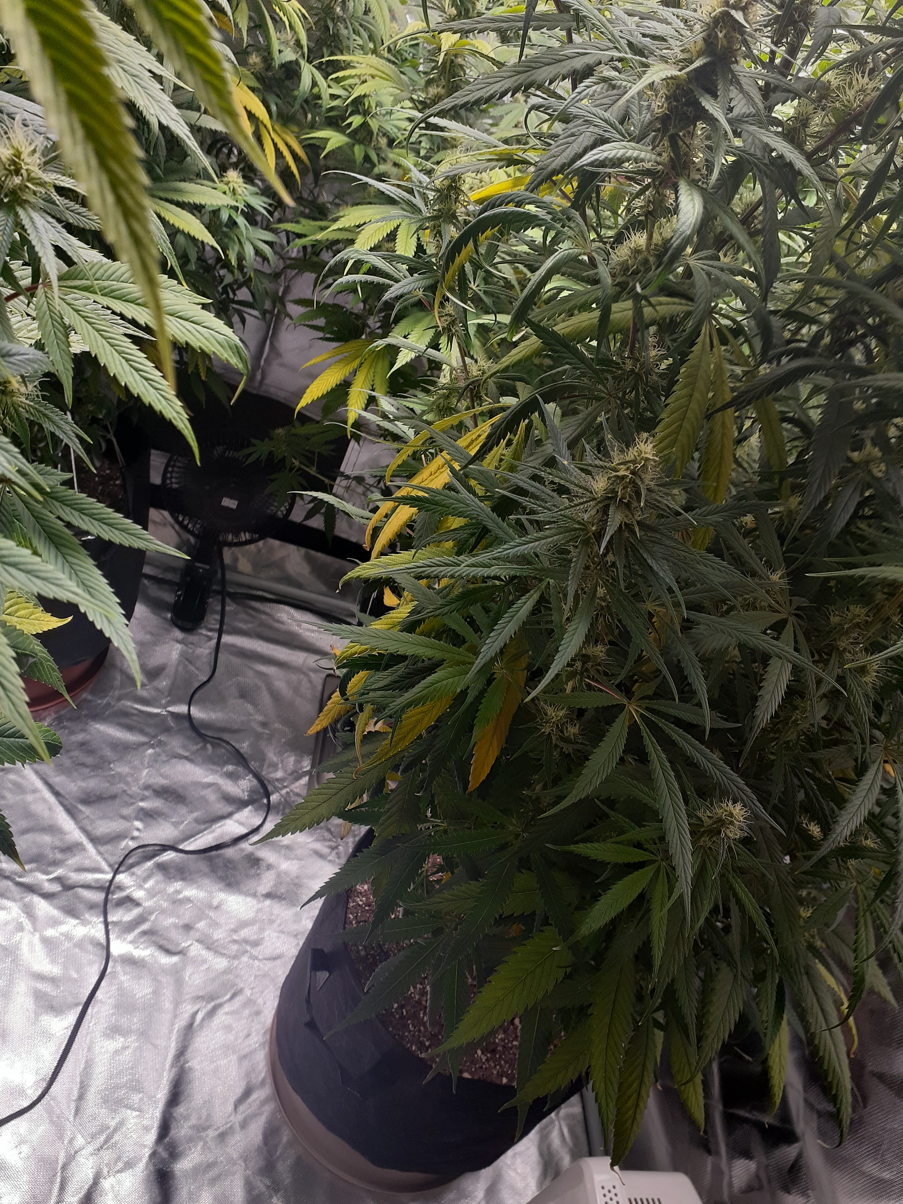 So I've been giving it heavier more frequent waterings, but I think I'm running into a deficiency. I maintain about a 6.2-6.4 ph level and I'm growing in soil. Using a aosbeic 4000w led in a 4x4x6 tent. Maintaining a 45% or lower relative humidity. And I'm maybe 4 or 5 weeks tops into flower, I just think they are showing a little too much yellowing of their leaves. I'm leaning towards a nitrogen deficiency, should i treat it or should i just let them do their thing, it's maybe halfway through flower. I have not yet figured out the intense curling or clawing of my leaves and I can't imagine it's nitrogen toxic because of the deficiencies it's showing.... help me out some??? Lol