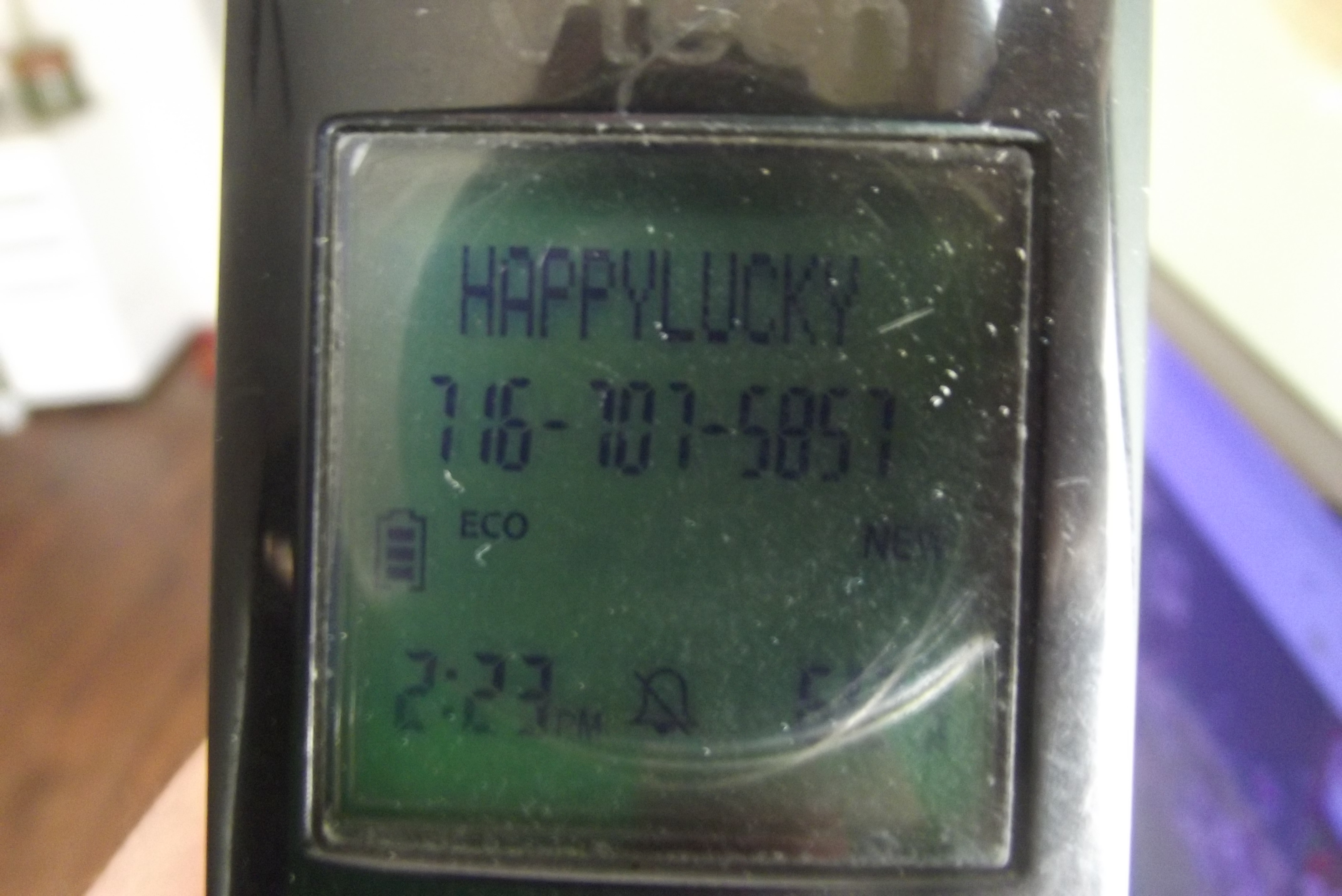 Just after the 'super happy fun time' bit, this came up when I checked my caller ID. My ringer is off since that 4am robo call. Seriously. Someone is listening to me. No. I'm not calling them back. This one seems creepy. I am much more likely to call back Death or Squid Face or something cool. This is like getting a call from a clown.