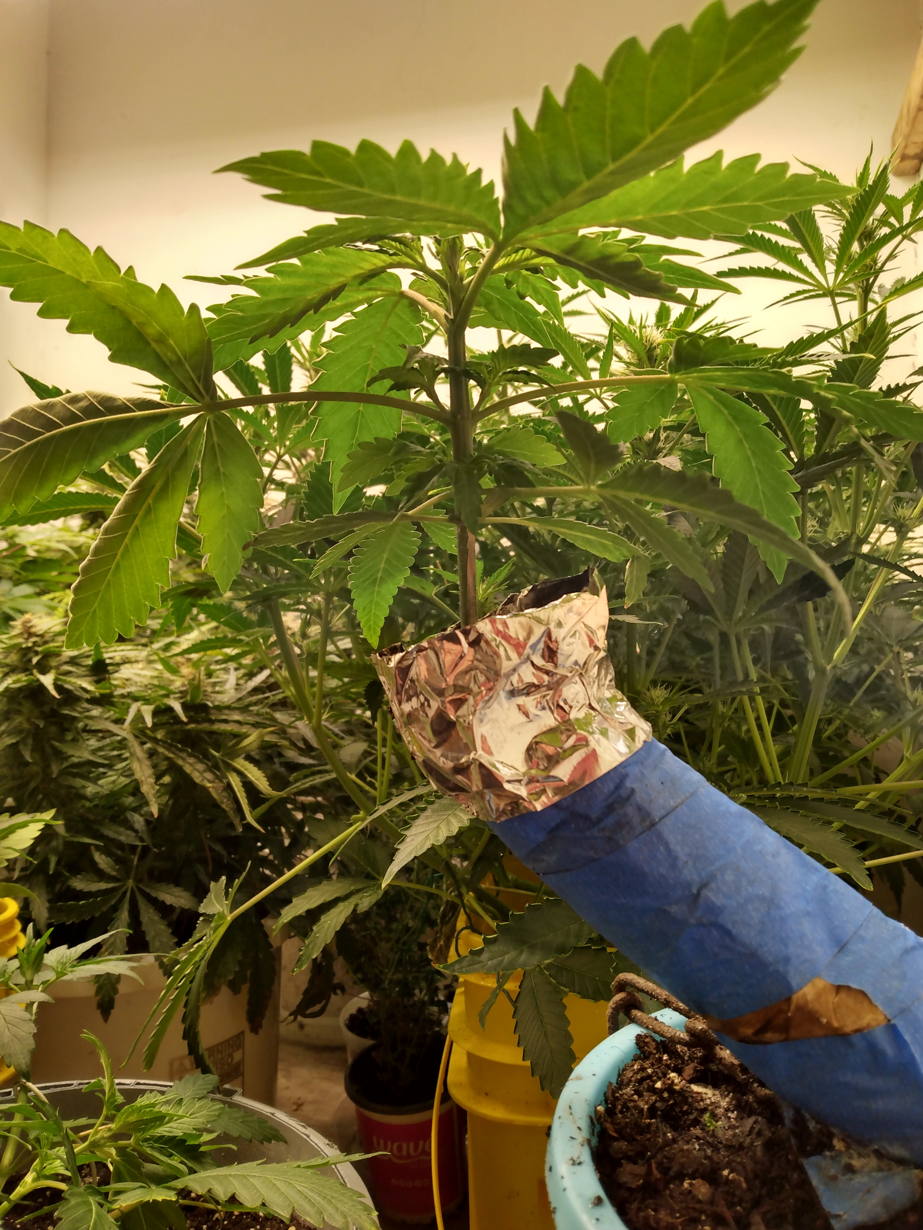Being a clumsy fuck. Knocked braapzia 2.0 over while lifting planters to see who was thirsty. She's kinda a fish outa water amongst her big sisters. Gonna give her a day or two to recover before I take her top off. Click image for larger version