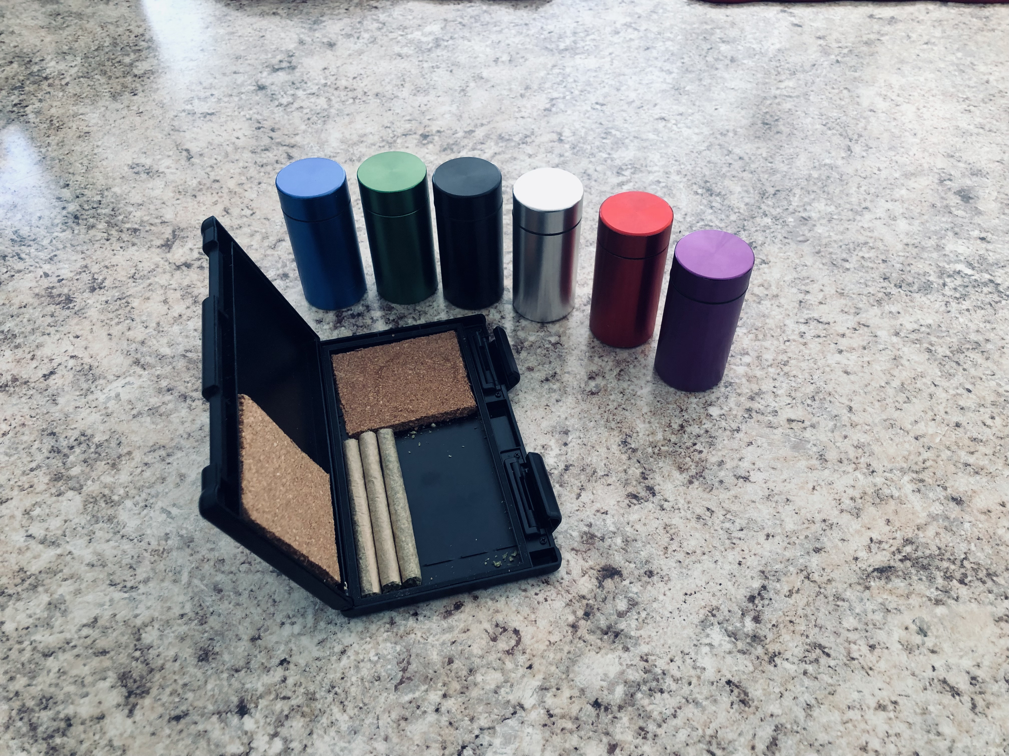I glued the cork in there so I can put 7 joints on one end, 7 on the other and they don’t get smashed. I only roll fatties, cigarette sized joints at least lol